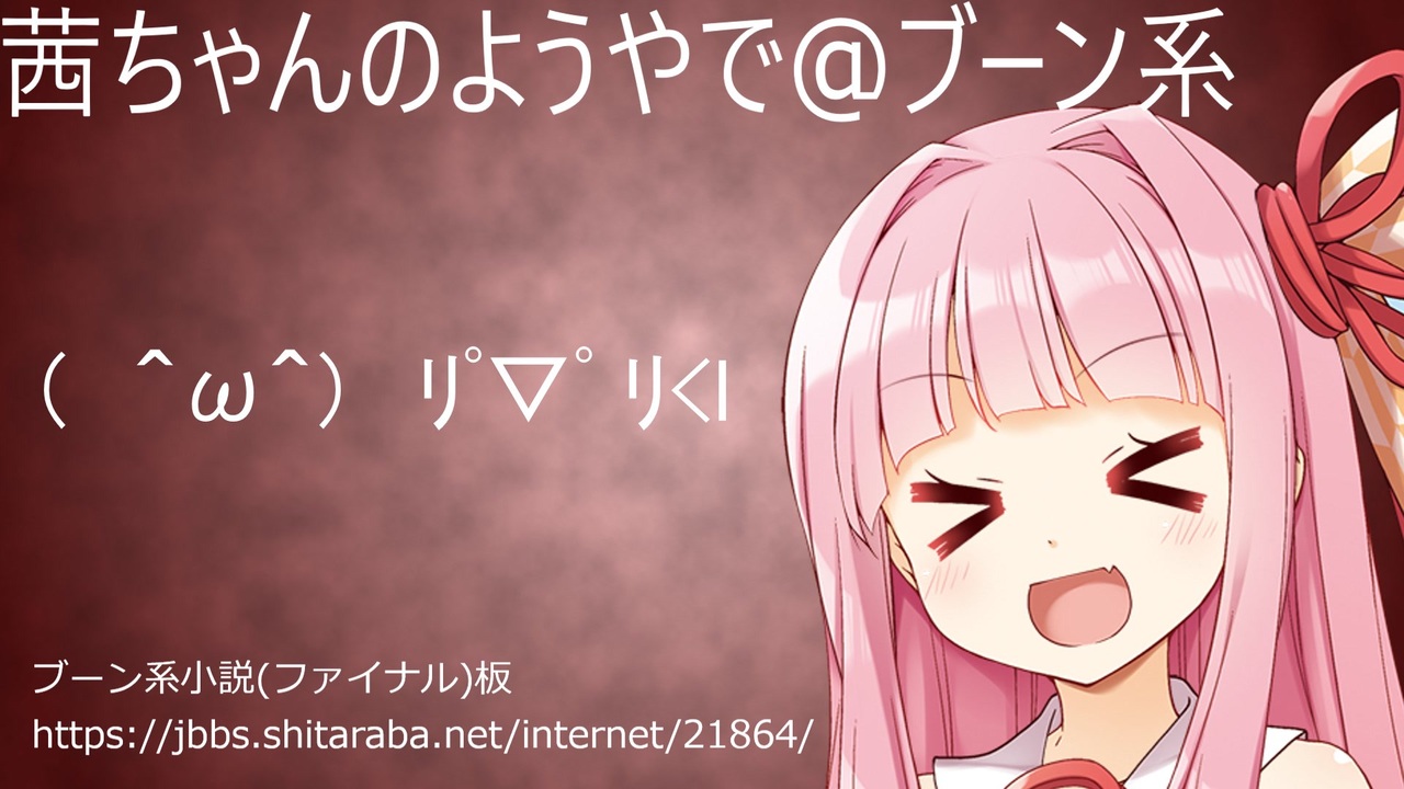 リ゚▽゚リ<l「残暑が厳しいざんしょ」<br><br>ブーン系小説とは:<br> ( ^ω^)フリモメンがブーン系小説を紹介するようです(<a href="https://www.nicovideo.jp/watch/sm41764250" class="watch">sm41764250</a>)<br><br>ブーン系民の巣:<br> ブーン系小説創作板(ファイナル)<br><a href="https://jbbs.shitaraba.net/bbs/read.cgi/internet/21864/1643894805/" target="_blank" rel="noopener nofollow">https://jbbs.shitaraba.net/bbs/read.cgi/internet/21864/1643894805/</a><br><br>投稿フォーム:<br> ( ^ω^)現行作品感想/紹介<br><a href="https://docs.google.com/forms/d/e/1FAIpQLSdhX925B8ktZAvIwLVwW4L5aMyKDPRY-2cfPsHNjnK0XJzKmg/viewform" target="_blank" rel="noopener nofollow">https://docs.google.com/forms/d/e/1FAIpQLSdhX925B8ktZAvIwLVwW4L5aMyKDPRY-2cfPsHNjnK0XJzKmg/viewform</a><br><br> ( ^ω^)ファイナル板現行一覧(2021~)<br><a href="https://docs.google.com/spreadsheets/d/1jIxXUCC8OseZjHo4MdP9aVAQ8xfg9Q9QE8wQ2HOE1eM/edit#gid=0" target="_blank" rel="noopener nofollow">https://docs.google.com/spreadsheets/d/1jIxXUCC8OseZjHo4MdP9aVAQ8xfg9Q9QE8wQ2HOE1eM/edit#gid=0</a><br><br>主スレ:<br> リ゚▽゚ リ<l茜ちゃんのようやで@ボイロ実況<br><a href="https://jbbs.shitaraba.net/bbs/read.cgi/internet/21864/1643894805/" target="_blank" rel="noopener nofollow">https://jbbs.shitaraba.net/bbs/read.cgi/internet/21864/1643894805/</a><br><br>背景素材:<br> みんちりえ(<a href="https://min-chi.material.jp/)" target="_blank" rel="noopener nofollow">https://min-chi.material.jp/)</a><br><br>立ち絵/イラスト:<br> ユメノオワリ(<a href="https://yumeowa.fanbox.cc/posts/1985303)" target="_blank" rel="noopener nofollow">https://yumeowa.fanbox.cc/posts/1985303)</a><br> いらすとや(<a href="https://www.irasutoya.com/)" target="_blank" rel="noopener nofollow">https://www.irasutoya.com/)</a><br><br>効果音:<br> 効果音ラボ(<a href="https://soundeffect-lab.info/)" target="_blank" rel="noopener nofollow">https://soundeffect-lab.info/)</a><br><br>BGM、動画編集:<br> 時報(<a href="https://www.nicovideo.jp/mylist/31065904" target="_blank" rel="noopener">mylist/31065904</a>)<br><br>テーマソング:<br> FinalHorizon/結月ゆかり 作詞作曲:時報(<a href="https://www.nicovideo.jp/mylist/31065904" target="_blank" rel="noopener">mylist/31065904</a>)<br><a href="https://piapro.jp/t/FzQk" target="_blank" rel="noopener nofollow">https://piapro.jp/t/FzQk</a>