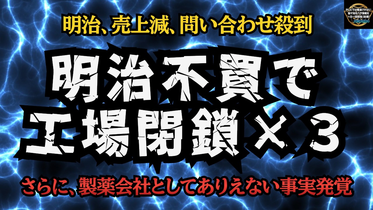 明治ホールディングスが<br><br>国内3工場閉鎖へ(共同通信) - <br><br>①<a href="https://x.com/PH0917/status/1832031224552202445?t=xE60wZq5HwmhOpDMr6_gFA&s=19" target="_blank" rel="noopener nofollow">https://x.com/PH0917/status/1832031224552202445?t=xE60wZq5HwmhOpDMr6_gFA&s=19</a><br><br>②<a href="https://nordot.app/1204724368357982820?c=899922300288598016" target="_blank" rel="noopener nofollow">https://nordot.app/1204724368357982820?c=899922300288598016</a><br><br><br>2024.9.7東京理科大 村上康文教授<br>9月2日明治製菓の上層部と直接話をしてきた。真面目に対応していただいた。<br><br>明治製菓の不買運動が起きてるので動揺していた。<br>mRNAワクチンを販売するかどうかは、実は未定である(9月2日時点で)<br>個体から個体へ伝播するというリスクを知らなかった。 <a href="https://t.co/6yZmSIIlLN" target="_blank" rel="noopener nofollow">https://t.co/6yZmSIIlLN</a><br><br><br>悲報<br>明治製菓ファルマ、レプリコンのこと本当にわかってなかった<br>個体間伝播をどうやって調べたらいいか教えてほしい <br>と村上先生にすがるようでは…<br>こんなにレプリコン「ド素人」なのにMRに全国行脚させ医者にプッシュとか、さすがにまずいでしょ<br><br><a href="https://x.com/corowaku_memo/status/1832588091493847487?t=0mPmxUvE5prCRz-l3aB-mQ&s=19" target="_blank" rel="noopener nofollow">https://x.com/corowaku_memo/status/1832588091493847487?t=0mPmxUvE5prCRz-l3aB-mQ&s=19</a><br><br><br>レプリコンワクチン コスタイベ筋注用 明治のコロナワクチン ワクチン 新型コロナウイルス<br> 不買運動 <br><br>エクソソームを知らなかった 自己増殖型ワクチン <br>ワクチン被害 工場閉鎖<br><br><br><br>明治製菓 工場閉鎖 村上康文教授 エクソソーム mRNAワクチン 不買運動 医薬情報担当者 (MR) <br>リスク検証 明治不買運動<br>レプリコンワクチン 製薬会社の責任<br><br />著作権、肖像権に配慮して作成しております。<br><br>◆気になったニュースの台本!?<br>メモ代わりに作った台本をそのままあげてます<br><a href="https://keiichiro8140.hatenablog.com/." target="_blank" rel="noopener nofollow">https://keiichiro8140.hatenablog.com/.</a><br><br><br>ここからはシリーズ紹介<br><br><br>◆ ワクチン解毒・デトックス<br><a href="https://x.gd/fZweg" target="_blank" rel="noopener nofollow">https://x.gd/fZweg</a><br><br>◆ウイリアム・マキス博士のがん治療(イベルメクチン・フェンベンダゾール等)<br><a href="https://x.gd/AtFYS" target="_blank" rel="noopener nofollow">https://x.gd/AtFYS</a><br><br>◆予防接種健康被害救済制度<br><a href="https://x.gd/0xK9x" target="_blank" rel="noopener nofollow">https://x.gd/0xK9x</a><br><br>◆気になったニュース #1501~<br><br>◆ 【ショートver】気になったニュース<br><a href="https://x.gd/7MxXC" target="_blank" rel="noopener nofollow">https://x.gd/7MxXC</a><br><br>◆ 気になったニュース #1001~<br><a href="https://x.gd/Lp8gv" target="_blank" rel="noopener nofollow">https://x.gd/Lp8gv</a><br><br>◆ 気になったニュース #501~<br><a href="https://x.gd/EmbS4" target="_blank" rel="noopener nofollow">https://x.gd/EmbS4</a><br><br>◆ 気になったニュース #1~#500<br><a href="https://x.gd/uPhNb" target="_blank" rel="noopener nofollow">https://x.gd/uPhNb</a><br><br>◆ X(旧Twitter)・テレグラムで気になった情報<br><a href="https://x.gd/YG6FT" target="_blank" rel="noopener nofollow">https://x.gd/YG6FT</a><br><br>◆ 日比谷5万人パレードデ⚪生放送アーカイブ動画<br><a href="https://x.gd/3CHJv" target="_blank" rel="noopener nofollow">https://x.gd/3CHJv</a><br><br>◆日比谷5万人パレード⚪モのマイリスト作ってみました<br><a href="https://nico.ms/mylist/76828848?ref=sp_other" target="_blank" rel="noopener nofollow">https://nico.ms/mylist/76828848?ref=sp_other</a><br><br>◆3.30 令和の百姓⚪⚪<br><a href="https://www.nicovideo.jp/series/511791?ref=garage_share_other" target="_blank" rel="noopener nofollow">https://www.nicovideo.jp/series/511791?ref=garage_share_other</a><br><br>◆ 及川幸久さんの【XNEWS】シリーズ<br><a href="https://x.gd/3k78K" target="_blank" rel="noopener nofollow">https://x.gd/3k78K</a><br><br>◆これまでの動画<a href="https://x.gd/sPXoJ" target="_blank" rel="noopener nofollow">https://x.gd/sPXoJ</a><br><br>◆もしも(BAN)の時のためのマイリンク集<a href="https://lit.link/K-16_News44" target="_blank" rel="noopener nofollow">https://lit.link/K-16_News44</a><br><br>