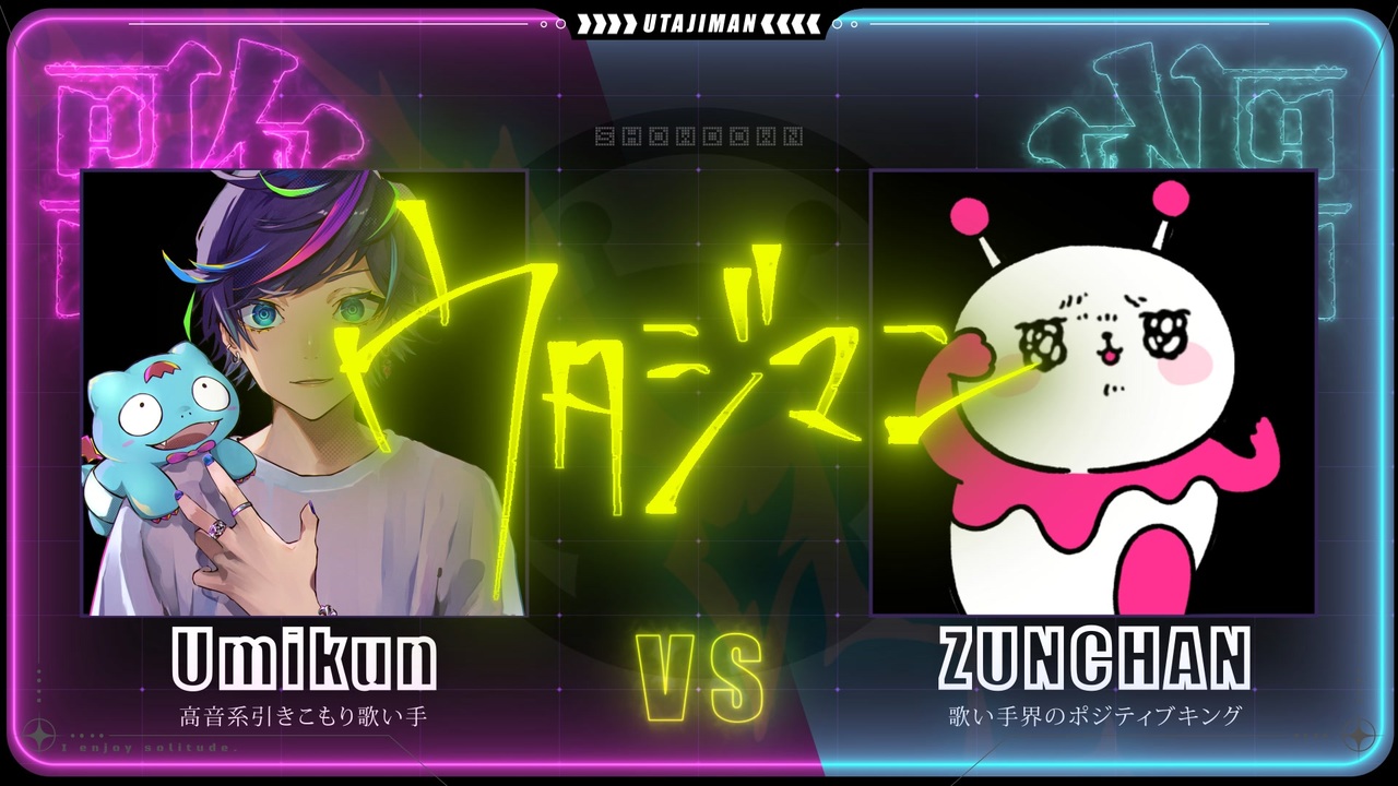 突如現れた激ウマ歌唱力を持つ謎の生物「ずんちゃん」。<br>歌い手の存亡をかけた人類とずんちゃんの歌唱バトルが幕を開ける!<br><br>【対戦後インタビュー】<br>今回は「歌こそ人生」と思っている人が歌いたくなるような曲をつくろうという想いでこの楽曲を制作しました。自分は本当に凡才で特別裕福でもない一般家庭に生まれました。その中で音楽でなんとか生きていくために人生のキラキラしたものを全て犠牲にしてきたつもりです(大袈裟ですね汗)。でもそれで良かったといつだって思えるのは「自分が好きな事」にいつだって本気でぶつかってきたからだと思います。だからこそこの楽曲を通じてだれかの「本気」と繋がれたならば、引きこもりで友達が少ない僕も報われます。ずんちゃんが歌うますぎて、レコーディング中に正直心が折れそうになった僕はまだまだ「歌こそ人生」と胸を張って言えないなぁと身が引き締まりました。さぁ、明日からもボイトレ頑張ります□ By Umikun<br><br>Character:ずんちゃん<br><a href="https://www.youtube.com/@zunchan_music" target="_blank" rel="noopener nofollow">https://www.youtube.com/@zunchan_music</a><br><a href="https://x.com/zunchan_music" target="_blank" rel="noopener nofollow">https://x.com/zunchan_music</a><br><br>「歌ってみた」素材はこちら!ぜひあなたもウタジマンに参戦してね!<br><a href="https://drive.google.com/drive/u/0/folders/1olshyURlMw2l0IDYUdP7Vun5sdABHdQC?ths=true" target="_blank" rel="noopener nofollow">https://drive.google.com/drive/u/0/folders/1olshyURlMw2l0IDYUdP7Vun5sdABHdQC?ths=true</a><br><br>「ウタジマン」サブスク配信中 → <a href="https://big-up.style/YflYq4xZGA" target="_blank" rel="noopener nofollow">https://big-up.style/YflYq4xZGA</a><br><br>うみくん ( @Umi_babe )