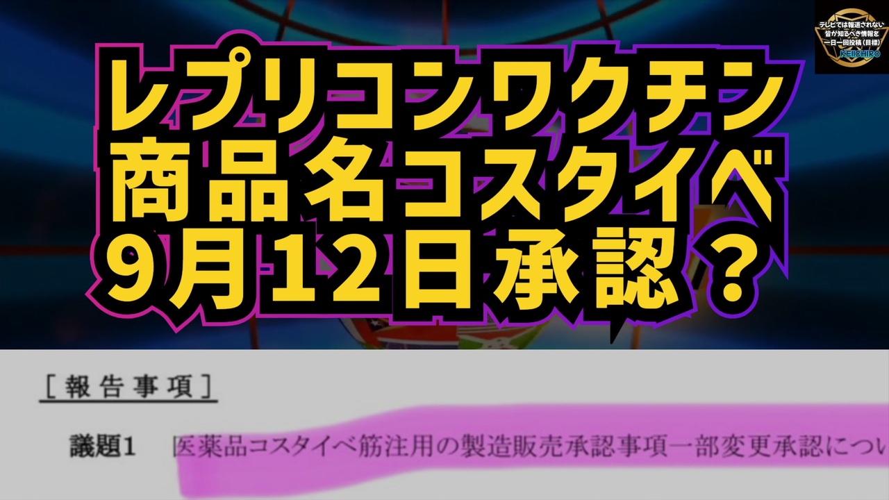 【訃報】声優・篠原恵美さんが病気療養中に死去 61歳 『セーラームーン』ジュピター役など<br><br>また偉大な声優さんがこの世を去られました。声優さんの訃報が続いて辛い。<br><br>セーラームーン/木野まこと<br>カードキャプターさくら/観月歌帆<br>NARUTOナルト疾風伝/うずまきクシナ<br><br>心よりご冥福をお祈りします。<br><a href="https://x.com/amse070707/status/1833425115075531086?t=Zn_BzseBuNPtu6GFNx8rMg&s=19" target="_blank" rel="noopener nofollow">https://x.com/amse070707/status/1833425115075531086?t=Zn_BzseBuNPtu6GFNx8rMg&s=19</a><br><br><br>【虎ハンター・小林邦昭氏死去 68歳】<br><a href="https://x.com/YahooNewsTopics/status/1833318478243369094?t=LwiUfPQ9YjWUVjMeMjxRgw&s=19" target="_blank" rel="noopener nofollow">https://x.com/YahooNewsTopics/status/1833318478243369094?t=LwiUfPQ9YjWUVjMeMjxRgw&s=19</a><br><br><br>永田裕志さんのポスト<br>おはようございます。<br><br>小林邦昭さんの訃報が入ってきました。<br><br>ここしばらく道場でお会いすることが出来なかったので、もしや体調を崩されたのかと心配してましたが、まさかお亡くなりになられたとは…<br><br>小林邦昭さん、今まで本当にありがとうございました。<br><br>合掌<br><a href="https://x.com/nagata769/status/1833325812151685560?t=F9YQwNPFU4gJMWVx53VfPw&s=19" target="_blank" rel="noopener nofollow">https://x.com/nagata769/status/1833325812151685560?t=F9YQwNPFU4gJMWVx53VfPw&s=19</a><br><br><br>レプリコンは9月12日ついに承認?<br><br>明治製菓ファルマのコスタイベの一変承認について、9月12日の薬事審議会で報告されるよ<br>①<a href="https://x.gd/leHBs" target="_blank" rel="noopener nofollow">https://x.gd/leHBs</a><br>②<a href="https://nk.jiho.jp/article/192759?amp" target="_blank" rel="noopener nofollow">https://nk.jiho.jp/article/192759?amp</a><br>③<a href="https://x.gd/bQys8" target="_blank" rel="noopener nofollow">https://x.gd/bQys8</a><br><br><br>サポーター•賛同者緊急招集!<br>【厚労省職員に向けたチラシ配布•街宣】<br>9月12日レプリコン承認会議に向けて緊急アクションを行います!<br>▶︎9月9日(月)午後5時〜7時<br>▶︎9月10日〜12日<br> 午前8時〜9時&午後5時〜7時<br>(池田議員、加藤先生ほかの登壇あり)<br>集合場所: 厚労省東門前<br>有志はどなたでも!<br><a href="https://x.gd/2nOWn" target="_blank" rel="noopener nofollow">https://x.gd/2nOWn</a><br><br><br>レプリコンワクチン<br>レプリコン=コスタイベ<br>明治のコロナワクチン<br>レプリコンワクチン承認?<br>村上康文名誉教授<br>エクソソーム<br><br>個体間電波<br>mRNAワクチン<br>明治製菓ファルマ<br>自己増殖型ワクチン<br>訃報<br><br><br />著作権、肖像権に配慮して作成しております。<br><br>◆気になったニュースの台本!?<br>メモ代わりに作った台本をそのままあげてます<br><a href="https://keiichiro8140.hatenablog.com/." target="_blank" rel="noopener nofollow">https://keiichiro8140.hatenablog.com/.</a><br><br><br>ここからはシリーズ紹介<br><br><br>◆ ワクチン解毒・デトックス<br><a href="https://x.gd/fZweg" target="_blank" rel="noopener nofollow">https://x.gd/fZweg</a><br><br>◆ウイリアム・マキス博士のがん治療(イベルメクチン・フェンベンダゾール等)<br><a href="https://x.gd/AtFYS" target="_blank" rel="noopener nofollow">https://x.gd/AtFYS</a><br><br>◆予防接種健康被害救済制度<br><a href="https://x.gd/0xK9x" target="_blank" rel="noopener nofollow">https://x.gd/0xK9x</a><br><br>◆気になったニュース #1501~<br><br>◆ 【ショートver】気になったニュース<br><a href="https://x.gd/7MxXC" target="_blank" rel="noopener nofollow">https://x.gd/7MxXC</a><br><br>◆ 気になったニュース #1001~<br><a href="https://x.gd/Lp8gv" target="_blank" rel="noopener nofollow">https://x.gd/Lp8gv</a><br><br>◆ 気になったニュース #501~<br><a href="https://x.gd/EmbS4" target="_blank" rel="noopener nofollow">https://x.gd/EmbS4</a><br><br>◆ 気になったニュース #1~#500<br><a href="https://x.gd/uPhNb" target="_blank" rel="noopener nofollow">https://x.gd/uPhNb</a><br><br>◆ X(旧Twitter)・テレグラムで気になった情報<br><a href="https://x.gd/YG6FT" target="_blank" rel="noopener nofollow">https://x.gd/YG6FT</a><br><br>◆ 日比谷5万人パレードデ⚪生放送アーカイブ動画<br><a href="https://x.gd/3CHJv" target="_blank" rel="noopener nofollow">https://x.gd/3CHJv</a><br><br>◆日比谷5万人パレード⚪モのマイリスト作ってみました<br><a href="https://nico.ms/mylist/76828848?ref=sp_other" target="_blank" rel="noopener nofollow">https://nico.ms/mylist/76828848?ref=sp_other</a><br><br>◆3.30 令和の百姓⚪⚪<br><a href="https://www.nicovideo.jp/series/511791?ref=garage_share_other" target="_blank" rel="noopener nofollow">https://www.nicovideo.jp/series/511791?ref=garage_share_other</a><br><br>◆ 及川幸久さんの【XNEWS】シリーズ<br><a href="https://x.gd/3k78K" target="_blank" rel="noopener nofollow">https://x.gd/3k78K</a><br><br>◆これまでの動画<a href="https://x.gd/sPXoJ" target="_blank" rel="noopener nofollow">https://x.gd/sPXoJ</a><br><br>◆もしも(BAN)の時のためのマイリンク集<a href="https://lit.link/K-16_News44" target="_blank" rel="noopener nofollow">https://lit.link/K-16_News44</a><br><br>