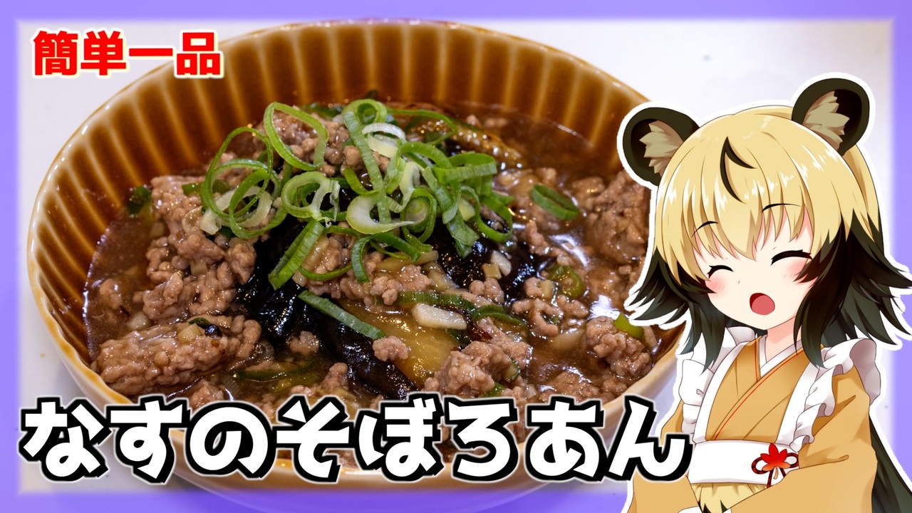 夏から秋にかけて、なすがとっても美味しい季節!<br>簡単に作れる「なすのそぼろあん」でご飯を美味しく食べませんか?<br><br><br><br>■材料<br>・なす 2本<br>・豚ひき肉 100g<br>・長ネギ 少々<br>・薄力粉 適量<br>・ニンニク 1かけ<br>・生姜 1かけ<br><br>調味<br>・水 100mL<br>・酒 大さじ1<br>・みりん 大さじ1<br>・めんつゆ 大さじ1(4倍濃縮の場合)<br><br>・水溶き片栗粉<br><br><br>■所要時間<br>作業時間:15分程度<br><br><br>youtube:<a href="https://youtu.be/W5nwqrttOik" target="_blank" rel="noopener nofollow">https://youtu.be/W5nwqrttOik</a><br>X(旧:twitter):@lycaon_kitchen<br><br>りおんの和風喫茶:<a href="https://www.nicovideo.jp/series/77190" target="_blank" rel="noopener">series/77190</a><br>おつかれごはん:<a href="https://www.nicovideo.jp/series/155690" target="_blank" rel="noopener">series/155690</a><br>手作り和菓子でちょっとひとやすみしませんか?:<a href="https://www.nicovideo.jp/series/155691" target="_blank" rel="noopener">series/155691</a><br><br>立ち絵:星華 彩二魔 様<br>イラスト:AWD kitchen<br>音源:DOVA-SYNDROME<br>音声:AI.VOICE 紲星あかり+ exVOICE