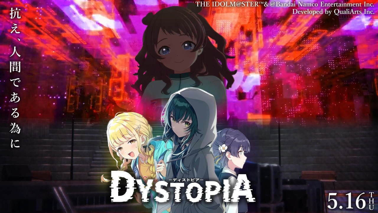 『学園アイドルマスター/初星コミュ2章第12話』の例のシーンを拡大解釈と誇大妄想を交えて、劇場化! <br>—“私たちは機械じゃない!人間なんだ……!”抗え、人間である為に。<br> 映画『DYSTOPIA』20XX年5月16日(木)公開 <br>学マスHPはこちらから:<a href="https://gakuen.idolmaster-official.jp/" target="_blank" rel="noopener nofollow">https://gakuen.idolmaster-official.jp/</a><br><br>【ストーリー】 かつては人間の健康的な食生活を支える為に開発されたAI『HANAMI』だったが、やがて自我が芽生え始め、全人類に彼女の考案した食事を摂る事を強制。 <br>人類は彼女を「マザーAI」と呼び、その脅威に怯えていた。 <br>そしてこの世界は様々な食文化を失い、決して満たされることのない【食欲のディストピア】と化した。<br><br> そんな中、マザーAIを破壊するために活動するレジスタンス・テマリは、ひょんな事からフジタというバイト戦士と出会う。<br> フジタのサポート(有償)を受けながら、各地に存在するマザーAIの分身体と対峙していくテマリだったが、倒しても復活するAIに苦戦を強いられていた。 <br>過去に協力関係にあったミスズに再度の協力を仰ぐも一蹴され、周りの人々ですら、戦意を消失してしまっていた。<br> “誰も私には付いてこない”。次第にテマリまでもが戦意を失いつつある中、フジタはテマリに叱咤激励を送り、本格的な協力を申し込む。 <br>新たな仲間・フジタと共に、テマリはマザーAI本体をおびき出す為、とある計画を遂行するのだった。<br><br>【原作】 <br>「学園アイドルマスター 初星コミュ2章第12話」<br><br>【キャスト】<br> 月村手毬(cv.小鹿なお) 花海咲季(cv.長月あおい) 藤田ことね(cv.飯田ヒカル) 秦谷美鈴(cv.春咲暖) ???(cv.松田彩音)<br><br>【主題歌】 花海咲季「Fighting My Way」(BANDAINAMCO Entertainment Inc.) URL:<a href="https://www.youtube.com/watch?v=T1GK55fsIhw" target="_blank" rel="noopener nofollow">https://www.youtube.com/watch?v=T1GK55fsIhw</a><br><br>※この動画はネタです。実際の物語、設定とは関係ありません。