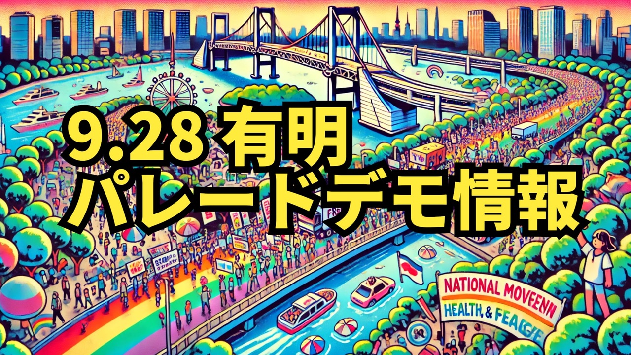 ★プラカードダウンロードページ★<br>anti-who.jp/content.html<br><br><br>開催場所:東京臨海広域防災公園 東京都江東区有明3-8-35最寄駅: ①りんかい線 国際展示場駅 ②ゆりかもめ 有明駅 ※いずれも徒歩1分。<br><br>・雨天決行<br>・芝生の上に直に座るのが気になる方は、小さなビニールシートなどをご持参ください。<br><br>【パレードデモ】<br>デモの時間・ルートが確定しました。詳細は最新のチラシ第二弾裏面にも記載しています。ぜひご確認ください。<br><br>(豊洲・お台場方面2ルート)<br><br>❶8:30〜10:15 お台場ルート(出発口西口付近広場集合)2.1㎞ 賞味35分 <br><br>❷13:00〜16:30 豊洲ルート(出発口東口付近広場集合)2.3㎞ 賞味40分<br><br>❸18:00~19:15 お台場ルート(出発口西口付近広場集合)2.1㎞ 賞味35分<br><br>❶❸お台場ルートに限り+お楽しみコース0.5㎞を延長可能。プロムナード公園を通ってフジテレビ前まで行くコースに参加できます。等身大ガンダムや、レインボーブリッジなどの見どころを観覧できます。<br><br>・お楽しみコースに参加しない場合の復路最寄り駅:りんかい線 東京テレポート駅➝国際展示場(有明)1駅。<br><br>・お楽しみコースに参加者の復路最寄り駅:ゆりかもめ 台場駅➝有明まで5駅。また、夜のお台場お楽しみコースに参加された場合、皆様を映画撮影班が追います。映りたくない方は何らかの対応をお願いいたします。<br><br>・デモコースと出発時間は変更になる場合もあります。 <br><br>・一般のパレードデモ参加者は、申し込みは不要です。チラシ裏面の開催プログラムに記載されたデモ出発時間内に、各出口付近にいるプラカードを持った係員の指示に従い、5列で並んで待機してください。<br><br>・デモに必要なプラカードなど各自ご持参ください。<br><br><a href="https://x.gd/sXnqK" target="_blank" rel="noopener nofollow">https://x.gd/sXnqK</a><br><br><br>レプリコンワクチン<br>ワクチン<br>9.28有明<br>パレードデモ <br>キッチンカー <br>東京臨海広域防災公園 <br><br>お台場ルート <br>豊洲ルート <br>レインボーブリッジ <br>等身大ガンダム <br>フジテレビ前 <br><br>雨天決行<br>集会とデモ <br><br />著作権、肖像権に配慮して作成しております。<br><br>◆気になったニュースの台本!?<br>メモ代わりに作った台本をそのままあげてます<br><a href="https://keiichiro8140.hatenablog.com/." target="_blank" rel="noopener nofollow">https://keiichiro8140.hatenablog.com/.</a><br><br><br>ここからはシリーズ紹介<br><br><br>◆ ワクチン解毒・デトックス<br><a href="https://x.gd/fZweg" target="_blank" rel="noopener nofollow">https://x.gd/fZweg</a><br><br>◆ウイリアム・マキス博士のがん治療(イベルメクチン・フェンベンダゾール等)<br><a href="https://x.gd/AtFYS" target="_blank" rel="noopener nofollow">https://x.gd/AtFYS</a><br><br>◆予防接種健康被害救済制度<br><a href="https://x.gd/0xK9x" target="_blank" rel="noopener nofollow">https://x.gd/0xK9x</a><br><br>◆気になったニュース #1501~<br><br>◆ 【ショートver】気になったニュース<br><a href="https://x.gd/7MxXC" target="_blank" rel="noopener nofollow">https://x.gd/7MxXC</a><br><br>◆ 気になったニュース #1001~<br><a href="https://x.gd/Lp8gv" target="_blank" rel="noopener nofollow">https://x.gd/Lp8gv</a><br><br>◆ 気になったニュース #501~<br><a href="https://x.gd/EmbS4" target="_blank" rel="noopener nofollow">https://x.gd/EmbS4</a><br><br>◆ 気になったニュース #1~#500<br><a href="https://x.gd/uPhNb" target="_blank" rel="noopener nofollow">https://x.gd/uPhNb</a><br><br>◆ X(旧Twitter)・テレグラムで気になった情報<br><a href="https://x.gd/YG6FT" target="_blank" rel="noopener nofollow">https://x.gd/YG6FT</a><br><br>◆ 日比谷5万人パレードデ⚪生放送アーカイブ動画<br><a href="https://x.gd/3CHJv" target="_blank" rel="noopener nofollow">https://x.gd/3CHJv</a><br><br>◆日比谷5万人パレード⚪モのマイリスト作ってみました<br><a href="https://nico.ms/mylist/76828848?ref=sp_other" target="_blank" rel="noopener nofollow">https://nico.ms/mylist/76828848?ref=sp_other</a><br><br>◆3.30 令和の百姓⚪⚪<br><a href="https://www.nicovideo.jp/series/511791?ref=garage_share_other" target="_blank" rel="noopener nofollow">https://www.nicovideo.jp/series/511791?ref=garage_share_other</a><br><br>◆ 及川幸久さんの【XNEWS】シリーズ<br><a href="https://x.gd/3k78K" target="_blank" rel="noopener nofollow">https://x.gd/3k78K</a><br><br>◆これまでの動画<a href="https://x.gd/sPXoJ" target="_blank" rel="noopener nofollow">https://x.gd/sPXoJ</a><br><br>◆もしも(BAN)の時のためのマイリンク集<a href="https://lit.link/K-16_News44" target="_blank" rel="noopener nofollow">https://lit.link/K-16_News44</a><br><br>