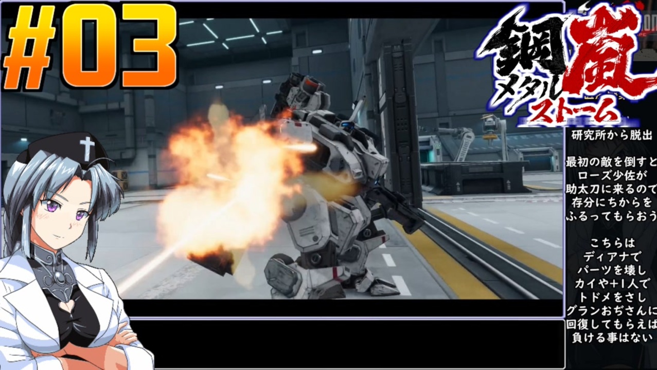 MISSION:1-1/1-3<br>パリス研究所脱出戦/チャンネル切断<br><br>◆鋼嵐メタルストーム(MECHARASHI)◆<br>あらすじ <br>新暦91年、小惑星ミハマが公海に墜落。 新たに生まれた島は「ミハマ島」と名付けられた。<br>調査に訪れた黒曜石コーポレーションが新元素「シエラム元素」を発見。<br>「シエラム合金」が生み出され、これにより工業用機体「ST」が爆発的進化を遂げた。<br>数年後、新元素を狙い大国がミハマ島で衝突。<br>第一次ミハマ紛争勃発。新暦101年、戦争は終結。<br>それから15年後、新暦116年。<br>ノース連合・ステラ同盟の国境争いが激化しつつあった・・・<br>2024年 9月12日クローズドβ開始<br>本動画はメカ・ロボSRPG鋼嵐メタルストームのvoicepeak桜乃そら実況です。<br><br>◆補足◆<br>元々はフロントミッション2089ボーダースケープとして2022年4月にタイトルが発表されたものの、<br>2022年12月にタイトル変更、鋼嵐となりました。<br><br>◆ニコニコクリエイターサポート<br><a href="https://creator-support.nicovideo.jp/registration/1203831" target="_blank" rel="noopener nofollow">https://creator-support.nicovideo.jp/registration/1203831</a><br>動画制作の励みになります<br><br>◆Twitter<br><a href="https://twitter.com/ikamono8bit" target="_blank" rel="noopener nofollow">https://twitter.com/ikamono8bit</a><br>◆youtube<br><a href="http://www.youtube.com/c/IkamonoY" target="_blank" rel="noopener nofollow">http://www.youtube.com/c/IkamonoY</a><br>◆シリーズまとめ<br><a href="https://www.nicovideo.jp/user/1203831/series" target="_blank" rel="noopener nofollow">https://www.nicovideo.jp/user/1203831/series</a>