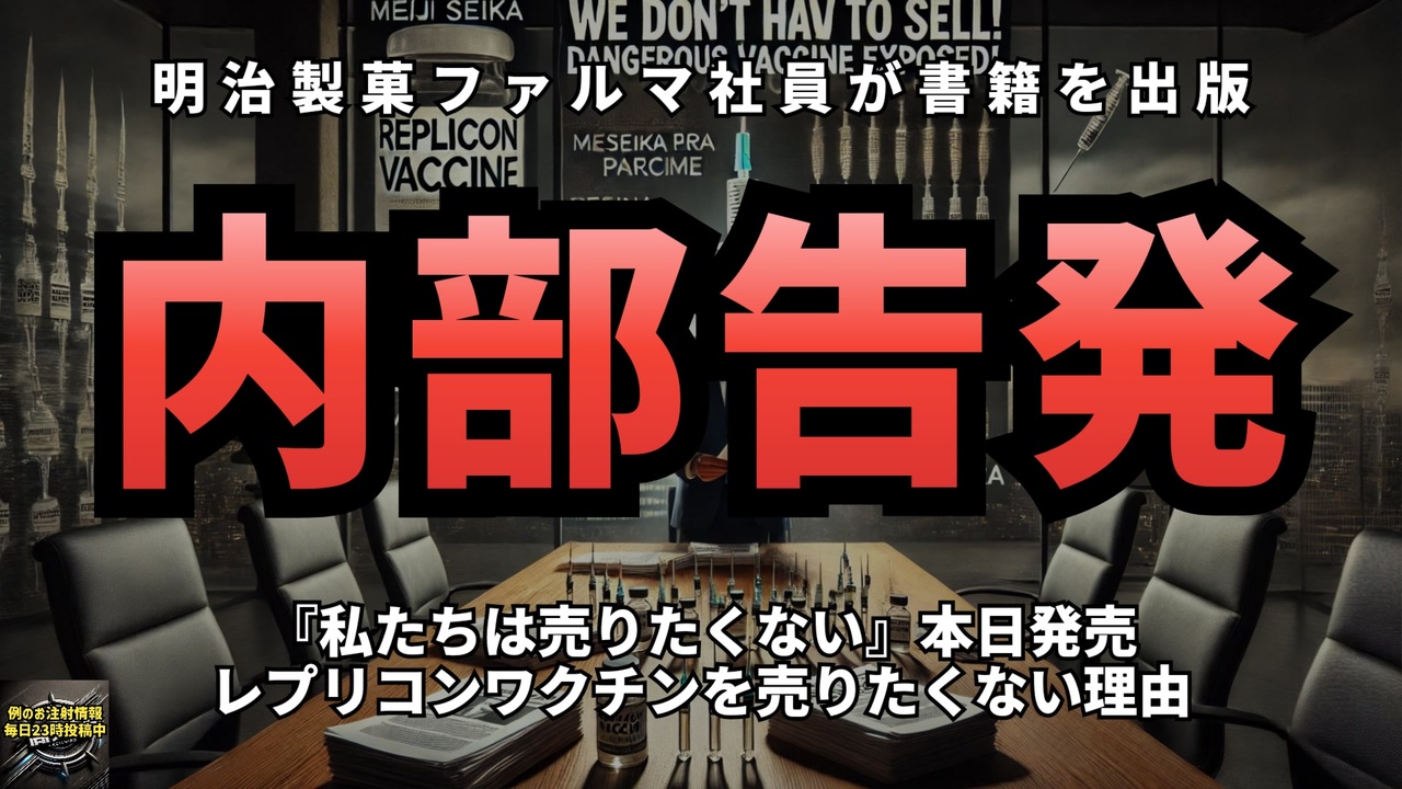 私たちは売りたくない<br>チームK<br><a href="https://x.gd/edmMM" target="_blank" rel="noopener nofollow">https://x.gd/edmMM</a><br><br>「私たちは売りたくない! ”危ないワクチン” 販売を命じられた製薬会社現役社員の慟哭」という書籍は、製薬会社に勤務していた若手社員・影山晃大氏の死をきっかけに、ワクチンの危険性について検証された内容です。<br>影山氏は2回目のコロナワクチン接種後に突然死し、その後、国からもワクチンによる被害者として認定されました。<br><br>この出来事にショックを受けた同僚たちは、コロナワクチンや厚生労働省の施策に対する疑念を抱き、特にレプリコンワクチンの危険性を調査しました。彼らは、公的機関や会社の公開データをもとに検証を進め、厚労省の政策が医療業界の常識を覆すものであることを明らかにしています。<br><br>本書は、影山氏の無念を無駄にしないため、有志の「チームK」が執筆。次に来る危機として、日本で唯一承認された**新型mRNAワクチン「レプリコンワクチン」**のリスクを警告するとともに、今後、インフルエンザワクチンが危険な形に変わる可能性にも触れています。<br><br>製薬会社の内部からは、良心の葛藤が綴られ、社員たちは「このワクチンを売りたくない」「家族や友人にも打たせたくない」という強い思いを抱いています。本書は、日本の狂気的なワクチン政策に対して、国民が正しい情報を得ることで、正しい未来を選んでほしいと訴えています。<br><a href="https://x.gd/kNUeW" target="_blank" rel="noopener nofollow">https://x.gd/kNUeW</a><br><br><br>告発本『私たちは売りたくない』の内容<br><a href="https://x.gd/T0abP" target="_blank" rel="noopener nofollow">https://x.gd/T0abP</a><br><br><br>書籍の構成<br><br>1. ワクチンの未来を信じるな<br><br>2. 製薬会社の社員として忘れてはいけない日<br><br>3. mRNAワクチンは神か悪魔か<br><br>4. 安全なワクチン危険なワクチン<br><br>5. レプリコンワクチンを売りたくない理由<br><br>6. 会社の歴史と誇りを未来に繋げられるのか<br><br>7. なぜ会社はレプリコンを全力推進させるのか<br><br>8. レプリコンは誰も幸福にしない<br><br><br><br>レプリコンワクチン <br>ワクチン<br>ワクチンの危険性 <br>mRNAワクチン <br>コロナワクチン被害 <br>製薬会社の告発 <br><br>ワクチンの副作用 <br>ワクチン倫理問題 <br>厚労省のワクチン政策 <br>影山晃大氏の死 <br>インフルエンザワクチンの危険 <br>公益通報<br><br />著作権、肖像権に配慮して作成しております。<br><br>◆気になったニュースの台本!?<br>メモ代わりに作った台本をそのままあげてます<br><a href="https://keiichiro8140.hatenablog.com/." target="_blank" rel="noopener nofollow">https://keiichiro8140.hatenablog.com/.</a><br><br><br>ここからはシリーズ紹介<br><br><br>◆ ワクチン解毒・デトックス<br><a href="https://x.gd/fZweg" target="_blank" rel="noopener nofollow">https://x.gd/fZweg</a><br><br>◆ウイリアム・マキス博士のがん治療(イベルメクチン・フェンベンダゾール等)<br><a href="https://x.gd/AtFYS" target="_blank" rel="noopener nofollow">https://x.gd/AtFYS</a><br><br>◆予防接種健康被害救済制度<br><a href="https://x.gd/0xK9x" target="_blank" rel="noopener nofollow">https://x.gd/0xK9x</a><br><br>◆気になったニュース #1501~<br><br>◆ 【ショートver】気になったニュース<br><a href="https://x.gd/7MxXC" target="_blank" rel="noopener nofollow">https://x.gd/7MxXC</a><br><br>◆ 気になったニュース #1001~<br><a href="https://x.gd/Lp8gv" target="_blank" rel="noopener nofollow">https://x.gd/Lp8gv</a><br><br>◆ 気になったニュース #501~<br><a href="https://x.gd/EmbS4" target="_blank" rel="noopener nofollow">https://x.gd/EmbS4</a><br><br>◆ 気になったニュース #1~#500<br><a href="https://x.gd/uPhNb" target="_blank" rel="noopener nofollow">https://x.gd/uPhNb</a><br><br>◆ X(旧Twitter)・テレグラムで気になった情報<br><a href="https://x.gd/YG6FT" target="_blank" rel="noopener nofollow">https://x.gd/YG6FT</a><br><br>◆ 日比谷5万人パレードデ⚪生放送アーカイブ動画<br><a href="https://x.gd/3CHJv" target="_blank" rel="noopener nofollow">https://x.gd/3CHJv</a><br><br>◆日比谷5万人パレード⚪モのマイリスト作ってみました<br><a href="https://nico.ms/mylist/76828848?ref=sp_other" target="_blank" rel="noopener nofollow">https://nico.ms/mylist/76828848?ref=sp_other</a><br><br>◆3.30 令和の百姓⚪⚪<br><a href="https://www.nicovideo.jp/series/511791?ref=garage_share_other" target="_blank" rel="noopener nofollow">https://www.nicovideo.jp/series/511791?ref=garage_share_other</a><br><br>◆ 及川幸久さんの【XNEWS】シリーズ<br><a href="https://x.gd/3k78K" target="_blank" rel="noopener nofollow">https://x.gd/3k78K</a><br><br>◆これまでの動画<a href="https://x.gd/sPXoJ" target="_blank" rel="noopener nofollow">https://x.gd/sPXoJ</a><br><br>◆もしも(BAN)の時のためのマイリンク集<a href="https://lit.link/K-16_News44" target="_blank" rel="noopener nofollow">https://lit.link/K-16_News44</a><br><br>