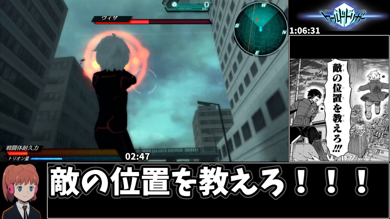 ぼくはぼくのRTAをやる…<br>反省は全部終わってからだ!<br><br>追記:×一時間弱→〇一時間ちょいですね…太刀川さん並みの知力で申し訳ない<br><br>プレイ環境:PSVita<br>計測開始:新しく始めるを押してから<br>計測終了:遊真編ラスボスのヴィザ翁のHPを0にした瞬間<br><br>遠峰ゆう兄貴、 レゾン兄貴、<br>ノーチラス兄貴、けんけん。兄貴、 23763兄貴、<br>ハチェット兄貴、 モキア兄貴、<br>ワンツー兄貴、 RDX兄貴、もんちる兄貴、<br>ウルカナス兄貴、 いぬ兄貴、<br>くろろぷ兄貴、 夢見兎兄貴、<br>shiita兄貴、 koban兄貴、<br>はんてん兄貴、 foobar兄貴、<br>出落ち二等兵兄貴、ゲス卜兄貴、 Sen兄貴、<br>えふぉ助兄貴、 ( ゚ω゚ )兄貴、<br>たしかなまんぞく兄貴、<br>まっちょ兄貴、 ワ民兄貴、<br>163兄貴、 銀狼兄貴、<br>四戸兄貴、ウィンスレット兄貴、<br>天丼500円兄貴、<br>gamehand兄貴、 紺.兄貴、<br>maria_system兄貴、<br>ノワール兄貴、 ミキ兄貴、<br>マダオ兄貴、 午後3兄貴、<br>umizuki兄貴、 GUS兄貴、<br>トモヤ兄貴、なべやきうどん兄貴、<br>戌走イスミ兄貴、 andam兄貴、<br>でんぼ2号兄貴、 にやとー兄貴、<br>キキ兄貴、 戦いは数だよ兄貴、<br>GNZ兄貴、 ディアベル兄貴、<br>ぷらくてぃす兄貴、<br><br>貴重な宣伝、感謝する(カナダ人並感)<br><br><br><br><a href="https://www.nicovideo.jp/watch/sm44016309" class="watch">sm44016309</a><br>↑前 <br><br>X(Twitter)→ <a href="https://twitter.com/gunokiwami3" target="_blank" rel="noopener nofollow">https://twitter.com/gunokiwami3</a><br><br><a target="_blank" href="https://qa.nicovideo.jp/faq/show/19424?site_domain=default" style="font-size: 13px;color: #657586; text-decoration: underline; line-height: 1.4">この動画は投稿者によって修正されました</a>
