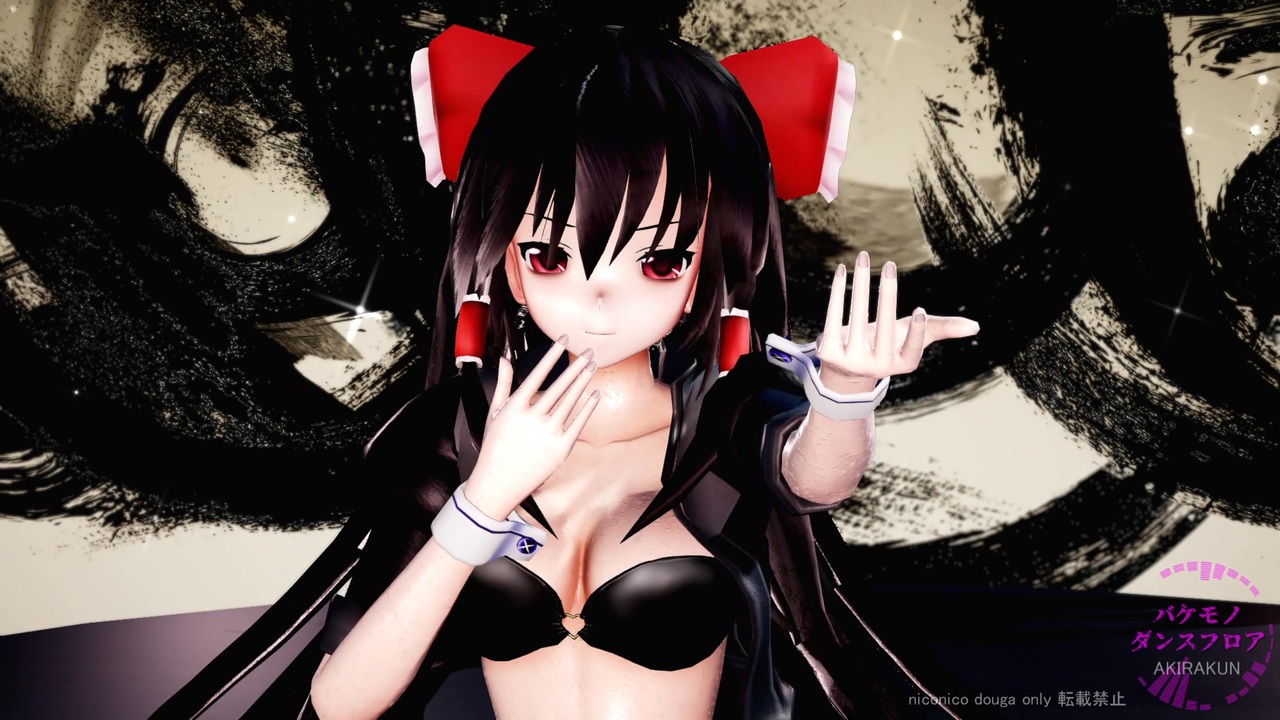 霊夢・魔理沙・アリス・鈴仙・妖夢の5人に踊ってもらいました。この作品は「東方project」の2次創作です。現在、作成リクエストは受け付けていません。<br><br><br>【楽曲】:「バケモノダンスフロア」:日向電工様 <a href="https://www.nicovideo.jp/watch/sm30655135" class="watch">sm30655135</a><br><br>【歌】:バケモノダンスフロア うたった【SymaG】<a href="https://www.nicovideo.jp/watch/sm30702925" class="watch">sm30702925</a><br><br>【ダンス】:【アナタシア×しゃばだばSTEP】バケモノダンスフロア【オリジナル振付】 <a href="https://www.nicovideo.jp/watch/sm32782112" class="watch">sm32782112</a><br><br>【モーション・カメラ】:光奈元香乃様 <a href="https://www.nicovideo.jp/watch/sm44036496" class="watch">sm44036496</a><br><br><br>■ステージ<br>墨筆ステージ:一護牛乳様 <a href="https://seiga.nicovideo.jp/seiga/im10759848" target="_blank" rel="noopener">im10759848</a><br>和風パネルステージ:一護牛乳様 <a href="https://seiga.nicovideo.jp/seiga/im8875511" target="_blank" rel="noopener">im8875511</a><br><br>■モデル<br>霊夢、魔理沙、アリス:にがもん様、しえら様<br>FL改_鈴仙・U・イナバ_v4.10:フリック様 <a href="https://www.nicovideo.jp/watch/sm19270846" class="watch">sm19270846</a><br>魂魄妖夢:アールビット様<br>衣装:アールビット様<br><br>■エフェクト<br>Ray-mmd-1.5.2:Rui様<br>初心者マテリアル:さらしな様<br>肌マテリアル:MARUSU様<br>AutoLuminous4:そぼろ様<br>流体水面エフェクト:ビームマンP様<br>空中に漂う埃:化身バレッタ様<br>ikBokeh_v020a:ikeno様<br><br><br>MikuMikuDance:樋口優様<br>MMEffect :舞力介入P様<br>PMDE、PmxE:極北P様<br>AviUtl :KENくん様<br>・Aviutl + x264guiExでエンコード:rigaya様<br>Ut Video Codec Suite:ゆーむP様<br>上海アリス幻楽団・東方project(ZUN様)<br><br><br>mylist ③<a href="https://www.nicovideo.jp/mylist/75586824" target="_blank" rel="noopener">mylist/75586824</a> ② <a href="https://www.nicovideo.jp/mylist/72970530" target="_blank" rel="noopener">mylist/72970530</a> ① <a href="https://www.nicovideo.jp/mylist/63690967" target="_blank" rel="noopener">mylist/63690967</a> 旧 <a href="https://www.nicovideo.jp/mylist/61238351" target="_blank" rel="noopener">mylist/61238351</a><br><br> ※動画の転載は禁止です。 <br>Attention,Unauthorized reproduction prohibited!!