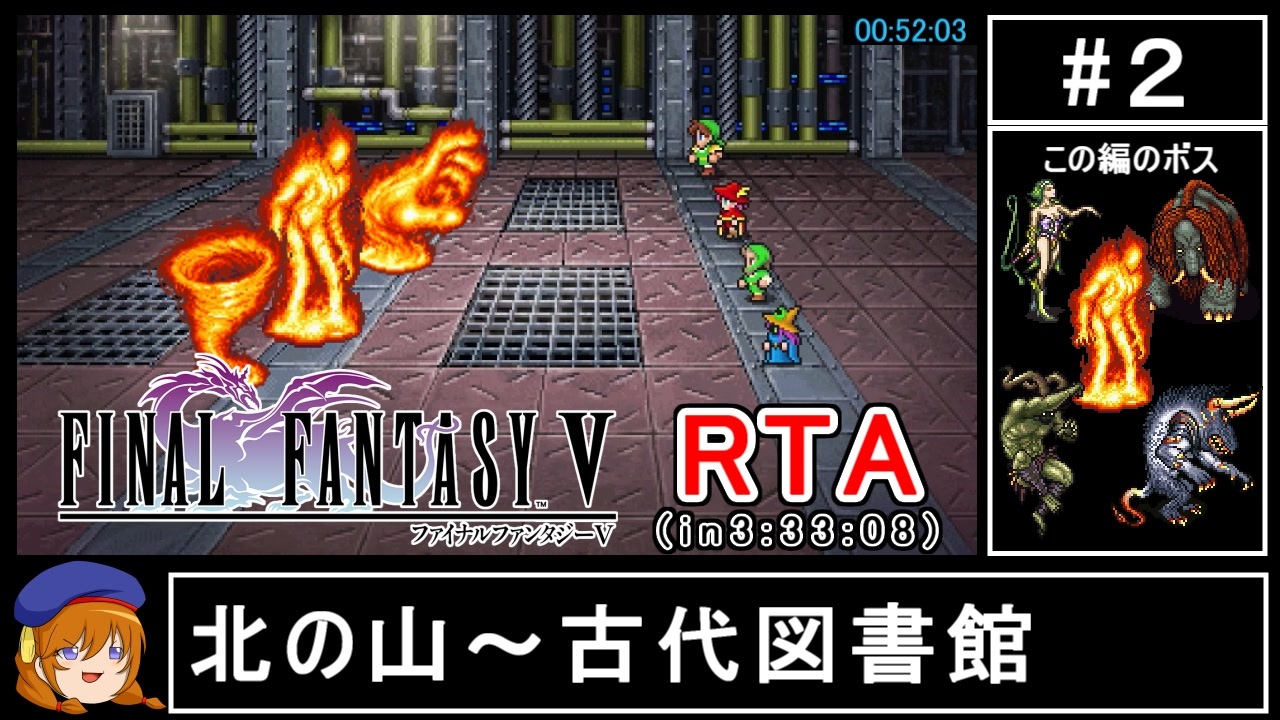 ネタバレあり<br><br><s>ゲーム音量を2割ほど下げてみました。<br>これでもバランス悪かったらセンセンシャル!</s><br>ミスって調整できてませんでした…<br><br>シーフでのダッシュ移動速度が速すぎて<br>ガバ移動が絶えないRTA<br><br>次→<a href="https://www.nicovideo.jp/watch/sm44143422" class="watch">sm44143422</a><br>前→<a href="https://www.nicovideo.jp/watch/sm44097090" class="watch">sm44097090</a><br><br>シリーズ→<a href="https://www.nicovideo.jp/series/486236" target="_blank" rel="noopener">series/486236</a><br><br>© SQUARE ENIX<br>LOGO ILLUSTRATION:© YOSHITAKA AMANO<br>「記載されている会社名・製品名・システム名などは、各社の商標、または登録商標です。」