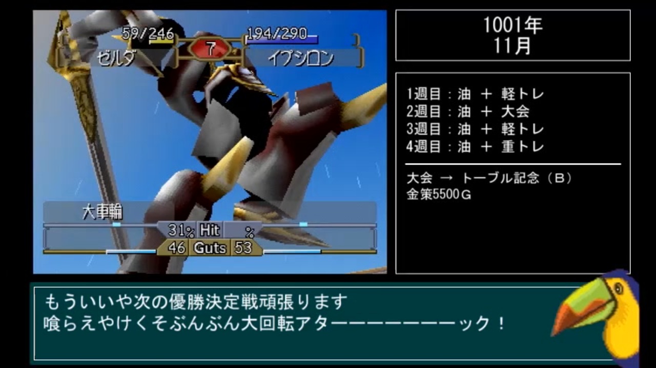 回避が低いと取れ高に困りません<br><br><a href="https://www.nicovideo.jp/watch/sm43931583" class="watch">sm43931583</a> ≪前|<a href="https://www.nicovideo.jp/mylist/66892364" target="_blank" rel="noopener">mylist/66892364</a>|次≫ <a href="https://www.nicovideo.jp/watch/sm45336622" class="watch">sm45336622</a><br><br>★ 本シリーズのPart1-1:<a href="https://www.nicovideo.jp/watch/sm35940916" class="watch">sm35940916</a><br>★ 育成結果まとめブログ:<a href="https://niconicojoytori.hatenablog.jp/about" target="_blank" rel="noopener nofollow">https://niconicojoytori.hatenablog.jp/about</a><br><br>☆ 特別企画YouTube(ボイスチェンジ配信・エキシビジョンマッチ)<br><a href="https://www.youtube.com/channel/UCcsCZPs_ZmFzsC8A4xr43-g/" target="_blank" rel="noopener nofollow">https://www.youtube.com/channel/UCcsCZPs_ZmFzsC8A4xr43-g/</a><br><br><概要><br>PSゲーム「モンスターファーム2」の縛りプレイです。<br>スタートから<span style="font-size: 13px;">殿堂入りまで、</span>1体だけで目指します。<br><br>① 初期セーブデータから開始 <br>② 市販CDからモンスターを再生(自作CDはダメ) <br>③ 他モンスターの再生禁止 (週送り・金策防止)<br>④ 殿堂入りを目指す <br>⑤ ドーピング系・ソンナバナナ・白銀モモの使用禁止<br><br>Twtitter:<a href="https://twitter.com/niconicojoytori" target="_blank" rel="noopener nofollow">https://twitter.com/niconicojoytori</a><br>ジョイ(鳥)@モンスターファーム@niconicojoytori