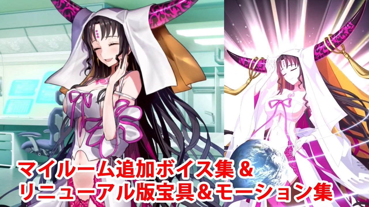 「奏章Ⅲ 新霊長後継戦 アーキタイプ・インセプション」後編開始時の<br>モーションリニューアルに合わせて追加された殺生院キアラ(CV:田中理恵)のマイルーム会話とバトルボイスのまとめと<br>リニューアルされた全バトルモーション(攻撃、スキル、EXアタック、宝具)のまとめです。<br><br>第1段階と第2・3段階でバトルボイスが変化するように変更されているので、全ボイスを収録しています。<br>また、第3段階では宝具ボイスにエコーがかかるようになります。<br><br>宝具「快楽天・胎蔵曼荼羅(アミダアミデュラ・ヘブンズホール)」<br><br>【チャプター】<br><a href="#" class="seekTime" data-seekTime="0:00" onclick="seekNicoPlayer('#0:00'); return false;">#0:00</a> 忠告<br><a href="#" class="seekTime" data-seekTime="0:05" onclick="seekNicoPlayer('#0:05'); return false;">#0:05</a> 追加マイルームボイス<br><a href="#" class="seekTime" data-seekTime="3:42" onclick="seekNicoPlayer('#3:42'); return false;">#3:42</a> 追加レベルアップボイス<br><a href="#" class="seekTime" data-seekTime="4:13" onclick="seekNicoPlayer('#4:13'); return false;">#4:13</a> バトルキャラ表示<br><a href="#" class="seekTime" data-seekTime="4:46" onclick="seekNicoPlayer('#4:46'); return false;">#4:46</a> バトルボイス(第1段階)<br><a href="#" class="seekTime" data-seekTime="8:28" onclick="seekNicoPlayer('#8:28'); return false;">#8:28</a> バトルボイス(第2段階)<br><a href="#" class="seekTime" data-seekTime="12:26" onclick="seekNicoPlayer('#12:26'); return false;">#12:26</a> バトルボイス(第3段階・宝具のみ)<br><a href="#" class="seekTime" data-seekTime="13:32" onclick="seekNicoPlayer('#13:32'); return false;">#13:32</a> リニューアル版モーション(第1段階)<br><a href="#" class="seekTime" data-seekTime="16:57" onclick="seekNicoPlayer('#16:57'); return false;">#16:57</a> リニューアル版モーション(第2・3段階)<br><br>YouTube版はこちら<br><a href="https://www.youtube.com/watch?v=QxEPtXuFF94" target="_blank" rel="noopener nofollow">https://www.youtube.com/watch?v=QxEPtXuFF94</a><br><br />投稿済ボイス集→<a href="https://www.nicovideo.jp/mylist/57873980" target="_blank" rel="noopener">mylist/57873980</a>、<a href="https://www.nicovideo.jp/mylist/68037946" target="_blank" rel="noopener">mylist/68037946</a>、<a href="https://www.nicovideo.jp/mylist/76708013" target="_blank" rel="noopener">mylist/76708013</a>
