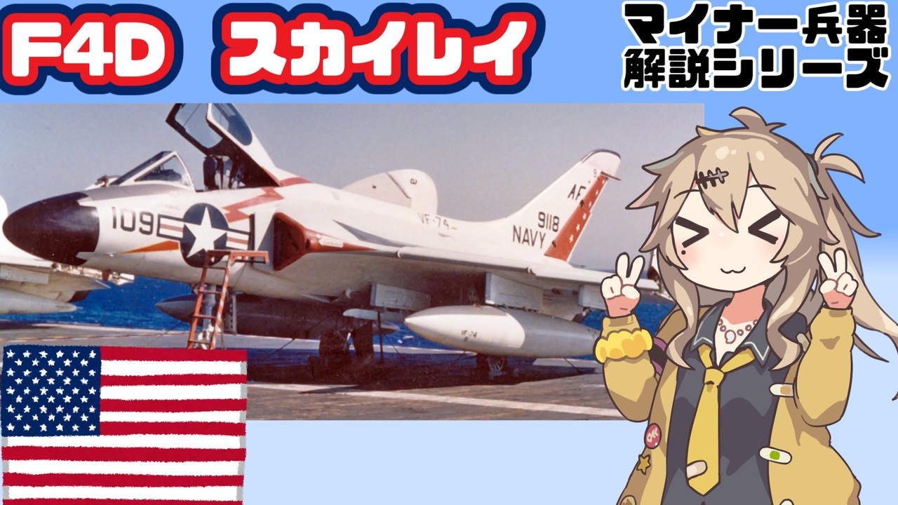 冒頭の怪文書はまほあこオンリーイベに金欠で行けない悲しみをぶつけた結果な気がする<br><br><a href="https://www.nicovideo.jp/mylist/74547937" target="_blank" rel="noopener">mylist/74547937</a><br>Youtube版→<a href="https://youtu.be/-tsitdQ-l6I?si=iHUgDtE2gcB1S2sg" target="_blank" rel="noopener nofollow">https://youtu.be/-tsitdQ-l6I?si=iHUgDtE2gcB1S2sg</a><br>参考文献(Youtube版はより詳細に書いてる):<br>英語版Wiki<br><br>Steve Ginter, Nick Williams「Douglas F-4D Skyray」(1986)<br><a href="https://archive.org/details/douglas-f-4-d-skyray/mode/2up" target="_blank" rel="noopener nofollow">https://archive.org/details/douglas-f-4-d-skyray/mode/2up</a><br><br>米海軍公式諸元表 <a href="https://www.ibiblio.org/hyperwar/USN/SAC/F4D-1_SkyraySAC-540201.pdf" target="_blank" rel="noopener nofollow">https://www.ibiblio.org/hyperwar/USN/SAC/F4D-1_SkyraySAC-540201.pdf</a><br><br>JOE BAUGHER'S HOME PAGE「Douglas F4D/F-6 Skyray」<br><a href="https://www.joebaugher.com/navy_fighters/f6.html" target="_blank" rel="noopener nofollow">https://www.joebaugher.com/navy_fighters/f6.html</a><br><br>F4Dの構造図<br><a href="https://sobchak.wordpress.com/2015/04/09/cutaway-douglas-f4d-skyray/" target="_blank" rel="noopener nofollow">https://sobchak.wordpress.com/2015/04/09/cutaway-douglas-f4d-skyray/</a><br>F5Dのカットモデル<br><a href="https://www.mycity-military.com/slika.php?slika=164157_156651325_Cutaway%20Douglas%20F5D%20Skylancer.jpg" target="_blank" rel="noopener nofollow">https://www.mycity-military.com/slika.php?slika=164157_156651325_Cutaway%20Douglas%20F5D%20Skylancer.jpg</a><br><br>・動画<br>「US Navy F4D Skyrays operations on USS Shangri-La (CVA-38)」<br><a href="https://youtu.be/NiNJa5KOJYc?si=81wGArINfp7XKx1C" target="_blank" rel="noopener nofollow">https://youtu.be/NiNJa5KOJYc?si=81wGArINfp7XKx1C</a><br>「U.S.S. Essex - "F4D Skyray & FJ-3 Fury" - 1958」<br><a href="https://youtu.be/VW1JN-qnEHI?si=_8F2URTFG0McZCEp" target="_blank" rel="noopener nofollow">https://youtu.be/VW1JN-qnEHI?si=_8F2URTFG0McZCEp</a><br>「Aircraft Familiarization The F4D-1 Skyray Operating Procedures」<br><a href="https://youtu.be/d2ZvOzsHJ3E?si=TO7sePTDSPMjUKgu" target="_blank" rel="noopener nofollow">https://youtu.be/d2ZvOzsHJ3E?si=TO7sePTDSPMjUKgu</a><br><br>使用素材集<br>BGM:アヒルのテーマ(鋼鉄の咆哮3より)<br>Shape memory alloys<br>Once It Starts-Supergarage<br>背景映像:昭和56年防衛庁記録 <a href="https://youtu.be/_MF8zGUFn_Y" target="_blank" rel="noopener nofollow">https://youtu.be/_MF8zGUFn_Y</a><br>いらすと:いらすとや様