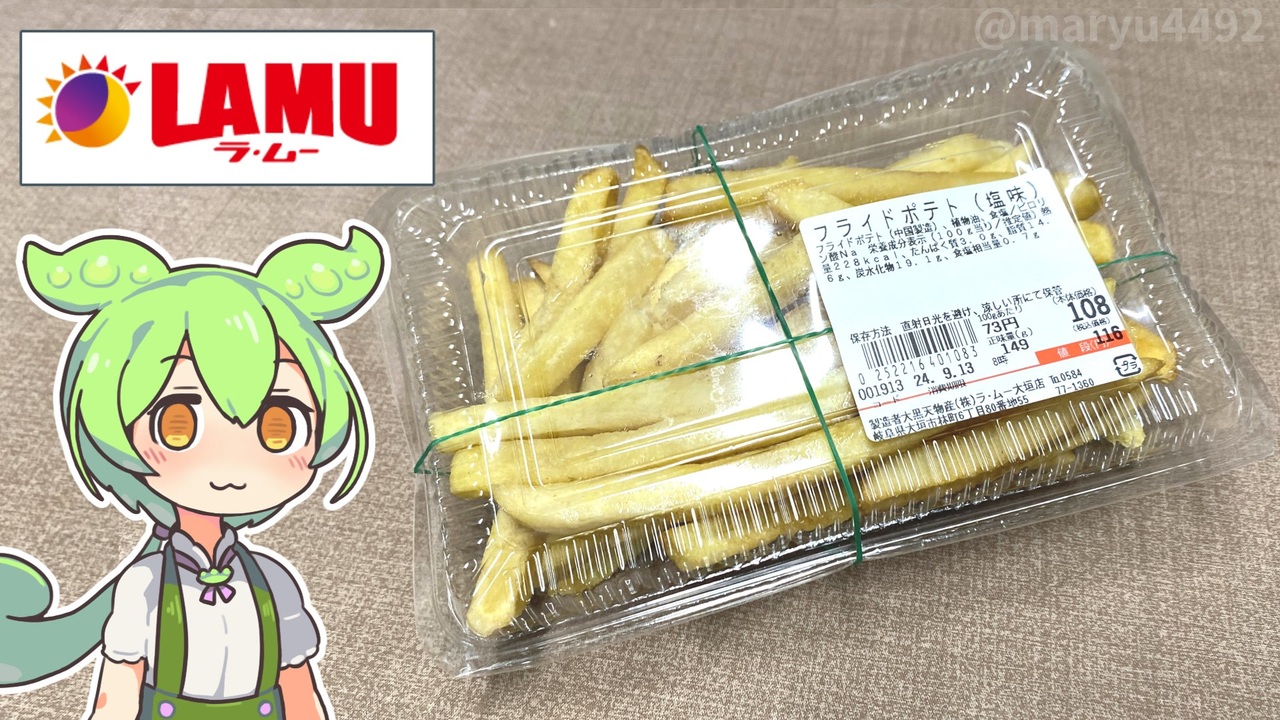 ラ・ムーのフライドポテトです。<br><br><br><br>【関連動画】<br> トップバリュの赤いヤツ「レンジで簡単!皮付冷凍フライドポテト」2024.05.17<br><a href="https://www.nicovideo.jp/watch/sm43790107" target="_blank" rel="noopener nofollow">https://www.nicovideo.jp/watch/sm43790107</a><br><br> 【参考】 <br>北海道ポテト袋レンジ(トップバリュ)<br> <a href="https://www.topvalu.net/items/detail/4549414236637/" target="_blank" rel="noopener nofollow">https://www.topvalu.net/items/detail/4549414236637/</a> <br><br>【使用した素材】(※敬称略) <br>(合成音声)VOICEVOX/ずんだもん/四国めたん <br><a href="https://voicevox.hiroshiba.jp/" target="_blank" rel="noopener nofollow">https://voicevox.hiroshiba.jp/</a> <br>(立ち絵)坂本アヒル<br> <a href="https://seiga.nicovideo.jp/seiga/im10788496" target="_blank" rel="noopener">im10788496</a>/<a href="https://seiga.nicovideo.jp/seiga/im10791276" target="_blank" rel="noopener">im10791276</a> <br>(楽曲)甘茶の音楽工房/「楽しい麦畑」「フルーツパフェ」「残業戦士」<br> <a href="https://amachamusic.chagasi.co" target="_blank" rel="noopener nofollow">https://amachamusic.chagasi.co</a>
