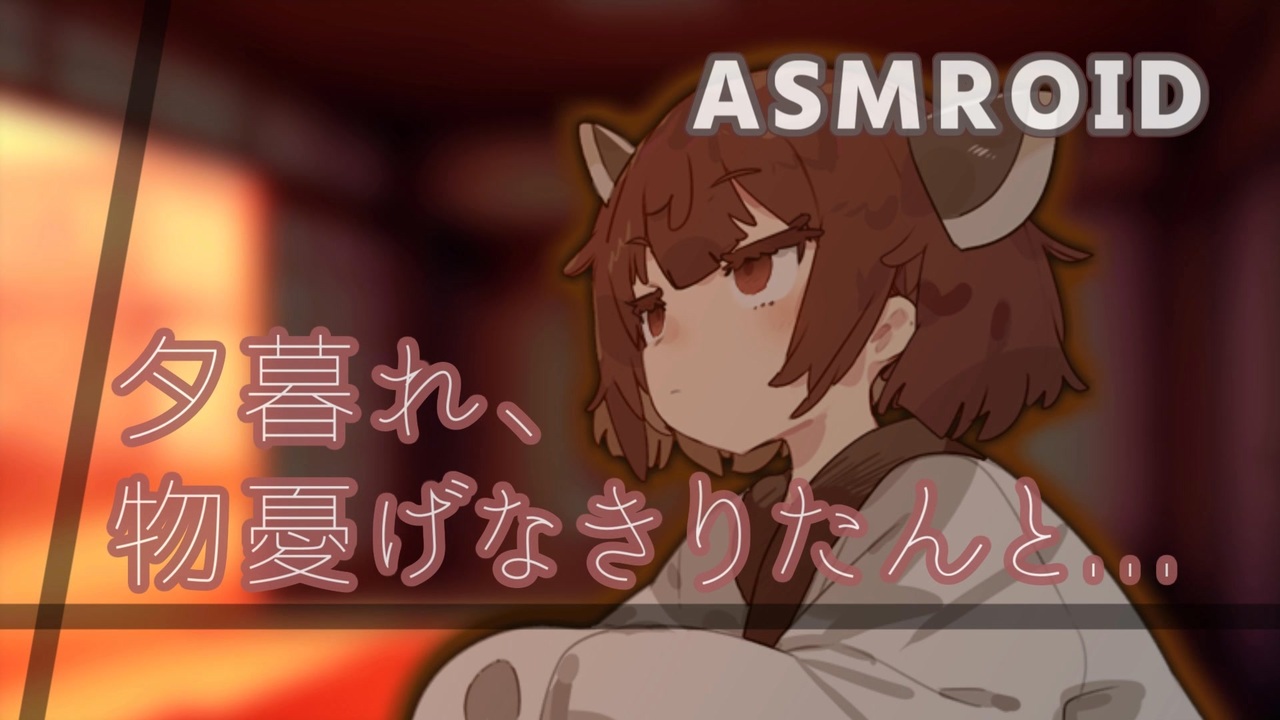初投稿です。<br><br>溜め込んだ悩みをきりたんに聞いてもらう話です。<br><br><span style="color: #0000ff;">あなた:<br>ずっと引き摺っている悩みがある。特に憂鬱な気分のある日、夕陽を見ているきりたんに無性に引き寄せられた</span><br><br><span style="color: #ff0000;">きりたん:<br>あなたの妹。学校以外はずっと家にいる引きこもり気質。昔は喧嘩したり懐かれたりしていたが、最近はあまり話していない。</span><br><br>・声<br>VOICEROID+ 東北きりたんEX<br><br>・立ち絵<br>東北きりたん からい様<br><br>・耳かき音<br>MTO KN様<br><br>ASMROID投稿者の皆さんに感銘を受けて作りました。動画作成ってこんなに大変だったんですね。投稿者の方ってすごい。<br>作るの初めてなので台詞のペースが早かったり、ストーリーが迷走気味になってたりしますがお許しください。<br>そのうち続き投稿したいですね。次はきりたんの声ちゃんと左右に偏らせようかな...<br><br><br><br><span style="color: #ffffff;">裏話:2:53からのくだりの意味についてちょっとだけ。<br>縁側が兄様との思い出の場所だからというのももちろんありますが、悩みを抱えているきりたんの自室は二階であるため、窓から夕陽を見ていると飛び降りたくなってしまうんですね。しかし、動画内で本人が言っているようにまだきりたんは生き続ける意思を見せています。そのため自室の窓には近づかないようにしていたというわけです。分かった人いたかな。いたらすごい。</span>