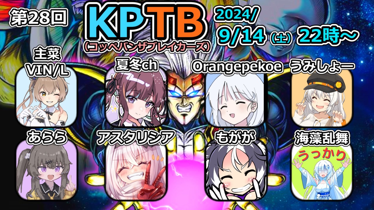 【あらすじ】<br>第28回も終盤戦。<br>とうとう巡ってきたレイダー回で、夏色花梨先輩はブウだけがもつ強みを活かすと語るが?<br>そして埼玉ギャルとの百合営業の行方は……?<br>次回「暑かったけど…短かったね、夏。」<br>KPTBの歴史がまた一ページ。<br><br>【登場人物】<br>夏色花梨先輩:撮れ高確保に情熱を燃やす実況少女。今回はちょっと新しい歌唄っちゃったなぁと思ったら普通に昔で驚く事が多い。<br>花隈千冬後輩:冷静沈着(?)なアシスタント。先輩が好き。<br><br>【参加者様(敬称略・頻出呼称)】<br>主催:VIN/L(ささらちゃん) <a href="https://www.nicovideo.jp/user/123010347" target="_blank" rel="noopener">user/123010347</a><br>もがが <a href="https://www.nicovideo.jp/user/46251515" target="_blank" rel="noopener">user/46251515</a><br>海藻乱舞さん <a href="https://www.nicovideo.jp/user/128788617" target="_blank" rel="noopener">user/128788617</a><br>Orangepekoeさん(ナコちゃん) <a href="https://www.nicovideo.jp/user/154485" target="_blank" rel="noopener">user/154485</a><br>moto ikemen <a href="https://www.nicovideo.jp/user/4953605" target="_blank" rel="noopener">user/4953605</a><br>ヤムシン <a href="https://www.nicovideo.jp/user/21819424" target="_blank" rel="noopener">user/21819424</a><br>あらら <a href="https://www.nicovideo.jp/user/129767104" target="_blank" rel="noopener">user/129767104</a><br>眠い薬品@あすたりしあ(つむぎちゃん) <a href="https://www.nicovideo.jp/user/1937506" target="_blank" rel="noopener">user/1937506</a><br><br>【立ち絵】<br>からい先生 <a href="https://twitter.com/flat_fish_" target="_blank" rel="noopener nofollow">https://twitter.com/flat_fish_</a><br><br>【蓋絵】<br>たれこ先生 <a href="https://twitter.com/tareko_ill" target="_blank" rel="noopener nofollow">https://twitter.com/tareko_ill</a><br><br>【いいね忘れ防止】<br>こーすけさんたまりあ先生 <a href="https://twitter.com/kousuke_LP" target="_blank" rel="noopener nofollow">https://twitter.com/kousuke_LP</a><br><br>【倍速時センター先輩】<br>りょうご先生 <a href="https://seiga.nicovideo.jp/seiga/im11432755" target="_blank" rel="noopener">im11432755</a><br><br>【使用ソフト】<br>CevioAI 夏色花梨<br>CevioAI 花隈千冬<br>synthesizerV 夏色花梨<br>synthesizerV 花隈千冬<br>synthesizerV 小春六花