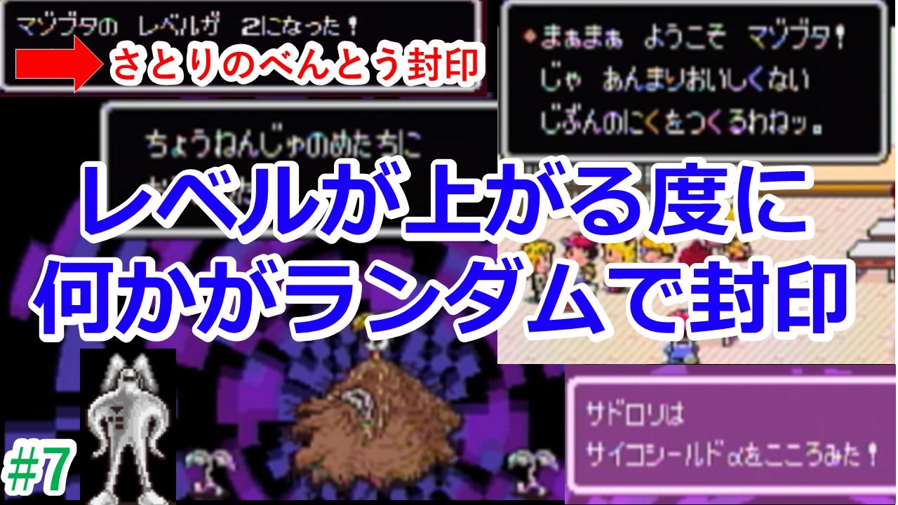 RPGの封印縛り、アクションより圧倒的に製作コストが低いです。<br>カービィシリーズは週1でヒィヒィ言ってましたね。<br><br>縛り内容<br>・レベルが1上がる度にランダムでPSI・道具・固有コマンド・一部のNPCが封印される。<br>・経験値が入る戦闘にて、パーティ内の最低レベルの仲間が死亡している状態での戦闘終了禁止。<br>・進路上の空間にいる敵は全て撃破。ただし、追ってこない敵は倒す必要がない。<br>・逃走禁止。<br>・ボスは試行回数殴りOK。(敗戦後、道中を飛ばして再戦可)<br><br>(封印対象物について)<br>・イベント進行不可に陥った場合の封印物使用はOK。<br> (テレポートα習得イベント時のサルへのプレゼント、ラスボス戦の「いのる」等)<br>・「こわれたアイテム」が封印されても修理可。換金のみが禁止。<br>・「テレポートαβ」「キャッシュカード」「換金不可 且つ 効果のないアイテム」は封印対象外。<br><br><br>過去シリーズ → <a href="https://www.nicovideo.jp/mylist/71307387" target="_blank" rel="noopener">mylist/71307387</a><br>告知 → <a href="https://twitter.com/mazoriahosh" target="_blank" rel="noopener nofollow">https://twitter.com/mazoriahosh</a><br>youtube → <a href="https://www.youtube.com/watch?v=qskHDlLNypY" target="_blank" rel="noopener nofollow">https://www.youtube.com/watch?v=qskHDlLNypY</a>