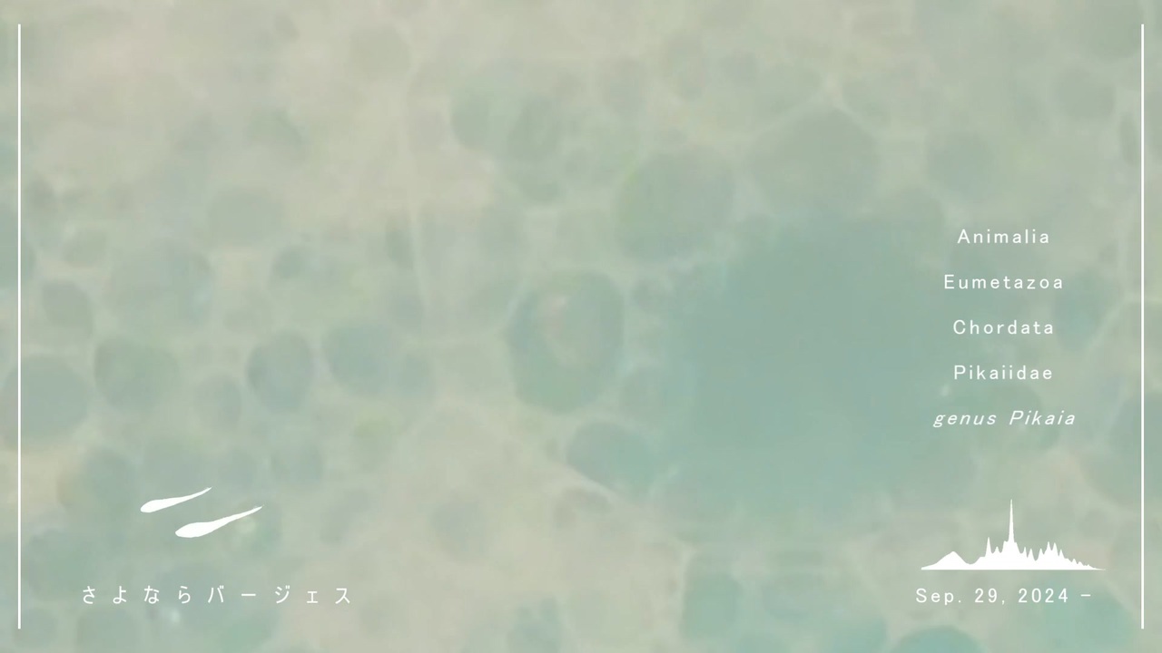 動物ソング投稿祭2024<br><br>モチーフは「ピカイア」、基盤的な脊索動物です。<br>脊椎動物の直接の祖先と考えられていた時代もあるようです。<br>(参考)<a href="https://ja.wikipedia.org/wiki/%E3%83%94%E3%82%AB%E3%82%A4%E3%82%A2" target="_blank" rel="noopener nofollow">https://ja.wikipedia.org/wiki/%E3%83%94%E3%82%AB%E3%82%A4%E3%82%A2</a><br><br>Lyric<br>眼なんて無いけど<br>傍に居るから<br>現代も続く愛の堆積<br><br>酸素もない<br>海底の唄を<br><br>手なんて無いから<br>傍に居るだけ<br>現代も全部<br>愛の形が土になっても忘れない<br>紀元、前夜の夏の終わりを<br><br>music, movie: kondo <a href="https://x.com/kzzguitar" target="_blank" rel="noopener nofollow">https://x.com/kzzguitar</a><br>youtube: 10/4 19:00~公開予定 <a href="https://youtu.be/tjXG6LBrnXk" target="_blank" rel="noopener nofollow">https://youtu.be/tjXG6LBrnXk</a><br>