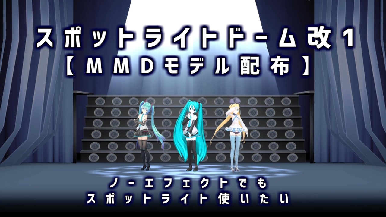 MikuMikuDanceでMMEを使わずに、スポットライトっぽい表現したい時に使うやつ。<br>ノーエフェクトでもスポットライト使いたい。<br>MMDエンジンを組み込んだり、いくつか設定例のVMDを用意したり、一部の名称変更や微修正をしました。<br>基本的に固定ライトとして使います。疑似的にセルフ影落としたくて作りました。<br><br>前回の配布動画→【 <a href="https://www.nicovideo.jp/watch/sm43217402" target="_blank" rel="noopener nofollow">https://www.nicovideo.jp/watch/sm43217402</a> 】<br><br>仕組みの説明など [<a href="#" class="seekTime" data-seekTime="00:20" onclick="seekNicoPlayer('#00:20'); return false;">#00:20</a>]<br>基本的な使い方について [<a href="#" class="seekTime" data-seekTime="01:03" onclick="seekNicoPlayer('#01:03'); return false;">#01:03</a>]<br>ライト設定例 [<a href="#" class="seekTime" data-seekTime="03:37" onclick="seekNicoPlayer('#03:37'); return false;">#03:37</a>]<br>MMDエンジンについて [<a href="#" class="seekTime" data-seekTime="04:06" onclick="seekNicoPlayer('#04:06'); return false;">#04:06</a>]<br>セルフ影について [<a href="#" class="seekTime" data-seekTime="04:34" onclick="seekNicoPlayer('#04:34'); return false;">#04:34</a>]<br>MMEと合わせる使用例 [<a href="#" class="seekTime" data-seekTime="04:58" onclick="seekNicoPlayer('#04:58'); return false;">#04:58</a>]<br><br>配布場所→<a href="https://bowlroll.net/file/311727" target="_blank" rel="noopener nofollow">https://bowlroll.net/file/311727</a><br>ニコニ・コモンズ→<a href="https://commons.nicovideo.jp/works/sm44155736" target="_blank" rel="noopener nofollow">https://commons.nicovideo.jp/works/sm44155736</a><br>改造ご自由に。使い勝手良くできたら配布してくれると嬉しいです。<br>ニコニ・コモンズでも探せるようにライセンス登録しておきました。<br>利用したいリストという備忘録機能もあるので、よければご活用ください。