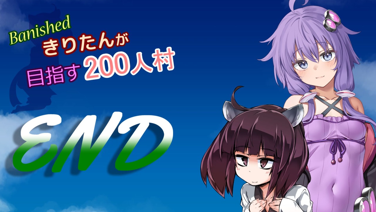 これで、きりたん村長のずんポコ村開拓期は本当におしましです。<br>今度もまた移民を受け入れてはなにかやらかし続けることでしょう。<br><br>Banishedは楽しいゲームですので、セールの際などに是非。<br>過去に投稿した"きりたんが目指す100人村"のおまけです。<br>前:<a href="https://www.nicovideo.jp/watch/sm44071032" class="watch">sm44071032</a> / 次:おしまい / Part1:<a href="https://www.nicovideo.jp/watch/sm33152099" class="watch">sm33152099</a> / 一覧:<a href="https://www.nicovideo.jp/mylist/61890356" target="_blank" rel="noopener">mylist/61890356</a> / 総集編:<a href="https://www.nicovideo.jp/watch/sm43966538" class="watch">sm43966538</a><br><br>ゲームデータはクラッシュしたので、残っている映像でたぶん2パートぐらいで終わります<br>------------------------------------------------<br>●最悪帝国&僧侶縛りアクリルキーホルダー作りました:Booth通販<br><a href="https://azumix.booth.pm/items/5962659" target="_blank" rel="noopener nofollow">https://azumix.booth.pm/items/5962659</a><br>------------------------------------------------<br>X(旧Twitter):h<a href="https://x.com/azupashiboh" target="_blank" rel="noopener nofollow">https://x.com/azupashiboh</a><br>Missdky:<a href="https://misskey.io/@azmix" target="_blank" rel="noopener nofollow">https://misskey.io/@azmix</a>