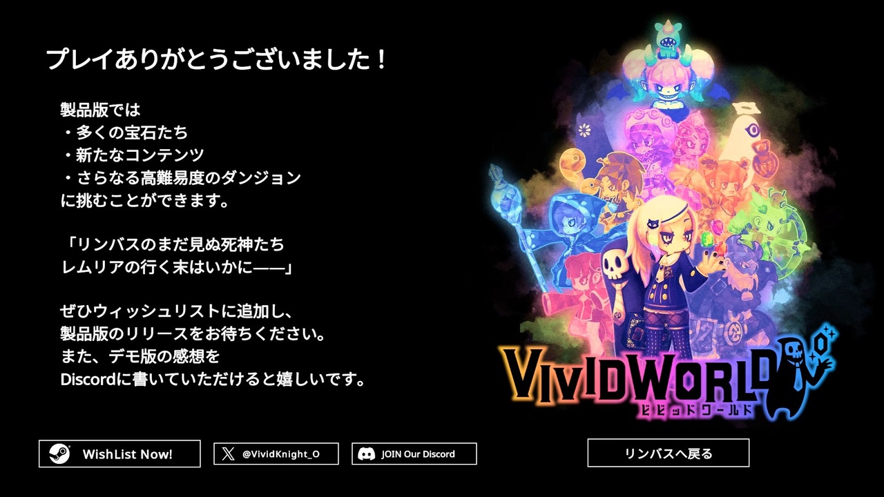 ビビッドワールド体験版を遊びます。<br><a href="https://store.steampowered.com/app/2468550/Vivid_World/?utm_source=fr&utm_campaign=jp&utm_medium=yt&utm_content=ic_026" target="_blank" rel="noopener nofollow">https://store.steampowered.com/app/2468550/Vivid_World/?utm_source=fr&utm_campaign=jp&utm_medium=yt&utm_content=ic_026</a><br><br>10/3に出る体験版をちょっと早く遊んでみるぞ!<br><br>前:<a href="https://www.nicovideo.jp/watch/sm44159063" class="watch">sm44159063</a><br><br />その1まとめ:<a href="https://www.nicovideo.jp/mylist/39194985" target="_blank" rel="noopener">mylist/39194985</a><br>コミュ: co2243232<br>youtube:<a href="https://www.youtube.com/channel/UCClaSgb7vRBip-h5ZWZBsjA" target="_blank" rel="noopener nofollow">https://www.youtube.com/channel/UCClaSgb7vRBip-h5ZWZBsjA</a><br>
