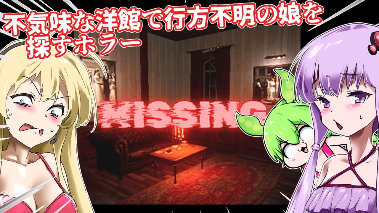 結月ゆかりさん、ずんだもん、弦巻マキちゃんが、海外のホラーゲームに挑むようです。<br><br>◎あらすじ◎<br>主人公の娘、サラが行方不明になった。電話にも出ないし、こんなのはサラらしくない。<br>残念なことに、警察はサラが行方不明になってまだ日が浅いので、捜索をするほどではないと<br>判断した。主人公は主人公は自力で娘を探すべく、娘の携帯電話の位置情報を追って不気味な<br>洋館まで車を走らせる…<br><br>※投稿者のガバ翻訳付きです。<br>配信ページ 日本語非対応<br><a href="https://ajrgallery.itch.io/missing" target="_blank" rel="noopener nofollow">https://ajrgallery.itch.io/missing</a><br><br>VOICEVOX:ずんだもん<br><a href="https://voicevox.hiroshiba.jp/" target="_blank" rel="noopener nofollow">https://voicevox.hiroshiba.jp/</a><br><br>COEIROINK:黒聡鵜月<br><a href="https://coeiroink.com/" target="_blank" rel="noopener nofollow">https://coeiroink.com/</a><br><br>BGMをお借りしました。<br><a href="https://otologic.jp/" target="_blank" rel="noopener nofollow">https://otologic.jp/</a><br><br>立ち絵をお借りしました。<br><a href="https://seiga.nicovideo.jp/seiga/im10933652" target="_blank" rel="noopener nofollow">https://seiga.nicovideo.jp/seiga/im10933652</a><br><a href="https://seiga.nicovideo.jp/seiga/im11230837" target="_blank" rel="noopener nofollow">https://seiga.nicovideo.jp/seiga/im11230837</a><br><a href="https://seiga.nicovideo.jp/seiga/im11229020" target="_blank" rel="noopener nofollow">https://seiga.nicovideo.jp/seiga/im11229020</a><br><a href="https://seiga.nicovideo.jp/seiga/im4817713" target="_blank" rel="noopener nofollow">https://seiga.nicovideo.jp/seiga/im4817713</a>