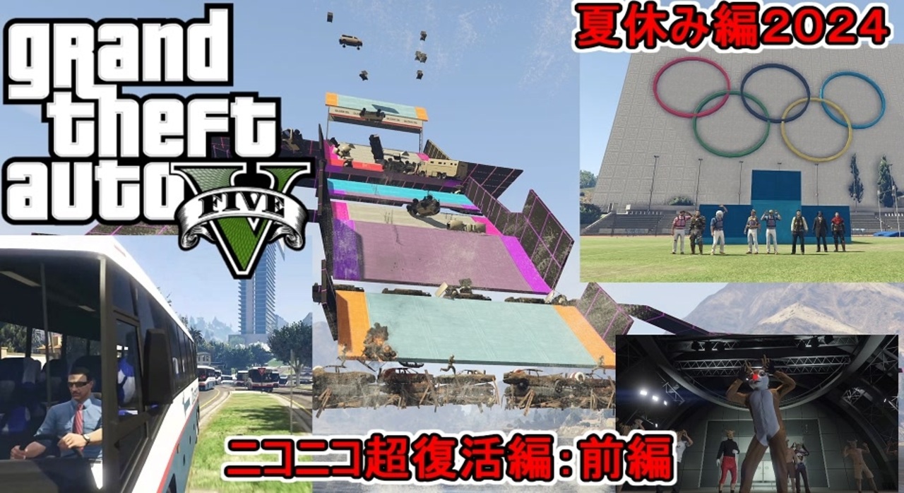 まだ猛暑日が続いてるから夏だな!!!<br>今年は上半期の流行った物を色々GTAで再現していくぜ!つまりいつも通りだな!<br><br>YouTube高画質版:<a href="https://youtu.be/n7U3Zaolixg" target="_blank" rel="noopener nofollow">https://youtu.be/n7U3Zaolixg</a><br>Twitter::<a href="https://twitter.com/naoreisen" target="_blank" rel="noopener nofollow">https://twitter.com/naoreisen</a><br><br>次回 夏休み編2024:後編:<a href="https://www.nicovideo.jp/watch/sm44177353" class="watch">sm44177353</a><br><br>前回 パーティアニマルズ:世紀末ゲームセンター:<a href="https://www.nicovideo.jp/watch/sm44166636" class="watch">sm44166636</a><br>前回 ふにんがす:更生した人外編:<a href="https://www.nicovideo.jp/watch/sm44121205" class="watch">sm44121205</a><br>前回 青鬼Part2:<a href="https://www.nicovideo.jp/watch/sm44084272" class="watch">sm44084272</a><br>前回 GTA5オンライン:リスナーと一緒に指名手配犯をしばきに行く:<a href="https://www.nicovideo.jp/watch/sm44071303" class="watch">sm44071303</a><br>前回 GTA5:カオス動画:フィルムを取り戻せ編:<a href="https://www.nicovideo.jp/watch/sm43678601" class="watch">sm43678601</a><br>前回 GTA5:手配度MAX:FREEDOM編:<a href="https://www.nicovideo.jp/watch/sm43564694" class="watch">sm43564694</a><br>前回 猫ミームブラック企業動画:<a href="https://www.nicovideo.jp/watch/sm43364794" class="watch">sm43364794</a><br>前回 GTA動画:KICK BACK PV再現:<a href="https://www.nicovideo.jp/watch/sm41527305" class="watch">sm41527305</a><br><br>ふにんがす動画マイリスト <a href="https://www.nicovideo.jp/mylist/71314393" target="_blank" rel="noopener">mylist/71314393</a><br>GTA5手配度MAXシリーズ <a href="https://www.nicovideo.jp/mylist/18374381" target="_blank" rel="noopener">mylist/18374381</a>#PR<br>
