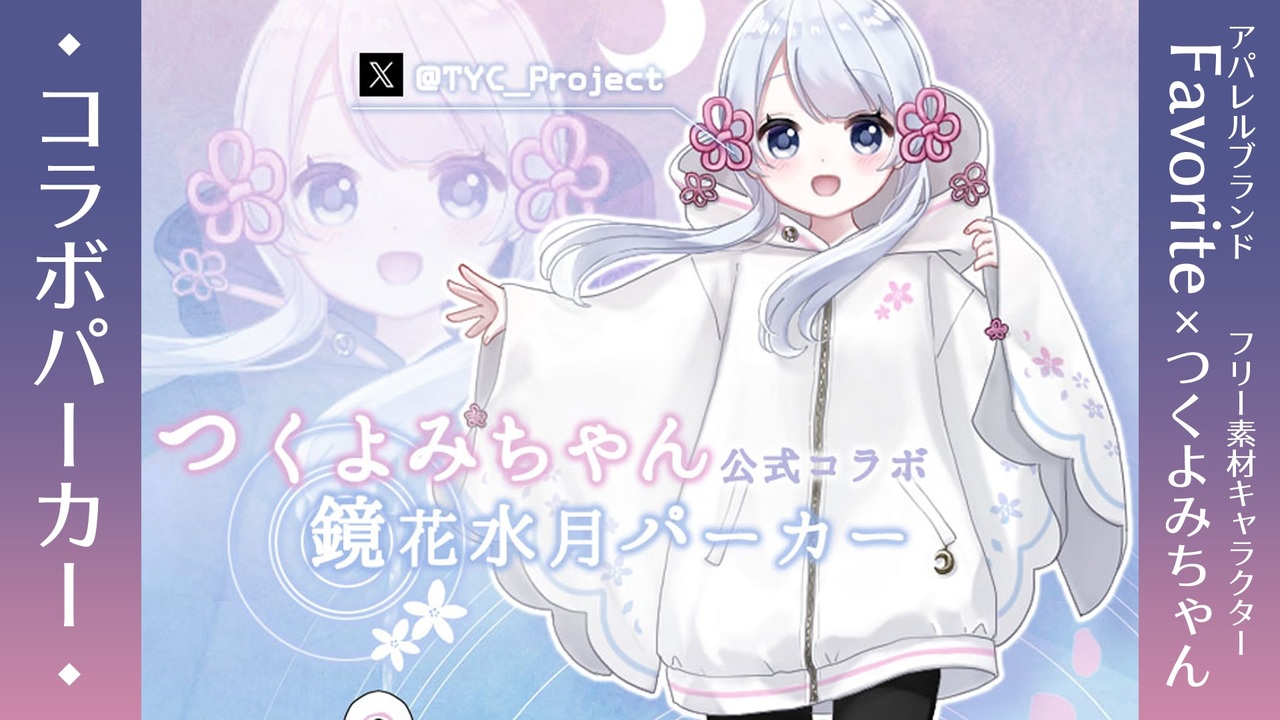 ついにつくよみちゃんにも企業案件が……!?<br>アパレルブランドFavorite様より、つくよみちゃん公式コラボ「鏡花水月パーカー」登場! <br><br><span style="font-size: 18px;"><strong>■つくよみちゃん公式サイト内 特設ページ<br>⇒ <a href="https://tyc.rei-yumesaki.net/news/20241004-favorite/" target="_blank" rel="noopener nofollow">https://tyc.rei-yumesaki.net/news/20241004-favorite/</a><br><br>■Favorite様 商品ページ【予約受付中】<br>⇒ <a href="https://favorite-one.co.jp/view/item/000000018116" target="_blank" rel="noopener nofollow">https://favorite-one.co.jp/view/item/000000018116</a></strong></span><br><br>2024年10月4日18時より、予約受付スタート!<br>約1か月以内に予約数が基準を超えれば発売決定、予約数が少ない場合は生産中止となります。<br><br>★追記:おかげさまで、予約受付開始から4日で生産が確定しました! ありがとうございます!<br><br>パーカーのデザイン及び着用イメージイラストは、「つくよみちゃんプロジェクト」企画者・夢前黎の監修のもとで、Favorite様に制作していただきました!<br><br>***<br><br>■つくよみちゃん公式サイトTOP<br>⇒ <a href="https://tyc.rei-yumesaki.net/" target="_blank" rel="noopener nofollow">https://tyc.rei-yumesaki.net/</a><br><br>■つくよみちゃん公式Xアカウント(旧Twitter)<br>⇒ <a href="https://x.com/TYC_Project" target="_blank" rel="noopener nofollow">https://x.com/TYC_Project</a><br><br>■動画内音声:A.I.VOICE2 つくよみちゃん<br>⇒ <a href="https://tyc.rei-yumesaki.net/work/software/aivoice/" target="_blank" rel="noopener nofollow">https://tyc.rei-yumesaki.net/work/software/aivoice/</a><br><br>■BGM:『フリー素材キャラクターつくよみちゃん(Off Vocal)』<br>⇒ <a href="https://tyc.rei-yumesaki.net/material/music/fmct/" target="_blank" rel="noopener nofollow">https://tyc.rei-yumesaki.net/material/music/fmct/</a><br><br>■立ち絵素材:つくよみちゃん万能ミニキャラ素材(きばやし様)<br>⇒ <a href="https://tyc.rei-yumesaki.net/material/illust/" target="_blank" rel="noopener nofollow">https://tyc.rei-yumesaki.net/material/illust/</a><br><br>■運営・キャラクター原案・公式CV:夢前黎<br><br>■<a href="https://www.nicovideo.jp/mylist/18309714" target="_blank" rel="noopener">mylist/18309714</a><br /><br>※当アカウントの動画は、<a href="https://blog.nicovideo.jp/niconews/ni004137.html" target="_blank" rel="noopener nofollow">https://blog.nicovideo.jp/niconews/ni004137.html</a> のガイドラインに準じて投稿させていただいております。