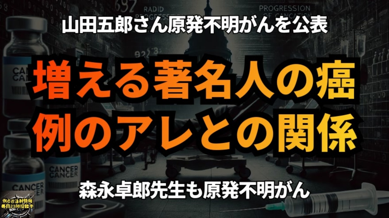 山田五郎さん(65) 原発不明癌を報告<br>抗がん剤治療中、腰に放射線<br><br>ぎっくり腰でなく<br>骨転移、腰椎圧迫骨折していた<br><br>5か月前は何もなかった<br>肝臓に散らばったガン<br>リンパにも骨にも転移<br><br>次はオプジーボ<br>その次はゲノム検査して分子標的薬が最後の手段…<br><a href="https://x.com/fraisst/status/1842160244971155684?t=xIoyoWaQu-02ye6AvnSijg&s=19" target="_blank" rel="noopener nofollow">https://x.com/fraisst/status/1842160244971155684?t=xIoyoWaQu-02ye6AvnSijg&s=19</a><br><br><br>ウイリアム・マキス博士<br>イベルメクチン療法<br><a href="https://twitter.com/MakisMD/status/1776574254412140545?t=iq_hFi1ch7XdfIYLpw66LQ&s=19" target="_blank" rel="noopener nofollow">https://twitter.com/MakisMD/status/1776574254412140545?t=iq_hFi1ch7XdfIYLpw66LQ&s=19</a><br><br><br>【動画更新】評論家の山田五郎氏、原発不明がんを報告<br><a href="https://news.livedoor.com/lite/article_detail/27311467/" target="_blank" rel="noopener nofollow">https://news.livedoor.com/lite/article_detail/27311467/</a><br><br>ぎっくり腰であることを公表していたが、実はぎっくり腰ではなく、がんが骨に転移して腰椎が圧迫骨折していたと説明。今後もYouTubeの配信ほか、仕事も続けていくとのこと。<br><a href="https://x.com/livedoornews/status/1842160234959454268?t=WEvErFMxkOgN2MyrZ-S7mA&s=19" target="_blank" rel="noopener nofollow">https://x.com/livedoornews/status/1842160234959454268?t=WEvErFMxkOgN2MyrZ-S7mA&s=19</a><br><br><br>森永卓郎さんとすごくにた経過ですね。<br><br>腰痛<br>↓<br>腰の骨でがんの転移見つかる<br>↓<br>肝臓に多発転移見つかる(5ヶ月前の検査ではなかった)<br>↓<br>いくら探しても原発巣がわからない…<br><br>森永さんも山田さんも頑張ってほしい。<br><br>山田五郎、原発不明がんを公表<br>#Yahooニュース<br><a href="https://x.com/MNHR_Labo/status/1842324359526121696?t=HKo7bSBqt1pUq-xWJL5ATw&s=19" target="_blank" rel="noopener nofollow">https://x.com/MNHR_Labo/status/1842324359526121696?t=HKo7bSBqt1pUq-xWJL5ATw&s=19</a><br><br><br>森永卓郎先生も原発不明がん。5回目接種の後、最初の異変は昨年8月の背中の激痛で。<br><a href="https://x.com/chiharu_2222/status/1842214799478055128?t=p04csUZukTIqshneaSMb6g&s=19" target="_blank" rel="noopener nofollow">https://x.com/chiharu_2222/status/1842214799478055128?t=p04csUZukTIqshneaSMb6g&s=19</a><br><br><br>原発不明がん<br>山田五郎<br>森永卓郎<br>がん闘病<br>ワクチン接種後の異変<br>がんの転移<br><br>オプジーボ<br>ターボ癌<br>ステージ4<br>定期接種よく考えて<br>膵臓がん<br><br><br><br />著作権、肖像権に配慮して作成しております。<br><br>◆気になったニュースの台本!?<br>メモ代わりに作った台本をそのままあげてます<br><a href="https://keiichiro8140.hatenablog.com/." target="_blank" rel="noopener nofollow">https://keiichiro8140.hatenablog.com/.</a><br><br><br>ここからはシリーズ紹介<br><br><br>◆ ワクチン解毒・デトックス<br><a href="https://x.gd/fZweg" target="_blank" rel="noopener nofollow">https://x.gd/fZweg</a><br><br>◆ウイリアム・マキス博士のがん治療(イベルメクチン・フェンベンダゾール等)<br><a href="https://x.gd/AtFYS" target="_blank" rel="noopener nofollow">https://x.gd/AtFYS</a><br><br>◆予防接種健康被害救済制度<br><a href="https://x.gd/0xK9x" target="_blank" rel="noopener nofollow">https://x.gd/0xK9x</a><br><br>◆気になったニュース #1501~<br><br>◆ 【ショートver】気になったニュース<br><a href="https://x.gd/7MxXC" target="_blank" rel="noopener nofollow">https://x.gd/7MxXC</a><br><br>◆ 気になったニュース #1001~<br><a href="https://x.gd/Lp8gv" target="_blank" rel="noopener nofollow">https://x.gd/Lp8gv</a><br><br>◆ 気になったニュース #501~<br><a href="https://x.gd/EmbS4" target="_blank" rel="noopener nofollow">https://x.gd/EmbS4</a><br><br>◆ 気になったニュース #1~#500<br><a href="https://x.gd/uPhNb" target="_blank" rel="noopener nofollow">https://x.gd/uPhNb</a><br><br>◆ X(旧Twitter)・テレグラムで気になった情報<br><a href="https://x.gd/YG6FT" target="_blank" rel="noopener nofollow">https://x.gd/YG6FT</a><br><br>◆ 日比谷5万人パレードデ⚪生放送アーカイブ動画<br><a href="https://x.gd/3CHJv" target="_blank" rel="noopener nofollow">https://x.gd/3CHJv</a><br><br>◆日比谷5万人パレード⚪モのマイリスト作ってみました<br><a href="https://nico.ms/mylist/76828848?ref=sp_other" target="_blank" rel="noopener nofollow">https://nico.ms/mylist/76828848?ref=sp_other</a><br><br>◆3.30 令和の百姓⚪⚪<br><a href="https://www.nicovideo.jp/series/511791?ref=garage_share_other" target="_blank" rel="noopener nofollow">https://www.nicovideo.jp/series/511791?ref=garage_share_other</a><br><br>◆ 及川幸久さんの【XNEWS】シリーズ<br><a href="https://x.gd/3k78K" target="_blank" rel="noopener nofollow">https://x.gd/3k78K</a><br><br>◆これまでの動画<a href="https://x.gd/sPXoJ" target="_blank" rel="noopener nofollow">https://x.gd/sPXoJ</a><br><br>◆もしも(BAN)の時のためのマイリンク集<a href="https://lit.link/K-16_News44" target="_blank" rel="noopener nofollow">https://lit.link/K-16_News44</a><br><br>