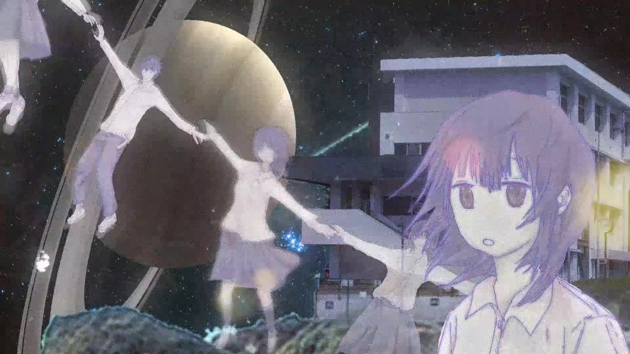 <span style="color: #9900ff; font-size: 16px;"><i>そこは、子供たちだけの楽園____。</i></span><br><br>■作詞作曲編曲、絵、動画:アヒルの天ぷら<br><a href="https://x.com/ahirukawaiine" target="_blank" rel="noopener nofollow">https://x.com/ahirukawaiine</a><br>■歌唱:初音ミク<br>■調声:あぽろ<br><a href="https://x.com/aporomixchan" target="_blank" rel="noopener nofollow">https://x.com/aporomixchan</a><br><br>マイリスト→<a href="https://www.nicovideo.jp/mylist/74773947" target="_blank" rel="noopener">mylist/74773947</a><br><br>YOUTUBE:<a href="https://youtu.be/7Cz0A8cX6u8" target="_blank" rel="noopener nofollow">https://youtu.be/7Cz0A8cX6u8</a><br><br>木々はざわめいてる<br>土星の輪のふもとで<br>透き通った 子供たち あそぶ<br><br>草原を抜けた先、そこで世界はおしまい<br>宇宙の中 浮かんでる 校舎<br><br>地球にいた頃の記憶はおぼろ<br>ふわふわ クラスメイトと泳ぐ<br>不思議に思わない ただここに居る<br>箱庭は小さくて大きかった<br><br>星の砂浜 手でひと掬い 光が跳ねる<br>透きとおっている君が笑った 世界のすべて。<br><br>悲しい事も全て還って ここに『在る』だけ<br>幽体の楽園、きみと手を繋いで。<br>何か忘れたのかな<br><br>木々はざわめいてる<br>薄暗い雨の街<br>黒い影 一面にひそむ<br><br>灰色 校舎の街<br>ノイズの奥の記憶<br>【誰かの声】【繋いでた手】<br>さよなら<br><br>生きること 死ぬこと<br>その先の未知と私達を切り離して、<br><br>ただ 笑っている<br><br>___そして あなたは<br> 未来と過去をやさしく編んで、<br> 真っすぐ見つめるわたしに<br> 手を伸ばした。<br><br>いのちにふれる、<br>ただそれだけで涙が出たね。<br>永遠の放課後 きみと手をつないで、ほほえんで<br><br><br>