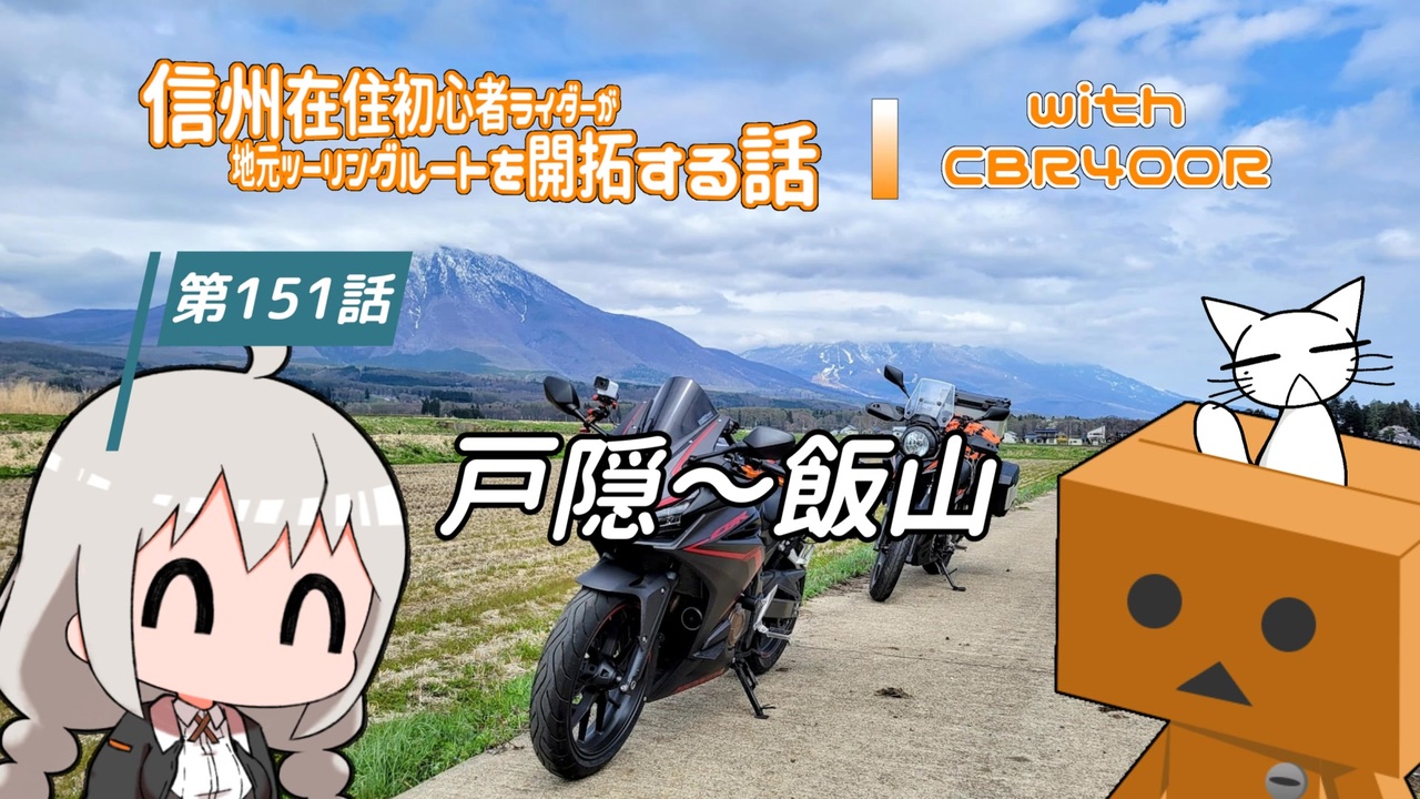 ついに対決の時! 大阪国組長の放つ迫力に気圧されるふぁー! 失敗すれば即消される、、。完全な行動で接待しなければ。しかし、ナビたんから無情にもルート間違いを指摘されるのであった な回です。やっとマスツーです。<br><br>■とりけんさん視点<br> あかりさん達のきまぐれ放浪記57 信州長野侵襲最終日編<br> <a href="https://www.nicovideo.jp/watch/sm43951927" class="watch">sm43951927</a><br><br>■行ったところ<br> 戸隠神社 奥社 随神門<br> <a href="https://maps.app.goo.gl/tsc9HH3TAxfZ6CUU9" target="_blank" rel="noopener nofollow">https://maps.app.goo.gl/tsc9HH3TAxfZ6CUU9</a><br> 飯山市 菜の花公園<br> <a href="https://maps.app.goo.gl/QUN7zg7hpr5z7mMZ8" target="_blank" rel="noopener nofollow">https://maps.app.goo.gl/QUN7zg7hpr5z7mMZ8</a><br> かじか亭<br> <a href="https://maps.app.goo.gl/nfGRQaSkvXyduxwJ9" target="_blank" rel="noopener nofollow">https://maps.app.goo.gl/nfGRQaSkvXyduxwJ9</a><br><br>■大阪国組長<br> とりけん さん <a href="https://www.nicovideo.jp/user/15777782" target="_blank" rel="noopener">user/15777782</a><br> 立ち絵:横沢さわら様(SpecialThanks)<br> <br> ふぁーれん <a href="https://twitter.com/fahren_fuwarin" target="_blank" rel="noopener nofollow">https://twitter.com/fahren_fuwarin</a><br><br> これまでの軌跡(マイマップ) <a href="https://www.google.com/maps/d/edit?mid=19pGGBMRUavXn_s0VEMjKAgSUhufdxcwF&usp=sharing" target="_blank" rel="noopener nofollow">https://www.google.com/maps/d/edit?mid=19pGGBMRUavXn_s0VEMjKAgSUhufdxcwF&usp=sharing</a><br><br><br>■第1話 <a href="https://www.nicovideo.jp/watch/sm37440916" class="watch">sm37440916</a><br>■第150話 <a href="https://www.nicovideo.jp/watch/sm44183660" class="watch">sm44183660</a> ← ここ → ■第152話 <a href="https://www.nicovideo.jp/watch/sm44229961" class="watch">sm44229961</a>