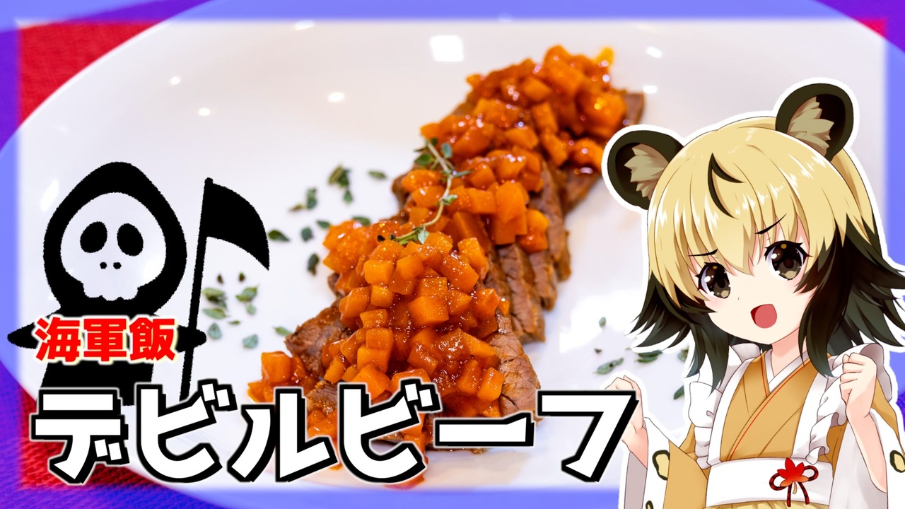 <span style="font-size: 18px;"><strong>久しぶりの海軍飯!</strong></span><br><br>日本の海軍は立ち上げ当初、とある理由から船も料理も他の国を参考にしてました。<br>なので、洋食です!<br>普段洋食を作らないのでうまくできるか心配ですが、<br>月末にはハロウィーンもありますし、それっぽい料理ですよね<br><br><br><br>■材料<br>・牛ブロック 400g<br><br>ソース<br>・牛脂 15g<br>・玉ねぎ 1個<br>・にんじん 1本<br>・ピクルス 2本(あれば、動画は無しです)<br>・小麦粉 小さじ1<br>・トマトペースト 適量<br>・固形スープ 1個<br>・ローリエ<br>・タイム<br><br><br><br>■所要時間<br>作業時間:90分程度<br><br><br>youtube:<a href="https://youtu.be/67A2P86Rp_w" target="_blank" rel="noopener nofollow">https://youtu.be/67A2P86Rp_w</a><br>X(旧:twitter):@lycaon_kitchen<br><br>りおんの和風喫茶:<a href="https://www.nicovideo.jp/series/77190" target="_blank" rel="noopener">series/77190</a><br>おつかれごはん:<a href="https://www.nicovideo.jp/series/155690" target="_blank" rel="noopener">series/155690</a><br>手作り和菓子でちょっとひとやすみしませんか?:<a href="https://www.nicovideo.jp/series/155691" target="_blank" rel="noopener">series/155691</a><br><br>立ち絵:星華 彩二魔 様<br>イラスト:AWD kitchen<br>音源:DOVA-SYNDROME<br>音声:AI.VOICE 紲星あかり+ exVOICE