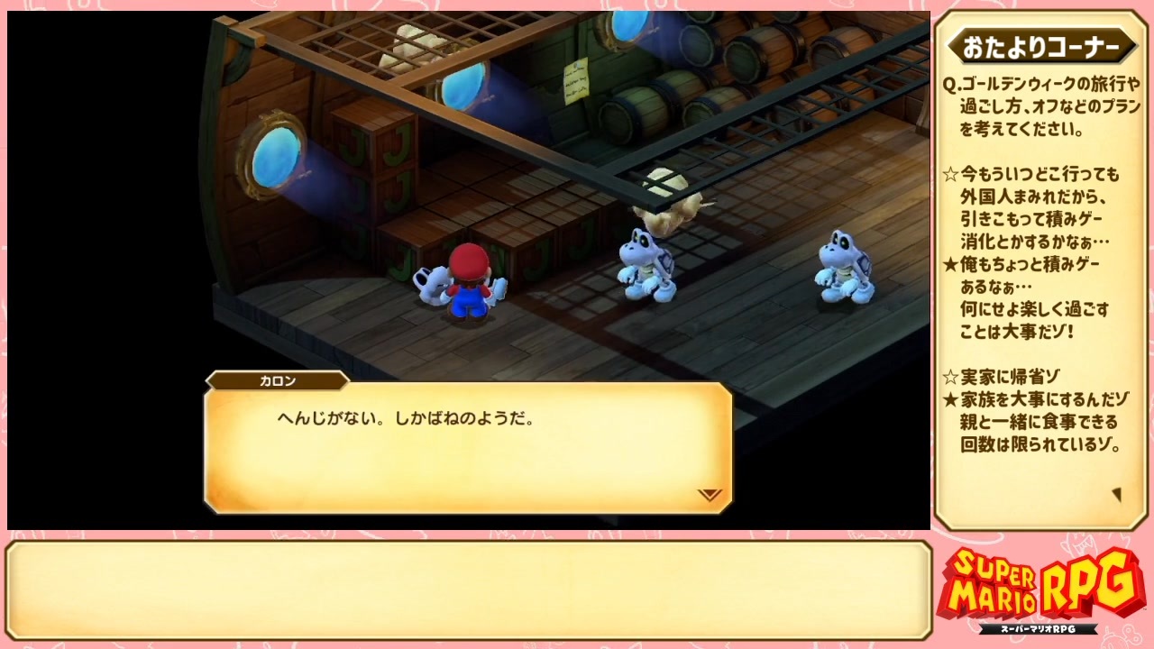 待たせたな。<br><br>前:<a href="https://www.nicovideo.jp/watch/sm43690206" class="watch">sm43690206</a> 次:<a href="https://www.nicovideo.jp/watch/sm44228515" class="watch">sm44228515</a><br><br>前作(戦場のフーガ2):<a href="https://www.nicovideo.jp/mylist/71476588" target="_blank" rel="noopener">mylist/71476588</a><br>スーパーマリナRPG(リメイク):<a href="https://www.nicovideo.jp/mylist/75958372" target="_blank" rel="noopener">mylist/75958372</a><br>スーパーマリナRPG:<a href="https://www.nicovideo.jp/mylist/45350060" target="_blank" rel="noopener">mylist/45350060</a><br>淫夢実況:<a href="https://www.nicovideo.jp/mylist/59677244" target="_blank" rel="noopener">mylist/59677244</a><br>謎の自由帳:<a href="https://onl.bz/gn5wtfq" target="_blank" rel="noopener nofollow">https://onl.bz/gn5wtfq</a><br><br>広告主様紹介(敬称略)<br>naoseen/ttertro/奇人/みずはらいっぺい/刺し身フライ/北キプロス自治国/マロママ/ひばりヶ丘/拓真XsNEXT/銀狼/ララchan/リサリア/明田蒼憲/でふぉ/aka/森野おやつ/しゃちくぼ/SENNOU/yuuuuuuuu/モナー/pokenetsu/林木/サンパチ/ロンド/samchiu_ctss90/むらさめ/もちおじ/This./オーロラベール/うきょ/おじさん/141/おっπ政調会長/広告チケットいらない/たちつて遠野/うま味派/琴刃/らんぺいじ/ななふしさん/ばっちいピーチ/首絞めお姉ちゃん/ソードウマスター/おひたし/ユウ/かまぼこ/お山のたろう/さんこや/蒟蒻/ぢゆしのぱんつ食べたい/Sora/ザウーガ狂/ゲバラ3世/紅牙飛燕<br><br>>やっちまったぜ。 遅れちまったぜ。<br>>ルイージ 結局あの角の人は誰だったんや…<br>>おまどうま! まじで待たせてスマン。<br><br>広告ありがとナス!