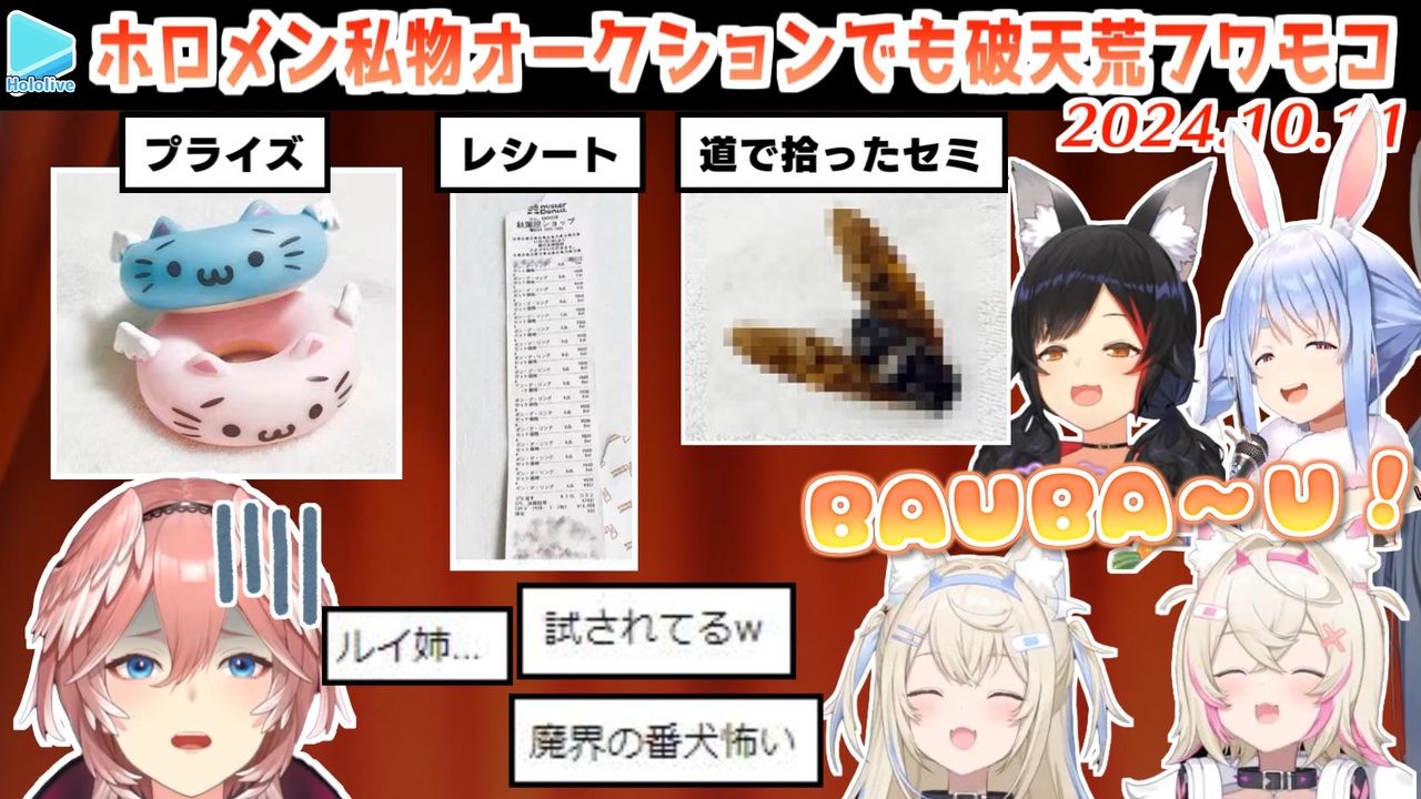 セミで遊ぶイヌそのもの<br><br><a href="#" class="seekTime" data-seekTime="00:00" onclick="seekNicoPlayer('#00:00'); return false;">#00:00</a> フワモコの1品目<br><a href="#" class="seekTime" data-seekTime="03:06" onclick="seekNicoPlayer('#03:06'); return false;">#03:06</a> フワモコの2品目<br><a href="#" class="seekTime" data-seekTime="09:07" onclick="seekNicoPlayer('#09:07'); return false;">#09:07</a> フワモコの3品目<br><a href="#" class="seekTime" data-seekTime="13:06" onclick="seekNicoPlayer('#13:06'); return false;">#13:06</a> ぺこらの出品物<br><br>元動画様はこちら<br>【#ホロメン私物オークション】開催!ホロメンの私物を落札せよ!【ホロライブ/兎田ぺこら/大神ミオ】<br><a href="https://youtu.be/f0YrvdlAcdI" target="_blank" rel="noopener nofollow">https://youtu.be/f0YrvdlAcdI</a><br><br>【初配信】みなさ~~~ん!待ったかね?【鷹嶺ルイ/ホロライブ】<br><a href="https://youtu.be/l0HhUgGR2Cs" target="_blank" rel="noopener nofollow">https://youtu.be/l0HhUgGR2Cs</a><br><br>HOLOLIVE VS BUG<br><a href="https://youtu.be/E07aOfmwA_A" target="_blank" rel="noopener nofollow">https://youtu.be/E07aOfmwA_A</a><br><br /><span style="color: #b7b7b7; font-size: 10px;">ホロライブ切り抜き/なめたけ <a href="https://t.co/CBwJLnYR2c" target="_blank" rel="noopener nofollow">https://t.co/CBwJLnYR2c</a></span>
