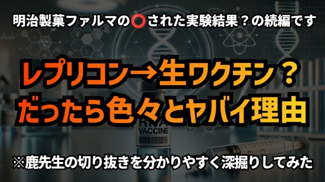 予約投稿失敗してました<br>10/12 23時投稿予定の続きで投稿予定だった動画を先出ししてしまった<br>のですがこれはこれでアリかな?<br>太陽フレアの影響です(笑)<br><br><br>2024.10.10鹿先生<br>訴訟の話になってるけど、明治製菓ファルマ、アークトゥルスは「個体内で細胞間伝染は起きませんでした」という反証実験をやらなきゃダメですよ。<br>やったけど、反証にならなかった。だから隠してるんじゃないの。 <br><a href="https://t.co/22KBUmPz2x" target="_blank" rel="noopener nofollow">https://t.co/22KBUmPz2x</a><br><br><br>チクングニアウイルス<br><a href="https://www.funakoshi.co.jp/contents/71182" target="_blank" rel="noopener nofollow">https://www.funakoshi.co.jp/contents/71182</a><br><br><br>RNAワクチン<br>生ワクチン<br>ワクチン安全性<br>明治製菓ファルマ<br>レプリコンワクチン<br>コスタイベ<br>ワクチン承認基準<br><br>ワクチン副反応<br>免疫反応<br>定期接種<br>鹿先生<br><br><br>1. レプリコン技術について <br>レプリコン技術では、ウイルスの遺伝子を改変して感染性粒子を生成し、生ワクチンの効果を持たせることが可能です。2020年の研究では、VEEVレプリコンが狂犬病ウイルスのGタンパク質と組み合わせて感染性粒子を生成することが示され、2022年の研究ではCHIKVレプリコンが同様にEタンパク質を使って感染性粒子を生成することが報告されています。<br><br>2. 企業による情報隠蔽の疑い <br>鹿先生は、明治製菓ファルマやアークトゥルスが生ワクチンの性質を持つ可能性を隠していると指摘。理由として、生ワクチンと判明した場合、普通のRNAワクチンとしての承認が無効になるリスクがあり、また法的責任を回避するためと考えられます。<br><br>3. 感染リスクと社会的影響 <br>生ワクチンの特性を持つ場合、接種者に健康リスクが生じ、ワクチンに対する信頼が低下する恐れがあります。社会全体で感染拡大防止が難しくなり、混乱を招く可能性もあります。<br><br>4. 訴訟リスクと反証実験の必要性 <br>鹿先生は、企業は反証実験を行い、データを公開して透明性を確保する必要があると主張。これにより、科学的な正当性を示し、ワクチンに対する信頼…<br><br><br>「RNAワクチンが実は生ワクチン⁉ 承認基準違反のリスクと隠された危険性を徹底解説!」<br><br><br />著作権、肖像権に配慮して作成しております。<br><br>◆気になったニュースの台本!?<br>メモ代わりに作った台本をそのままあげてます<br><a href="https://keiichiro8140.hatenablog.com/." target="_blank" rel="noopener nofollow">https://keiichiro8140.hatenablog.com/.</a><br><br><br>ここからはシリーズ紹介<br><br><br>◆ ワクチン解毒・デトックス<br><a href="https://x.gd/fZweg" target="_blank" rel="noopener nofollow">https://x.gd/fZweg</a><br><br>◆ウイリアム・マキス博士のがん治療(イベルメクチン・フェンベンダゾール等)<br><a href="https://x.gd/AtFYS" target="_blank" rel="noopener nofollow">https://x.gd/AtFYS</a><br><br>◆予防接種健康被害救済制度<br><a href="https://x.gd/0xK9x" target="_blank" rel="noopener nofollow">https://x.gd/0xK9x</a><br><br>◆気になったニュース #1501~<br><br>◆ 【ショートver】気になったニュース<br><a href="https://x.gd/7MxXC" target="_blank" rel="noopener nofollow">https://x.gd/7MxXC</a><br><br>◆ 気になったニュース #1001~<br><a href="https://x.gd/Lp8gv" target="_blank" rel="noopener nofollow">https://x.gd/Lp8gv</a><br><br>◆ 気になったニュース #501~<br><a href="https://x.gd/EmbS4" target="_blank" rel="noopener nofollow">https://x.gd/EmbS4</a><br><br>◆ 気になったニュース #1~#500<br><a href="https://x.gd/uPhNb" target="_blank" rel="noopener nofollow">https://x.gd/uPhNb</a><br><br>◆ X(旧Twitter)・テレグラムで気になった情報<br><a href="https://x.gd/YG6FT" target="_blank" rel="noopener nofollow">https://x.gd/YG6FT</a><br><br>◆ 日比谷5万人パレードデ⚪生放送アーカイブ動画<br><a href="https://x.gd/3CHJv" target="_blank" rel="noopener nofollow">https://x.gd/3CHJv</a><br><br>◆日比谷5万人パレード⚪モのマイリスト作ってみました<br><a href="https://nico.ms/mylist/76828848?ref=sp_other" target="_blank" rel="noopener nofollow">https://nico.ms/mylist/76828848?ref=sp_other</a><br><br>◆3.30 令和の百姓⚪⚪<br><a href="https://www.nicovideo.jp/series/511791?ref=garage_share_other" target="_blank" rel="noopener nofollow">https://www.nicovideo.jp/series/511791?ref=garage_share_other</a><br><br>◆ 及川幸久さんの【XNEWS】シリーズ<br><a href="https://x.gd/3k78K" target="_blank" rel="noopener nofollow">https://x.gd/3k78K</a><br><br>◆これまでの動画<a href="https://x.gd/sPXoJ" target="_blank" rel="noopener nofollow">https://x.gd/sPXoJ</a><br><br>◆もしも(BAN)の時のためのマイリンク集<a href="https://lit.link/K-16_News44" target="_blank" rel="noopener nofollow">https://lit.link/K-16_News44</a><br><br>