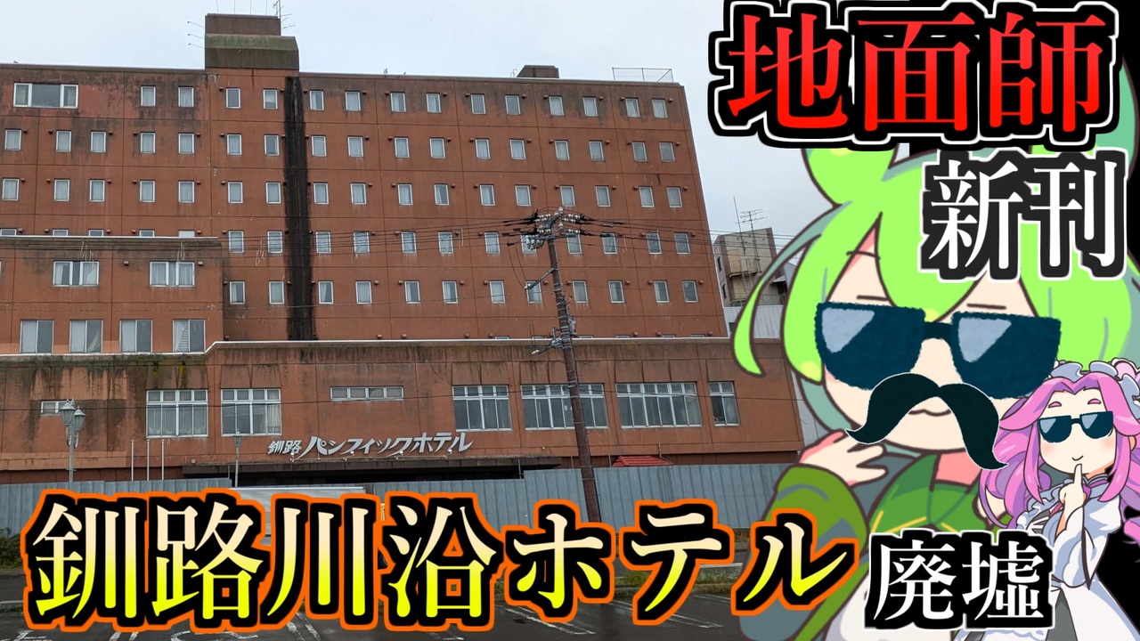 釧路のずんだもんによる 釧路の廃墟スポット探索です<br><br> 今回訪れたのは釧路川沿いに放置されたホテル廃墟<br> 現在話題のドラマ「地面師たち」の原作小説の表紙にも 大きく載っている建物です <br><br>かつては皇太子夫妻がご宿泊されたこともありました<br><br><br>●音声ソフト<br>VOICEVOX:ずんだもん<br>VOICEVOX:四国めたん<br><br><br>●X<br>@acerola_vitamin<br>●ブルースカイ<br>@pighimarimo.bsky.social<br /><span style="color: #ff0000; font-size: 24px;"><strong>釧路を紹介するブログ始めました</strong></span>:<a href="https://946de2100.com" target="_blank" rel="noopener nofollow">https://946de2100.com</a><br><br><span style="color: #ff0000; font-size: 16px;"><strong>●おススメ動画:</strong></span><span style="color: #ff0000; font-size: 18px;"><strong>【歴史解説】かつて 釧路を支配していたのは佐賀だった ~釧路元町の始まりと佐野孫右衛門の盛衰~</strong></span><br><br><a href="https://www.nicovideo.jp/watch/sm44267722" class="watch">sm44267722</a><br><br><br><span style="color: #ff0000; font-size: 18px;"><strong>●YouTubeチャンネルも登録よろしくお願いします</strong></span><br><strong>釧路チャンネル <a href="https://www.youtube.com/@znd-kaisetu" target="_blank" rel="noopener nofollow">https://www.youtube.com/@znd-kaisetu</a></strong><br>恋結シラリカソロチャンネル <a href="https://www.youtube.com/@enmusubi-shirarika" target="_blank" rel="noopener nofollow">https://www.youtube.com/@enmusubi-shirarika</a><br><br><br>ほしいものリスト <a href="https://www.amazon.jp/hz/wishlist/ls/2OUUB1JQSRUWG?ref_=wl_share" target="_blank" rel="noopener nofollow">https://www.amazon.jp/hz/wishlist/ls/2OUUB1JQSRUWG?ref_=wl_share</a><br>クリエイターサポート<a href="https://creator-support.nicovideo.jp/registration/116665199" target="_blank" rel="noopener nofollow">https://creator-support.nicovideo.jp/registration/116665199</a>
