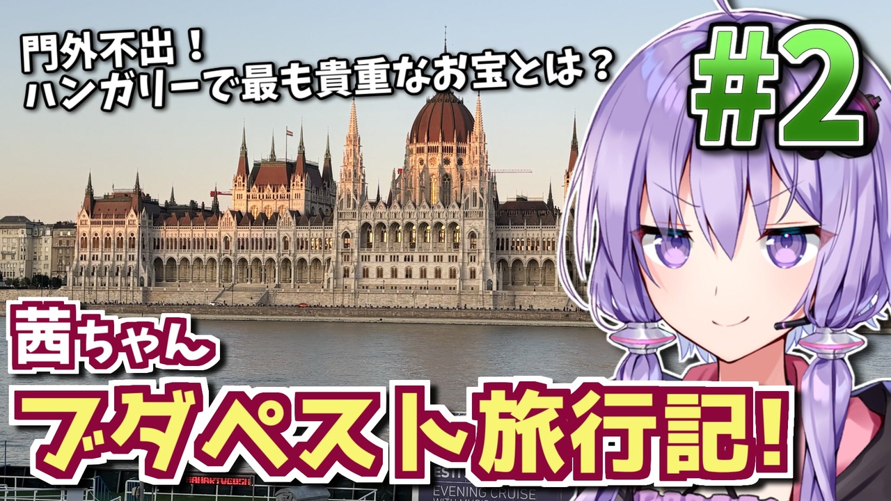 個性的で美しい街並みを擁し、深い歴史に彩られた中欧の国々。<br>そんな中欧をVOICEROIDの琴葉茜と解説役・結月ゆかりが歴史をテーマに旅行します!<br>今回はブダペスト編の第二回・ペシュト編!ハンガリーで最も価値ある国宝・聖イシュトヴァーンの王冠を見学します!<br><br>前 : (<a href="https://www.nicovideo.jp/watch/sm44190375" class="watch">sm44190375</a>) <-> 次 : (<a href="https://www.nicovideo.jp/watch/sm44216181" class="watch">sm44216181</a>)<br>このシリーズのリンク: <a href="https://www.nicovideo.jp/series/486339" target="_blank" rel="noopener">series/486339</a><br><br>【旅程概要】<br>・出国 (日本→ウィーン) <br>・オーストリア・ウィーン編 <br>・チェコ・プラハ編<br>・ハンガリー・ブダペスト編 ← イマココ<br>・イタリア・ヴェネツィア編<br><br><br>※ 歴史や街の解説多めの海外旅行動画となりますがご了承ください。<br />HoI4プレイ講座 → (<a href="https://www.nicovideo.jp/mylist/62136132" target="_blank" rel="noopener">mylist/62136132</a>)<br>EU4プレイ講座→(<a href="https://www.nicovideo.jp/mylist/61049948" target="_blank" rel="noopener">mylist/61049948</a>)<br>CK3プレイ講座→(<a href="https://www.nicovideo.jp/series/191974" target="_blank" rel="noopener">series/191974</a>)<br>Stellarisプレイ講座→(<a href="https://www.nicovideo.jp/series/263583" target="_blank" rel="noopener">series/263583</a>)<br>Vic3プレイ講座→(<a href="https://www.nicovideo.jp/series/364690" target="_blank" rel="noopener">series/364690</a>)<br>赤いシムシティ実況動画 → (<a href="https://www.nicovideo.jp/series/8074" target="_blank" rel="noopener">series/8074</a>)<br>太閤立志伝5 DX実況動画→ (<a href="https://www.nicovideo.jp/series/323444" target="_blank" rel="noopener">series/323444</a>)<br>信長の野望 小田家プレイ動画 → (<a href="https://www.nicovideo.jp/series/353641" target="_blank" rel="noopener">series/353641</a>)<br>紲星あかりF1参戦記→(<a href="https://www.nicovideo.jp/series/222744" target="_blank" rel="noopener">series/222744</a>)<br>あかねとあかりのソビエト国境警備隊!→ (<a href="https://www.nicovideo.jp/series/394983" target="_blank" rel="noopener">series/394983</a>)<br>Cities: Skylines2都市開発プレイ動画 → (<a href="https://www.nicovideo.jp/series/436779" target="_blank" rel="noopener">series/436779</a>)<br>Manor Lords村作りプレイ動画 → (<a href="https://www.nicovideo.jp/series/468306" target="_blank" rel="noopener">series/468306</a>)<br>全動画投稿リスト (<a href="https://www.nicovideo.jp/user/77964272" target="_blank" rel="noopener">user/77964272</a>)<br><br><a target="_blank" href="https://qa.nicovideo.jp/faq/show/19424?site_domain=default" style="font-size: 13px;color: #657586; text-decoration: underline; line-height: 1.4">この動画は投稿者によって修正されました</a>