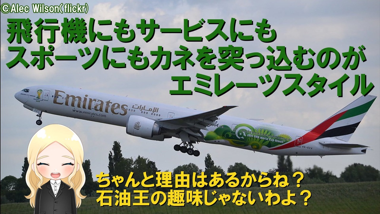 大変お待たせしました。例によってエミレーツさんが規格外過ぎて話まとめるのに時間がかかりました。 解説編の前編は飛行機、サービス、スポンサーシップ面から見たエミレーツ航空のビジネス戦略を見ていきます。一見すると単なる石油王の道楽と思われがちな金遣いの荒さですが、ちゃんと理由があります。色々と規格外過ぎて脳みそバグりそうですがw 後編ではアライアンス戦略や強運伝説、日本との関係や将来展望などを紹介する予定です。<br><br>歴史編がまだの方はこちら→<a href="https://www.nicovideo.jp/watch/sm44056908" class="watch">sm44056908</a> 解説編後編→<a href="https://www.nicovideo.jp/watch/sm44479104" class="watch">sm44479104</a><br /><span style="color: #000000; font-size: 14px;">迷航空会社列伝</span><span style="color: #006699; font-size: 14px;"><a href="https://www.nicovideo.jp/mylist/24098760" target="_blank" rel="noopener">mylist/24098760</a></span><span style="color: #000000; font-size: 14px;"> 迷列車北陸編</span><span style="color: #006699; font-size: 14px;"><a href="https://www.nicovideo.jp/mylist/19084652" target="_blank" rel="noopener">mylist/19084652</a> </span><span style="color: #000000; font-size: 14px;">東海道交通戦争</span><span style="color: #006699; font-size: 14px;"><a href="https://www.nicovideo.jp/mylist/57958388" target="_blank" rel="noopener">mylist/57958388</a></span><span style="color: #000000; font-size: 14px;"> 交通機関の栄枯盛衰 </span><a href="https://www.nicovideo.jp/mylist/66898301" target="_blank" rel="noopener">mylist/66898301</a><br><span style="color: #000000; font-size: 14px;">ブログ→</span><span style="color: #006699; font-size: 14px;"><a href="http://www.meihokuriku-alps.com" target="_blank" rel="noopener nofollow">http://www.meihokuriku-alps.com</a></span><br>note→<a href="https://note.com/meihokuriku" target="_blank" rel="noopener nofollow">https://note.com/meihokuriku</a><br><span style="color: #000000; font-size: 14px;">使用BGM<br>甘茶の音楽工房様 </span><span style="color: #006699; font-size: 14px;"><a href="http://amachamusic.chagasi.com/index.html" target="_blank" rel="noopener nofollow">http://amachamusic.chagasi.com/index.html</a></span><br><span style="color: #000000; font-size: 14px;">魔王魂様 </span><span style="color: #006699; font-size: 14px;"><a href="https://maoudamashii.jokersounds.com/list/bgm5.html" target="_blank" rel="noopener nofollow">https://maoudamashii.jokersounds.com/list/bgm5.html</a></span>