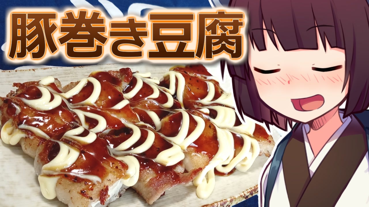 <strong><材料(2人分)></strong><br>島豆腐(もしくは木綿豆腐):約210g<br>豚バラスライス:4枚(約120g)<br>小麦粉:適量<br>粗挽き胡椒:適量<br>お好みソース<br>マヨネーズ<br><br><strong><作り方(簡易版)></strong><br>・豆腐を厚さ1cm、4cm角くらいに切って水気を拭き取る。<br>・豚バラスライスを半分の長さに切り、豆腐に巻き付ける。<br>・両面に小麦粉を薄くまぶす。<br>・フライパンに少量の油を引き、中火で両面焼く。<br>・お好みソースとマヨネーズかける。<br>・削り節や青海苔をかけても良い。