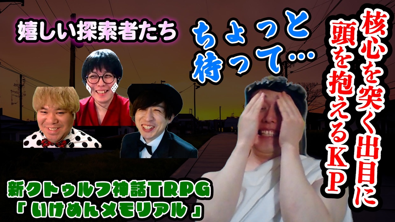 <strong>ちょっと出目良すぎじゃない?ずっと。</strong><br><br>▼KP▼<br>倭寇(わこう) → 神<br>▼プレイヤー▼<br>こーすけ → 外村 広司 <a href="https://iachara.com/view/9073934" target="_blank" rel="noopener nofollow">https://iachara.com/view/9073934</a><br>マサ → 種埼 雅治 <a href="https://iachara.com/view/9090561" target="_blank" rel="noopener nofollow">https://iachara.com/view/9090561</a><br>せらみかる → 表裏 世文 <a href="https://iachara.com/view/9077642" target="_blank" rel="noopener nofollow">https://iachara.com/view/9077642</a><br><br>※倭寇作のオリジナルシナリオです<br>※7版&ハウスルール多々ありなのでご注意ください<br><br><strong>【次part】下のシリーズ欄から<br>【フルver(有料・無編集)】<a href="https://www.nicovideo.jp/watch/so44070782" class="watch">so44070782</a><br>【動画まとめ】 <a href="https://www.nicovideo.jp/mylist/32090282" target="_blank" rel="noopener">mylist/32090282</a></strong><br><br><span style="color: #9900ff;"><strong>▼X▼ </strong></span><br>【倭寇】 @wakou2525<br>【こーすけ)】 @kosuke_saiore<br>【マサ】 @masa1225kami<br>【せらみかる】 @seramikarutitan<br><br>【新クトゥルフ神話TRPG ルールブック】---------------------------------------------------<br>本作は、「 株式会社アークライト 」及び「株式会社KADOKAWA」が権利を有する『新クトゥルフ神話TRPG』の二次創作物です。<br><br>Call of Cthulhu is copyright ©1981, 2015, 2019 by Chaosium Inc. ;all rights reserved. Arranged by Arclight Inc.<br>Call of Cthulhu is a registered trademark of Chaosium Inc.<br>PUBLISHED BY KADOKAWA CORPORATION 「新クトゥルフ神話TRPG ルールブック」<br>------------------------------------------------------------------------------------------------