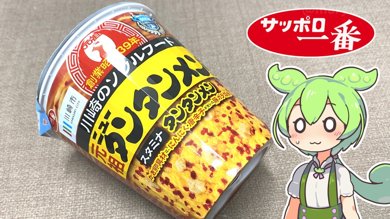 ビッグに行ったらこんなカップ麺があったので買ってみました。 <br>フタの種類は全9種類だそうです。<br>(訂正)00:39 2000年9月とありますが2020年9月月発売です。<br><br><br>【関連動画】<br> セブンプレミアムの「蒙古タンメン中本(240円)」<br><a href="https://www.nicovideo.jp/watch/sm44025241" target="_blank" rel="noopener nofollow">https://www.nicovideo.jp/watch/sm44025241</a><br><br>【参考】 <br>サッポロ一番 ご当地熱愛麺 元祖ニュータンタンメン本舗監修 <br>タンタンメン タテビッグ<br> <a href="https://www.sanyofoods.co.jp/products/8201/" target="_blank" rel="noopener nofollow">https://www.sanyofoods.co.jp/products/8201/</a> <br>元祖ニュータンタンメン本舗<br> <a href="https://new-tantan.jp/" target="_blank" rel="noopener nofollow">https://new-tantan.jp/</a> <br>「ニュータンタンメンカップ麺コラボパッケージ」<br>発売のお知ら 2024.03.12(川崎フロンターレ)<br> <a href="https://www.frontale.co.jp/info/2024/0312_3.html" target="_blank" rel="noopener nofollow">https://www.frontale.co.jp/info/2024/0312_3.html</a><br> 塩分計(ドリテック) <br><a href="https://dretec.co.jp/kitchen_goods/salt_meter" target="_blank" rel="noopener nofollow">https://dretec.co.jp/kitchen_goods/salt_meter</a><br><br> 【使用した素材】(※敬称略) <br>(合成音声)VOICEVOX/ずんだもん/四国めたん<br> <a href="https://voicevox.hiroshiba.jp/" target="_blank" rel="noopener nofollow">https://voicevox.hiroshiba.jp/</a> <br>(立ち絵)坂本アヒル <br>i<a href="https://seiga.nicovideo.jp/seiga/m10788496/im10791276" target="_blank" rel="noopener nofollow">https://seiga.nicovideo.jp/seiga/m10788496/im10791276</a> <br>(楽曲)甘茶の音楽工房/「日々是好日」「残業戦士」<br> <a href="https://amachamusic.chagasi.com" target="_blank" rel="noopener nofollow">https://amachamusic.chagasi.com</a>