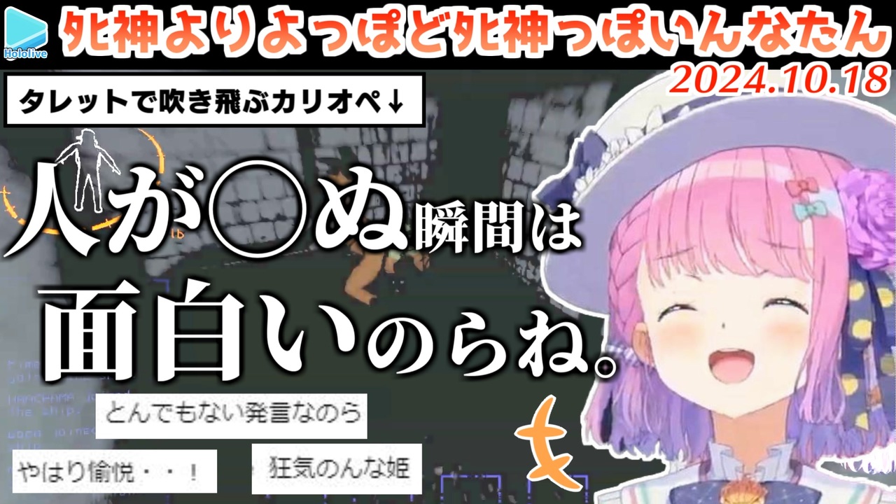 カリオペ視点がないのが惜しくもありおいしかった配信でした<br><br><a href="#" class="seekTime" data-seekTime="00:00" onclick="seekNicoPlayer('#00:00'); return false;">#00:00</a> タレット<br><a href="#" class="seekTime" data-seekTime="00:59" onclick="seekNicoPlayer('#00:59'); return false;">#00:59</a> 地雷<br><a href="#" class="seekTime" data-seekTime="03:46" onclick="seekNicoPlayer('#03:46'); return false;">#03:46</a> 触手<br><a href="#" class="seekTime" data-seekTime="06:10" onclick="seekNicoPlayer('#06:10'); return false;">#06:10</a> 置き去り<br><a href="#" class="seekTime" data-seekTime="07:41" onclick="seekNicoPlayer('#07:41'); return false;">#07:41</a> 虫<br><a href="#" class="seekTime" data-seekTime="08:26" onclick="seekNicoPlayer('#08:26'); return false;">#08:26</a> アメリカンジョーダン<br><a href="#" class="seekTime" data-seekTime="10:19" onclick="seekNicoPlayer('#10:19'); return false;">#10:19</a> 串刺し<br><br>元動画様はこちら<br>【 リーサルカンパニー 】珍しいメンバーで遊ぶのら!!! - Lethal Company -【姫森ルーナ/ホロライブ】<br><a href="https://youtu.be/9f_XVr3wQR8" target="_blank" rel="noopener nofollow">https://youtu.be/9f_XVr3wQR8</a><br><br>【Lethal Company】ウチら4人がいれば最強~~~!怖いもんなし!【赤井はあと/ホロライブ】<br><a href="https://youtu.be/YuXCutGlIPI" target="_blank" rel="noopener nofollow">https://youtu.be/YuXCutGlIPI</a><br><br>【Lethal Company】珍しいメンツと久々のカンパニー【hololive ID 2nd Generation | Anya Melfissa】<br><a href="https://youtu.be/xHHBr_m0FNI" target="_blank" rel="noopener nofollow">https://youtu.be/xHHBr_m0FNI</a><br><br>Akaihaato Ch. 赤井はあと <a href="https://t.co/1y1AhHTbnF" target="_blank" rel="noopener nofollow">https://t.co/1y1AhHTbnF</a><br>Luna Ch. 姫森ルーナ <a href="https://t.co/65lIXbf9zT" target="_blank" rel="noopener nofollow">https://t.co/65lIXbf9zT</a><br>Mori Calliope Ch. hololive-EN <a href="https://t.co/ksP4woO8gh" target="_blank" rel="noopener nofollow">https://t.co/ksP4woO8gh</a><br>Anya Melfissa Ch. hololive-ID <a href="https://t.co/3KFAYRiHSE" target="_blank" rel="noopener nofollow">https://t.co/3KFAYRiHSE</a><br /><span style="color: #b7b7b7; font-size: 10px;">ホロライブ切り抜き/なめたけ <a href="https://t.co/CBwJLnYR2c" target="_blank" rel="noopener nofollow">https://t.co/CBwJLnYR2c</a></span>