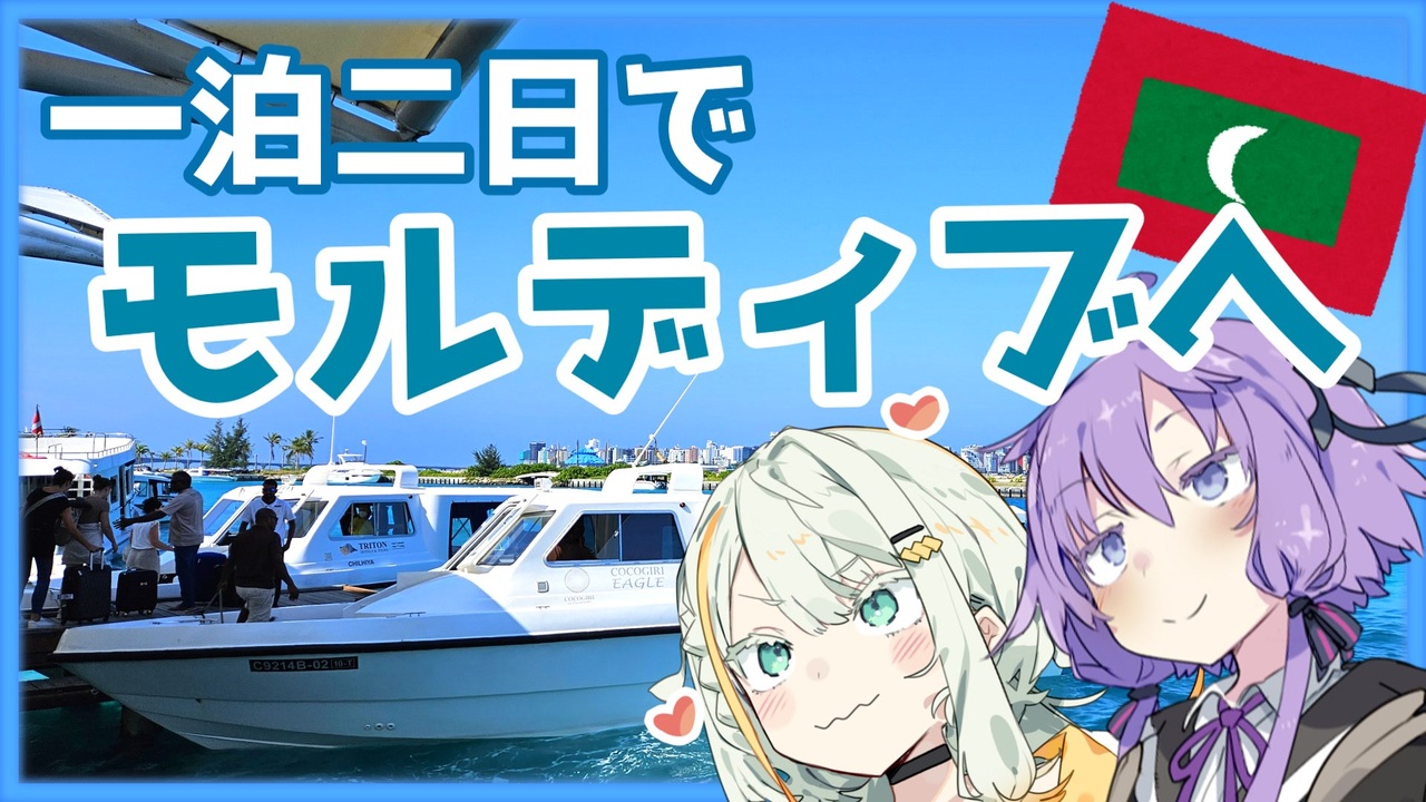 <span style="font-size: 24px;"><strong>モルディブに一泊二日は短すぎるということで、<br>税関で別室送りされて軽く尋問されていました(実話)</strong></span><br><br>★クレジット★<br>■編集ツール<br>ツール:ゆっくりムービーメーカー4<br><br>■音声合成ソフト<br>A.I.VOICE 結月ゆかり<br>A.I.VOICE 紡乃世詞音<br><br>■立ち絵<br>結月ゆかり かれい様 <a href="https://seiga.nicovideo.jp/seiga/im6232152" target="_blank" rel="noopener">im6232152</a><br>紡乃世詞音 かれい様 A.I.VOICE本の特典より<br>紡乃世詞音蕾 ぴぴ様 <a href="https://seiga.nicovideo.jp/seiga/im11059365" target="_blank" rel="noopener">im11059365</a><br><br>■お借りしたもの&参考<br>・Google Earth & Map<br>・Wikipedia<br>・積乱雲 Safu様:<a href="https://dova-s.jp/bgm/play18906.html" target="_blank" rel="noopener nofollow">https://dova-s.jp/bgm/play18906.html</a><br>・♪遠くの景色 <a href="https://bgmer.net/music/294" target="_blank" rel="noopener nofollow">https://bgmer.net/music/294</a><br>・♪Arrival <a href="https://ryu110.com/arrival/" target="_blank" rel="noopener nofollow">https://ryu110.com/arrival/</a><br>・様々な効果音 効果音Lab様 <a href="https://soundeffect-lab.info/" target="_blank" rel="noopener nofollow">https://soundeffect-lab.info/</a><br><br>■Special thanks<br>素材をお借りしたニコニコモンズの皆様<br><a href="https://commons.nicovideo.jp/works/nc266508" target="_blank" rel="noopener">nc266508</a><br><a href="https://commons.nicovideo.jp/works/nc277067" target="_blank" rel="noopener">nc277067</a><br><a href="https://commons.nicovideo.jp/works/nc236011" target="_blank" rel="noopener">nc236011</a>