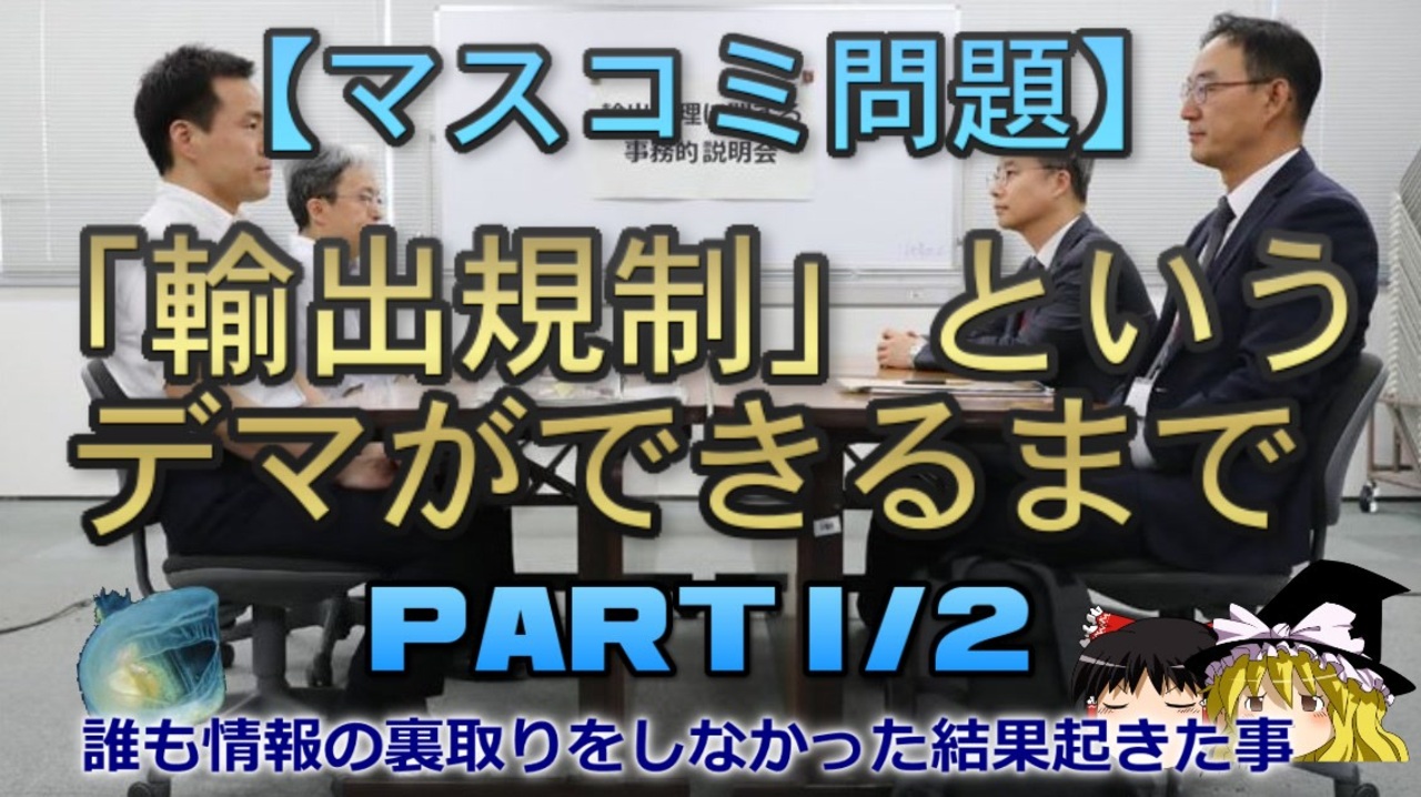 さて、本日はタイトルにもあるように、徴用工裁判に対する報復措置というデマが、どのようにして出来上がっていったかについて、2パートに分けて扱っていきます。<br>最古のどようびの化石はペルム紀<br><br>元記事<br>「徴用工裁判の報復」というデマができるまで<br><a href="http://ooguchib.blog.fc2.com/blog-entry-513.html" target="_blank" rel="noopener nofollow">http://ooguchib.blog.fc2.com/blog-entry-513.html</a><br><br>本日のブログ記事<br><a href="https://oogchib.hateblo.jp/entry/2024/10/20/210000" target="_blank" rel="noopener nofollow">https://oogchib.hateblo.jp/entry/2024/10/20/210000</a><br><br>注意<br>・この動画は「マスコミ問題」を扱っています<br><br>・「マスコミ問題」であり右派・左派等の陣営論争は本題ではありません<br><br>・「特定の国との特別な関係」は問題の枝葉です、主問題は業界の体質です<br><br>・自身の常識が相手にとっても常識とは限りません、「他者がそれを見たらど<br>う思うか」という客観性を常に持ちましょう。<br><br>・日常生活で注意する程度には言動に注意を心がけてください<br><br>・リクエストは原則受け付けていません<br><br>・引用ソースへのリンクが同時掲載のブログにあります<br><br>・毎週日曜日更新<br><br><br><br>引用ソースと動画のテキストをブログ日韓問題(初心者向け)のほうへ掲載しています。<br><br>日韓問題(初心者向け)<br><a href="https://oogchib.hateblo.jp/" target="_blank" rel="noopener nofollow">https://oogchib.hateblo.jp/</a><br><br>暇つぶしにどうぞ<br><a href="http://ooguchib.blog.fc2.com/" target="_blank" rel="noopener nofollow">http://ooguchib.blog.fc2.com/</a> <br><br>X(旧twitter) @ooguchib<br><a href="https://x.com/ooguchib" target="_blank" rel="noopener nofollow">https://x.com/ooguchib</a><br><br><br>前 <a href="https://www.nicovideo.jp/watch/sm44208313" class="watch">sm44208313</a> <a href="https://www.nicovideo.jp/mylist/59069876" target="_blank" rel="noopener">mylist/59069876</a> 次 <a href="https://www.nicovideo.jp/watch/sm44256859" class="watch">sm44256859</a><br><br>番外編マイリスト<br><a href="https://www.nicovideo.jp/mylist/62992608" target="_blank" rel="noopener">mylist/62992608</a><br><br>YouTube版<br><a href="https://youtu.be/-iugkvF1IAk" target="_blank" rel="noopener nofollow">https://youtu.be/-iugkvF1IAk</a><br>