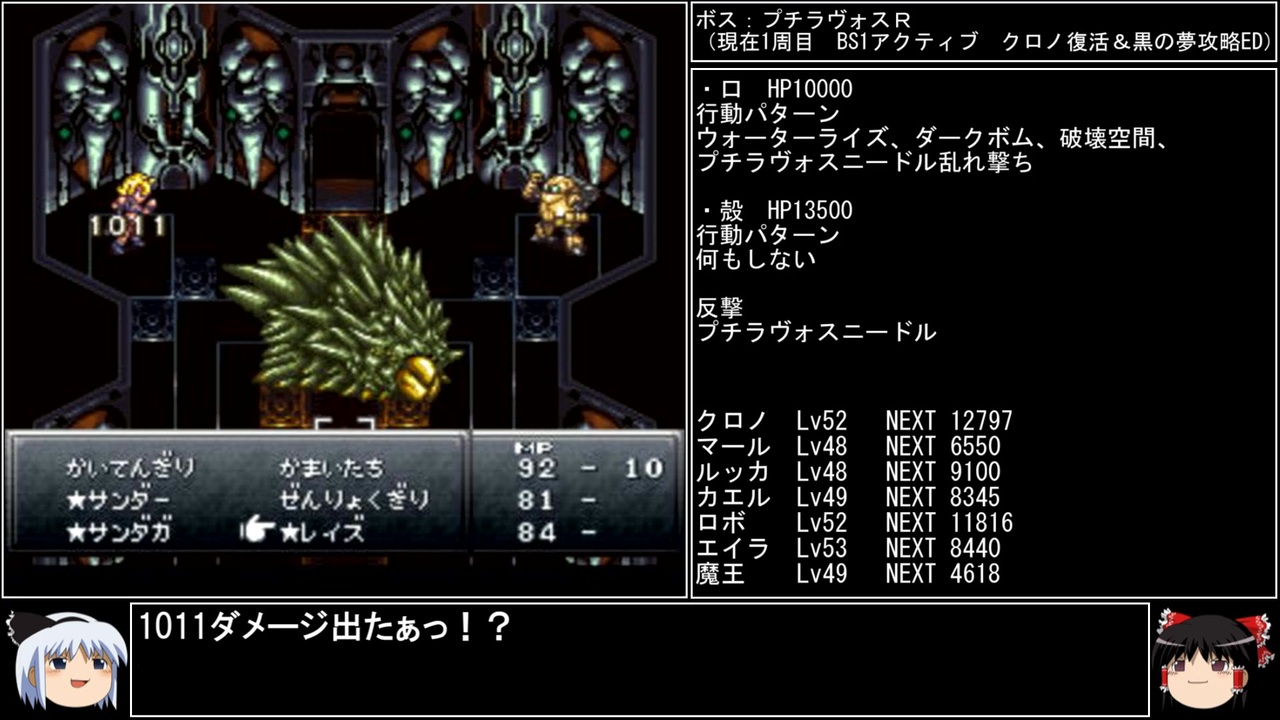 ついに一周目の解禁物が全て集合。<br>経験値分配もほぼ終わり、いよいよ次回からが本番です!<br><br>マニアしか知らない豆知識 ハヤブサぎり編→<a href="https://www.nicovideo.jp/watch/sm44222679" class="watch">sm44222679</a><br>前→<a href="https://www.nicovideo.jp/watch/sm44202505" class="watch">sm44202505</a><br>次→<a href="https://www.nicovideo.jp/watch/sm44253526" class="watch">sm44253526</a><br><br>YouTube版→<a href="https://youtu.be/YnlKlRo-CXQ" target="_blank" rel="noopener nofollow">https://youtu.be/YnlKlRo-CXQ</a><br><br>縛りルール<br>①一度使った武器・防具・アクセサリー・道具・技・連携は<br> 次周回以降使用禁止(売却も解禁扱い)<br><br>②一度戦った敵シンボルとの再戦禁止。<br><br>③初戦闘の敵からの逃走禁止。<br><br>④裏技、バグ技、状況再現禁止。<br><br>⑤BS1アクティブからBS8ウェイトまで<br> 全てのバトルスピードとバトルモードで攻略する。<br><br>⑥各周回において見る予定のED条件を<br> 満たした段階で即ラヴォスと戦いに行く。<br><br>※ネタバレ注意です<br><br>このページ、動画で利用している弊社または弊社のライセンサーが権利を有する著作物の転載・配布は禁止いたします。<br>© 1995, 2018 SQUARE ENIX<br>Illustration: © 1995 BIRD STUDIO / SHUEISHA<br>Story and Screenplay: © 1995, 2008 ARMOR PROJECT / SQUARE ENIX<br><br>AquesTalk2ライセンスID:AQTK2WINUSR23122185<br /><br><br>❤いいねを押していただけるとモチベーションと投稿速度が上がるので宜しくお願い致します!<br><br>作者ツイッター→ <a href="https://twitter.com/nig0117" target="_blank" rel="noopener nofollow">https://twitter.com/nig0117</a><br>PIXIV FANBOX→ <a href="https://sutanokeiji.fanbox.cc/" target="_blank" rel="noopener nofollow">https://sutanokeiji.fanbox.cc/</a><br><br>( 以前はWEB小説書いてました→ <a href="https://kakuyomu.jp/works/1177354054884910267" target="_blank" rel="noopener nofollow">https://kakuyomu.jp/works/1177354054884910267</a> )