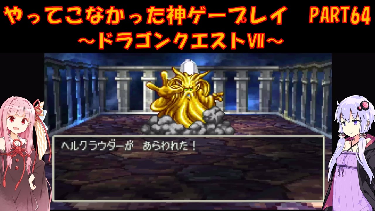 PS版 ドラゴンクエストⅦをプレイ<br>ゆかりさんはメジャーじゃないゲームをやる俺カッケー族だったのでドラクエをやったことがありませんでした(DSのⅤ以外)<br><br>ゆ:リベンジじゃい!<br>茜:レベル上げ部分はカットです<br><br>PART1:<a href="https://www.nicovideo.jp/watch/sm43851863" target="_blank" rel="noopener nofollow">https://www.nicovideo.jp/watch/sm43851863</a><br><br>各DQシリーズ第1回リンク<br>DQ1 PART1:<a href="https://www.nicovideo.jp/watch/sm41819145" target="_blank" rel="noopener nofollow">https://www.nicovideo.jp/watch/sm41819145</a><br>DQ2 PART1:<a href="https://www.nicovideo.jp/watch/sm41895278" target="_blank" rel="noopener nofollow">https://www.nicovideo.jp/watch/sm41895278</a><br>DQ3 PART1:<a href="https://www.nicovideo.jp/watch/sm42034398" target="_blank" rel="noopener nofollow">https://www.nicovideo.jp/watch/sm42034398</a><br>DQ4 PART1:<a href="https://www.nicovideo.jp/watch/sm42520974" target="_blank" rel="noopener nofollow">https://www.nicovideo.jp/watch/sm42520974</a><br>DQ5 PART1:<a href="https://www.nicovideo.jp/watch/sm42848575" target="_blank" rel="noopener nofollow">https://www.nicovideo.jp/watch/sm42848575</a><br>DQ6 PART1:<a href="https://www.nicovideo.jp/watch/sm43080264" target="_blank" rel="noopener nofollow">https://www.nicovideo.jp/watch/sm43080264</a><br>DQM1 PART1:<a href="https://www.nicovideo.jp/watch/sm43525709" target="_blank" rel="noopener nofollow">https://www.nicovideo.jp/watch/sm43525709</a><br><br>動画内で使用させていただいた素材<br>【イラスト】<br>結月ゆかり→ペテン師様:<a href="https://seiga.nicovideo.jp/seiga/im5494168" target="_blank" rel="noopener nofollow">https://seiga.nicovideo.jp/seiga/im5494168</a><br>琴葉茜→ユメのオワリ様:<a href="https://seiga.nicovideo.jp/seiga/im10706241" target="_blank" rel="noopener nofollow">https://seiga.nicovideo.jp/seiga/im10706241</a><br><br>【音声】<br>A.I.Voice:琴葉茜<br><a href="https://aivoice.jp/product/kotonoha/" target="_blank" rel="noopener nofollow">https://aivoice.jp/product/kotonoha/</a><br><br>A.I.Voice:結月ゆかり<br><a href="https://aivoice.jp/product/yukari/" target="_blank" rel="noopener nofollow">https://aivoice.jp/product/yukari/</a><br><br>【その他素材】<br>効果音ラボ様:<a href="https://soundeffect-lab.info/" target="_blank" rel="noopener nofollow">https://soundeffect-lab.info/</a><br>いらすとや様:<a href="https://www.irasutoya.com/" target="_blank" rel="noopener nofollow">https://www.irasutoya.com/</a><br>等<br><br>この動画で利用している株式会社スクウェア・エニックスを代表とする共同著作者が権利を所有する著作物及びスギヤマ工房有限会社が権利を所有する楽曲の転載・配布は禁止いたします。<br>© 2000 ARMOR PROJECT/BIRD STUDIO/HEART BEAT/ARTEPIAZZA/SQUARE ENIX All Rights Reserved.<br>© SUGIYAMA KOBO