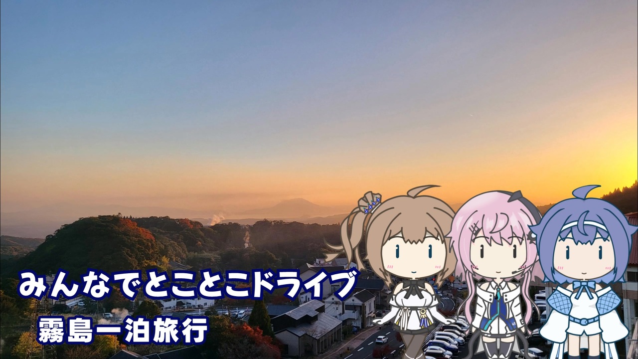 つづみちゃんが、ささらちゃんとフィーちゃんの三人で霧島まで一泊旅行に行ってきました。<br> 久しぶりの一泊旅行、どうなるのでしょうか。<br><br><strong>■霧島国際ホテル</strong><br> 〒899-6603 鹿児島県霧島市牧園町高千穂 3930番地12<br> <a href="https://maps.app.goo.gl/HCWjxeN4CKfoyJ1h9" target="_blank" rel="noopener nofollow">https://maps.app.goo.gl/HCWjxeN4CKfoyJ1h9</a><br> クーポンで少し安くなっていたので、ここにしました。以前前を通ったりしていたのですが、泊まることになるとは思いませんでしたね。<br> 老舗ホテルですが、リニューアルをしている最中で、中はとても綺麗でした。<br> 温泉も広くて綺麗でしたし、設備も充実していました。<br> 何よりもバイキングのご飯がとても美味しかったです。<br><br>■BGM 【ほのぼの】Tea Party【ループ】 <a href="https://commons.nicovideo.jp/works/nc152918" target="_blank" rel="noopener">nc152918</a><br>■立ち絵 ゆるいすずきつづみ <a href="https://seiga.nicovideo.jp/seiga/im11363057" target="_blank" rel="noopener">im11363057</a>、ゆるいさとうささら <a href="https://seiga.nicovideo.jp/seiga/im11366206" target="_blank" rel="noopener">im11366206</a>、ゆるいフィーちゃん <a href="https://seiga.nicovideo.jp/seiga/im11486545" target="_blank" rel="noopener">im11486545</a><br>■音声 CeVIO すずきつづみ、さとうささら、©︎U-Stella Inc. フィーちゃん CV:今井麻夏<br><br />■車載動画 <a href="https://www.nicovideo.jp/series/5592" target="_blank" rel="noopener">series/5592</a><br> 番外編 <a href="https://www.nicovideo.jp/series/403721" target="_blank" rel="noopener">series/403721</a><br>■ユーザページ <a href="https://www.nicovideo.jp/user/347413" target="_blank" rel="noopener">user/347413</a>