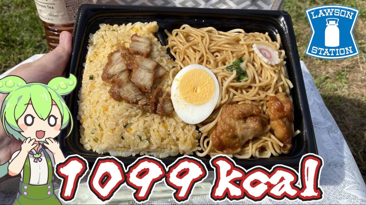 ローソンの、高カロリー・高塩分のチャーハン&焼きラーメンのお弁当です。<br> 行楽の秋にいかがですか?<br>※訂正 00:53 <br>塩分目標量を男性6.5、女性7.5g未満と言っていますが<br>正しくは男性7.5、女性6.5g未満です。<br><br><br>【前回のローソン動画】<br>ローソンの生パスタ「ソースたっぷり ボロネーゼ(555円)」<br><a href="https://www.nicovideo.jp/watch/sm44158521" target="_blank" rel="noopener nofollow">https://www.nicovideo.jp/watch/sm44158521</a><br><br>【参考】 <br>炒飯&焼ラーメン(ローソン) <br><a href="https://www.lawson.co.jp/recommend/original/detail/1493682_1996.html" target="_blank" rel="noopener nofollow">https://www.lawson.co.jp/recommend/original/detail/1493682_1996.html</a> <br>ほうじ茶 600ml(ローソン)<br> <a href="https://www.lawson.co.jp/recommend/original/detail/1389935_1996.html" target="_blank" rel="noopener nofollow">https://www.lawson.co.jp/recommend/original/detail/1389935_1996.html</a> <br>ホームコーディ アームチェア(イオンスタイルオンライン)<br> <a href="https://aeonretail.com/product/0/P-4549414556612/P-454941455661201/" target="_blank" rel="noopener nofollow">https://aeonretail.com/product/0/P-4549414556612/P-454941455661201/</a><br><br>【使用した素材】(※敬称略) <br>(合成音声)VOICEVOX/ずんだもん/四国めたん<br> <a href="https://voicevox.hiroshiba.jp/" target="_blank" rel="noopener nofollow">https://voicevox.hiroshiba.jp/</a> <br>(立ち絵)坂本アヒル <br><a href="https://seiga.nicovideo.jp/seiga/im10788496?track" target="_blank" rel="noopener nofollow">https://seiga.nicovideo.jp/seiga/im10788496?track</a> <br>(楽曲)甘茶の音楽工房/「楽しい麦畑」「フルーツパフェ」「お城の舞踏会」 <br><a href="https://amachamusic.chagasi.co" target="_blank" rel="noopener nofollow">https://amachamusic.chagasi.co</a>