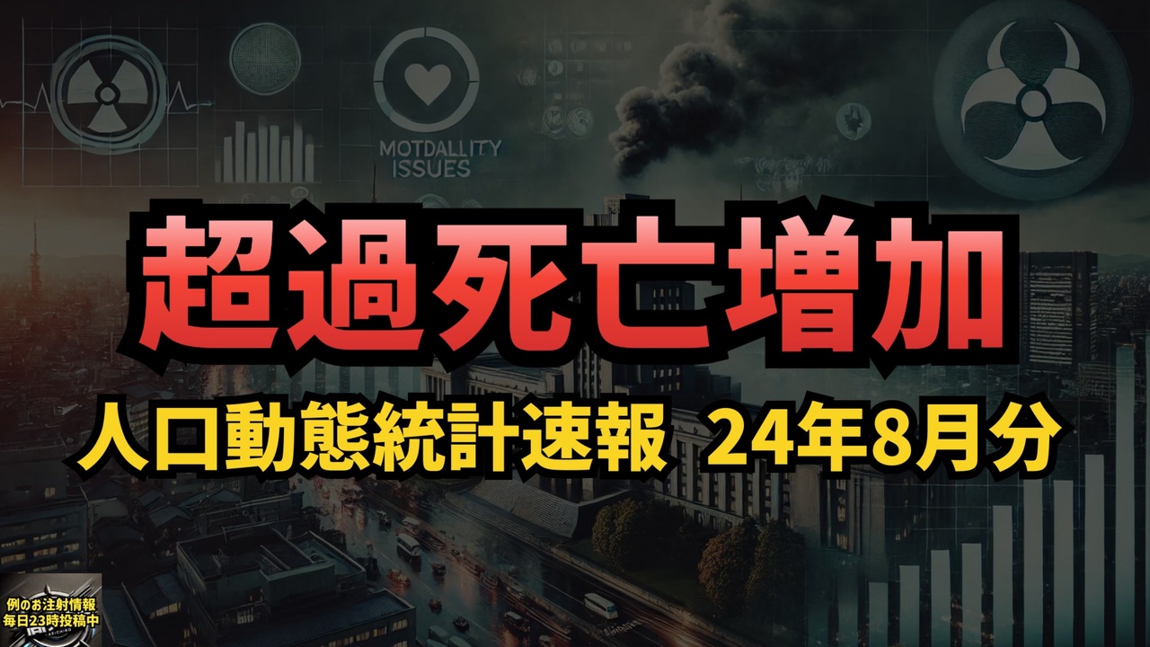 人口動態統計速報 24年8月分 でました<br><br>死亡者数 133872人<br>前年同月比 +3024人(2.3%)<br>超過死亡 +16201人(13.8%) ※社人研推計月毎按分値との差<br><br>8月の超過死亡は7月以上でした、てか去年よりも多い。<br>※図2にコロナ感染者数を追加しました<br>→ <a href="https://t.co/bcwu47jWqY" target="_blank" rel="noopener nofollow">https://t.co/bcwu47jWqY</a><br><br><br>コロナ感染者数のJAMDAS推計値は<br><br>2022年8月 590万人<br>2023年8月 333万人<br>2024年8月 167万人 ※7月は260万人<br><br>と昨年の半分程だったんですが、超過死亡は昨年より多い<br>猛暑の影響はかなり大きいとは思いますがそれにしてもね…<br>→ <a href="https://t.co/LttmqHjoSv" target="_blank" rel="noopener nofollow">https://t.co/LttmqHjoSv</a><br><br><br>コロナワクチン<br>超過死亡<br>政府<br>メディア<br>戦後最大の超過死亡<br>真実<br>国民の命と健康<br>ワクチン被害<br>ワクチンリスク<br>健康被害<br>透明性の欠如<br><br><br>コロナの真実を暴く<br><br><br>資料<br><a href="https://x.com/kamiyuik4n2/status/1761984551159734336?t=EP591az0RG-xkGSDWveqbw&s=19" target="_blank" rel="noopener nofollow">https://x.com/kamiyuik4n2/status/1761984551159734336?t=EP591az0RG-xkGSDWveqbw&s=19</a><br><br><a href="https://x.com/s6r6tkBc6B5LELv/status/1594335742464905217?t=I6lGZiv5oEsCZC_3ECtbCQ&s=19" target="_blank" rel="noopener nofollow">https://x.com/s6r6tkBc6B5LELv/status/1594335742464905217?t=I6lGZiv5oEsCZC_3ECtbCQ&s=19</a><br><br><a href="https://x.com/kamiyuik4n2/status/1620662184857714688?t=hW_UMH9Awwaj0RPBhf9bZw&s=19" target="_blank" rel="noopener nofollow">https://x.com/kamiyuik4n2/status/1620662184857714688?t=hW_UMH9Awwaj0RPBhf9bZw&s=19</a><br><br><br><br />著作権、肖像権に配慮して作成しております。<br><br>◆気になったニュースの台本!?<br>メモ代わりに作った台本をそのままあげてます<br><a href="https://keiichiro8140.hatenablog.com/." target="_blank" rel="noopener nofollow">https://keiichiro8140.hatenablog.com/.</a><br><br><br>ここからはシリーズ紹介<br><br><br>◆ ワクチン解毒・デトックス<br><a href="https://x.gd/fZweg" target="_blank" rel="noopener nofollow">https://x.gd/fZweg</a><br><br>◆ウイリアム・マキス博士のがん治療(イベルメクチン・フェンベンダゾール等)<br><a href="https://x.gd/AtFYS" target="_blank" rel="noopener nofollow">https://x.gd/AtFYS</a><br><br>◆予防接種健康被害救済制度<br><a href="https://x.gd/0xK9x" target="_blank" rel="noopener nofollow">https://x.gd/0xK9x</a><br><br>◆気になったニュース #1501~<br><br>◆ 【ショートver】気になったニュース<br><a href="https://x.gd/7MxXC" target="_blank" rel="noopener nofollow">https://x.gd/7MxXC</a><br><br>◆ 気になったニュース #1001~<br><a href="https://x.gd/Lp8gv" target="_blank" rel="noopener nofollow">https://x.gd/Lp8gv</a><br><br>◆ 気になったニュース #501~<br><a href="https://x.gd/EmbS4" target="_blank" rel="noopener nofollow">https://x.gd/EmbS4</a><br><br>◆ 気になったニュース #1~#500<br><a href="https://x.gd/uPhNb" target="_blank" rel="noopener nofollow">https://x.gd/uPhNb</a><br><br>◆ X(旧Twitter)・テレグラムで気になった情報<br><a href="https://x.gd/YG6FT" target="_blank" rel="noopener nofollow">https://x.gd/YG6FT</a><br><br>◆ 日比谷5万人パレードデ⚪生放送アーカイブ動画<br><a href="https://x.gd/3CHJv" target="_blank" rel="noopener nofollow">https://x.gd/3CHJv</a><br><br>◆日比谷5万人パレード⚪モのマイリスト作ってみました<br><a href="https://nico.ms/mylist/76828848?ref=sp_other" target="_blank" rel="noopener nofollow">https://nico.ms/mylist/76828848?ref=sp_other</a><br><br>◆3.30 令和の百姓⚪⚪<br><a href="https://www.nicovideo.jp/series/511791?ref=garage_share_other" target="_blank" rel="noopener nofollow">https://www.nicovideo.jp/series/511791?ref=garage_share_other</a><br><br>◆ 及川幸久さんの【XNEWS】シリーズ<br><a href="https://x.gd/3k78K" target="_blank" rel="noopener nofollow">https://x.gd/3k78K</a><br><br>◆これまでの動画<a href="https://x.gd/sPXoJ" target="_blank" rel="noopener nofollow">https://x.gd/sPXoJ</a><br><br>◆もしも(BAN)の時のためのマイリンク集<a href="https://lit.link/K-16_News44" target="_blank" rel="noopener nofollow">https://lit.link/K-16_News44</a><br><br>