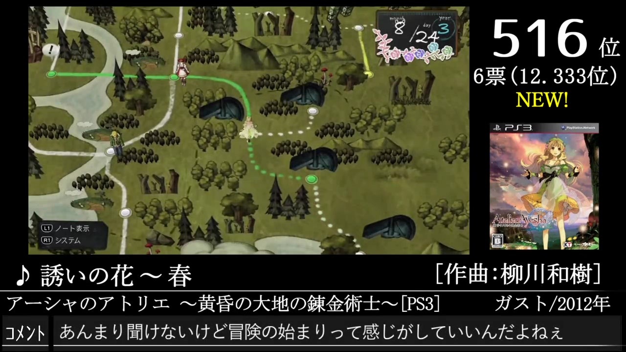 これだけの成績がなんで記憶に薄いのかと思ったら、当時(第2回)の動画殆ど消えてたというね…<br>---------------------------------<br>スクリーンショット大募集!<br>詳しくは下記投稿フォームのご案内やスクショ状況スプレッドシート等をご確認下さい<br>↓<br><a href="https://ws.formzu.net/dist/S9500351/" target="_blank" rel="noopener nofollow">https://ws.formzu.net/dist/S9500351/</a><br><br>投票結果はこちら<br>↓<br><a href="https://w.atwiki.jp/gamemusicbest100/pages/10214.html" target="_blank" rel="noopener nofollow">https://w.atwiki.jp/gamemusicbest100/pages/10214.html</a><br><br>ご質問等ある際はこちらのページへコメント下さいませ<br>↓<br><a href="https://arutoneriko2.hatenablog.com/entry/2023/12/17/001849" target="_blank" rel="noopener nofollow">https://arutoneriko2.hatenablog.com/entry/2023/12/17/001849</a><br>---------------------------------<br><a href="https://www.nicovideo.jp/watch/sm44210545" class="watch">sm44210545</a>←Part19|今回|Part21→<a href="https://www.nicovideo.jp/watch/sm44306573" class="watch">sm44306573</a> <a href="https://www.nicovideo.jp/mylist/50993049" target="_blank" rel="noopener">mylist/50993049</a><br>---------------------------------<br>↓ショートカット↓<br><br>538位<a href="#" class="seekTime" data-seekTime="0:33" onclick="seekNicoPlayer('#0:33'); return false;">#0:33</a> 537位<a href="#" class="seekTime" data-seekTime="3:08" onclick="seekNicoPlayer('#3:08'); return false;">#3:08</a> 536位<a href="#" class="seekTime" data-seekTime="7:30" onclick="seekNicoPlayer('#7:30'); return false;">#7:30</a> 535位<a href="#" class="seekTime" data-seekTime="12:31" onclick="seekNicoPlayer('#12:31'); return false;">#12:31</a> 534位<a href="#" class="seekTime" data-seekTime="17:29" onclick="seekNicoPlayer('#17:29'); return false;">#17:29</a> 533位<a href="#" class="seekTime" data-seekTime="19:09" onclick="seekNicoPlayer('#19:09'); return false;">#19:09</a> <br>532位<a href="#" class="seekTime" data-seekTime="21:32" onclick="seekNicoPlayer('#21:32'); return false;">#21:32</a> 529位<a href="#" class="seekTime" data-seekTime="24:17" onclick="seekNicoPlayer('#24:17'); return false;">#24:17</a> 529位<a href="#" class="seekTime" data-seekTime="30:02" onclick="seekNicoPlayer('#30:02'); return false;">#30:02</a> 529位<a href="#" class="seekTime" data-seekTime="33:13" onclick="seekNicoPlayer('#33:13'); return false;">#33:13</a> 528位<a href="#" class="seekTime" data-seekTime="37:09" onclick="seekNicoPlayer('#37:09'); return false;">#37:09</a> 527位<a href="#" class="seekTime" data-seekTime="40:20" onclick="seekNicoPlayer('#40:20'); return false;">#40:20</a><br>526位<a href="#" class="seekTime" data-seekTime="42:19" onclick="seekNicoPlayer('#42:19'); return false;">#42:19</a> 525位<a href="#" class="seekTime" data-seekTime="44:57" onclick="seekNicoPlayer('#44:57'); return false;">#44:57</a> 524位<a href="#" class="seekTime" data-seekTime="47:45" onclick="seekNicoPlayer('#47:45'); return false;">#47:45</a> 523位<a href="#" class="seekTime" data-seekTime="52:57" onclick="seekNicoPlayer('#52:57'); return false;">#52:57</a> 522位<a href="#" class="seekTime" data-seekTime="58:30" onclick="seekNicoPlayer('#58:30'); return false;">#58:30</a> 521位<a href="#" class="seekTime" data-seekTime="61:29" onclick="seekNicoPlayer('#61:29'); return false;">#61:29</a> <br>520位<a href="#" class="seekTime" data-seekTime="63:22" onclick="seekNicoPlayer('#63:22'); return false;">#63:22</a> 519位<a href="#" class="seekTime" data-seekTime="65:39" onclick="seekNicoPlayer('#65:39'); return false;">#65:39</a> 518位<a href="#" class="seekTime" data-seekTime="69:04" onclick="seekNicoPlayer('#69:04'); return false;">#69:04</a> 517位<a href="#" class="seekTime" data-seekTime="71:48" onclick="seekNicoPlayer('#71:48'); return false;">#71:48</a> 516位<a href="#" class="seekTime" data-seekTime="74:32" onclick="seekNicoPlayer('#74:32'); return false;">#74:32</a> 515位<a href="#" class="seekTime" data-seekTime="77:45" onclick="seekNicoPlayer('#77:45'); return false;">#77:45</a><br>515位<a href="#" class="seekTime" data-seekTime="80:52" onclick="seekNicoPlayer('#80:52'); return false;">#80:52</a>