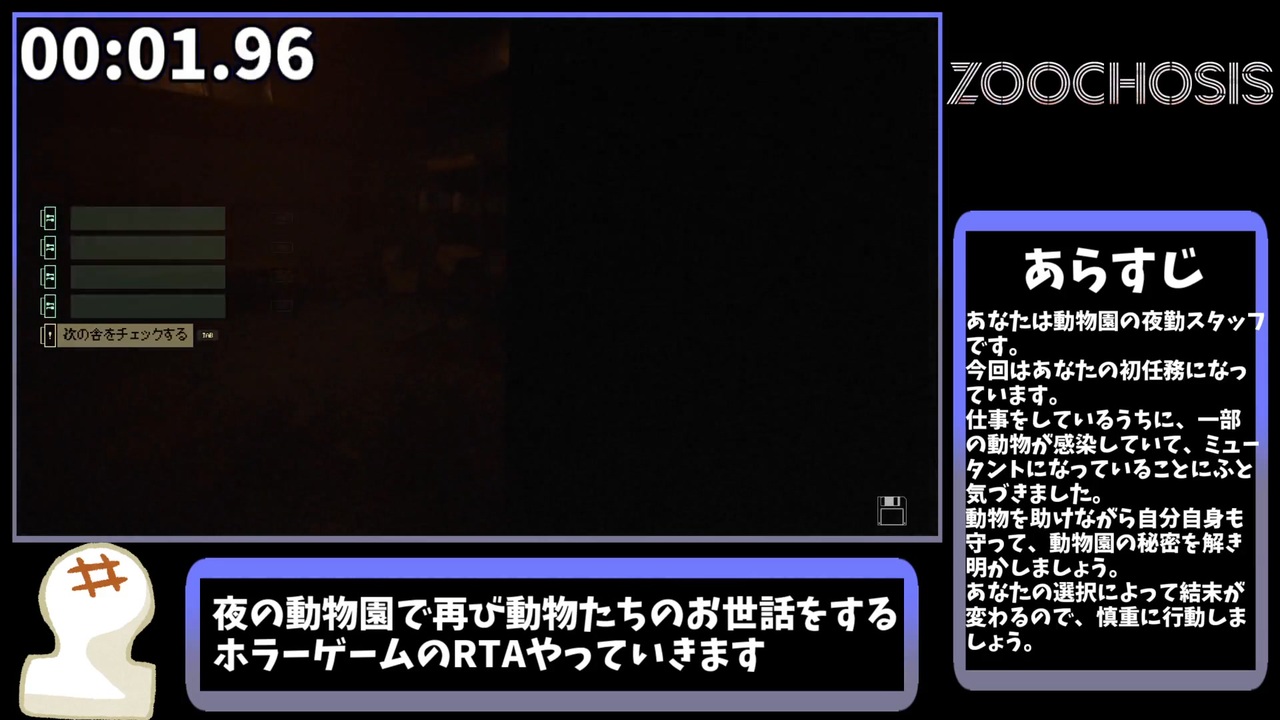 今回はZoochosisを遊びました<br>タイムは命より重い<br><br>販売サイト→<a href="https://store.steampowered.com/app/2458560/Zoochosis/" target="_blank" rel="noopener nofollow">https://store.steampowered.com/app/2458560/Zoochosis/</a> <br><br><span style="color: #000000; font-size: 14px;">単発RTA→</span><span style="color: #006699; font-size: 14px;"><a href="https://www.nicovideo.jp/mylist/66917940" target="_blank" rel="noopener">mylist/66917940</a></span><br><br>生放送コミュ→co4338697<br><br><span style="color: #000000; font-size: 14px;">ΔYoutube→</span><span style="color: #006699; font-size: 14px;"><a href="https://www.youtube.com/channel/UC4jVPBw6dP3mXCGJvRi3Xbw?view_as=subscriber" target="_blank" rel="noopener nofollow">https://www.youtube.com/channel/UC4jVPBw6dP3mXCGJvRi3Xbw?view_as=subscriber</a></span>