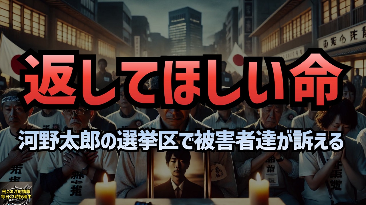 「息子を返してほしい」嗚咽しながら演説するお父さん<br>遺族の皆さんが河野太郎を倒すために集まりました<br>当たり前ですが自腹です<br>これを金儲けという河野太郎に票を入れる人は人間じゃねーぞ<br>神奈川15区有権者の皆さん<br>頼みましたよ!<br>スマホが滲んで見えんよ<br><br><a href="https://x.com/shiroinuproject/status/1849431018396393619?t=tscbAKgtrasFHyUTHT6bww&s=09" target="_blank" rel="noopener nofollow">https://x.com/shiroinuproject/status/1849431018396393619?t=tscbAKgtrasFHyUTHT6bww&s=09</a><br><br><br>人56しコール太郎<br><a href="https://x.com/AaronOtsuka/status/1849842688012562730?t=Gjq9T7yP_f6VN-AFP-sSpA&s=19" target="_blank" rel="noopener nofollow">https://x.com/AaronOtsuka/status/1849842688012562730?t=Gjq9T7yP_f6VN-AFP-sSpA&s=19</a><br><br><br>マレさんが河野太郎のダブルスタンダードを暴きました<br>河野太郎はワクチンが悪いものだと知っていました<br><a href="https://x.com/shiroinuproject/status/1850182424141152753?t=IYhpmMWvTsii0wbyktAF4A&s=19" target="_blank" rel="noopener nofollow">https://x.com/shiroinuproject/status/1850182424141152753?t=IYhpmMWvTsii0wbyktAF4A&s=19</a><br><br><br>あれはデマ<br><a href="https://x.com/KEIICHIRO8140/status/1850138794722546021?t=BLeM0lEoxoucbDOrfbSRhQ&s=19" target="_blank" rel="noopener nofollow">https://x.com/KEIICHIRO8140/status/1850138794722546021?t=BLeM0lEoxoucbDOrfbSRhQ&s=19</a><br><br><br>ワクチン被害<br>遺族の声<br>責任追及<br>コロナ禍の悲劇<br>ワクチン<br>コロナワクチン<br>語られない真実<br>河野太郎<br>ワクチン被害はデマ<br>デマ太郎<br>2億人打って死んだ人は一人もいない<br><br><br><br>「返してほしい命」<br><br><br />著作権、肖像権に配慮して作成しております。<br><br>◆気になったニュースの台本!?<br>メモ代わりに作った台本をそのままあげてます<br><a href="https://keiichiro8140.hatenablog.com/." target="_blank" rel="noopener nofollow">https://keiichiro8140.hatenablog.com/.</a><br><br><br>ここからはシリーズ紹介<br><br><br>◆ ワクチン解毒・デトックス<br><a href="https://x.gd/fZweg" target="_blank" rel="noopener nofollow">https://x.gd/fZweg</a><br><br>◆ウイリアム・マキス博士のがん治療(イベルメクチン・フェンベンダゾール等)<br><a href="https://x.gd/AtFYS" target="_blank" rel="noopener nofollow">https://x.gd/AtFYS</a><br><br>◆予防接種健康被害救済制度<br><a href="https://x.gd/0xK9x" target="_blank" rel="noopener nofollow">https://x.gd/0xK9x</a><br><br>◆気になったニュース #1501~<br><br>◆ 【ショートver】気になったニュース<br><a href="https://x.gd/7MxXC" target="_blank" rel="noopener nofollow">https://x.gd/7MxXC</a><br><br>◆ 気になったニュース #1001~<br><a href="https://x.gd/Lp8gv" target="_blank" rel="noopener nofollow">https://x.gd/Lp8gv</a><br><br>◆ 気になったニュース #501~<br><a href="https://x.gd/EmbS4" target="_blank" rel="noopener nofollow">https://x.gd/EmbS4</a><br><br>◆ 気になったニュース #1~#500<br><a href="https://x.gd/uPhNb" target="_blank" rel="noopener nofollow">https://x.gd/uPhNb</a><br><br>◆ X(旧Twitter)・テレグラムで気になった情報<br><a href="https://x.gd/YG6FT" target="_blank" rel="noopener nofollow">https://x.gd/YG6FT</a><br><br>◆ 日比谷5万人パレードデ⚪生放送アーカイブ動画<br><a href="https://x.gd/3CHJv" target="_blank" rel="noopener nofollow">https://x.gd/3CHJv</a><br><br>◆日比谷5万人パレード⚪モのマイリスト作ってみました<br><a href="https://nico.ms/mylist/76828848?ref=sp_other" target="_blank" rel="noopener nofollow">https://nico.ms/mylist/76828848?ref=sp_other</a><br><br>◆3.30 令和の百姓⚪⚪<br><a href="https://www.nicovideo.jp/series/511791?ref=garage_share_other" target="_blank" rel="noopener nofollow">https://www.nicovideo.jp/series/511791?ref=garage_share_other</a><br><br>◆ 及川幸久さんの【XNEWS】シリーズ<br><a href="https://x.gd/3k78K" target="_blank" rel="noopener nofollow">https://x.gd/3k78K</a><br><br>◆これまでの動画<a href="https://x.gd/sPXoJ" target="_blank" rel="noopener nofollow">https://x.gd/sPXoJ</a><br><br>◆もしも(BAN)の時のためのマイリンク集<a href="https://lit.link/K-16_News44" target="_blank" rel="noopener nofollow">https://lit.link/K-16_News44</a><br><br>